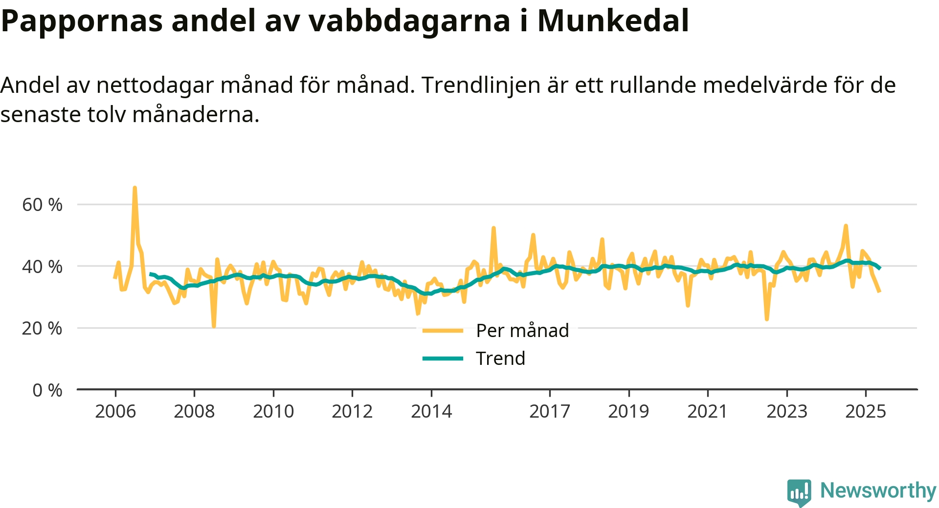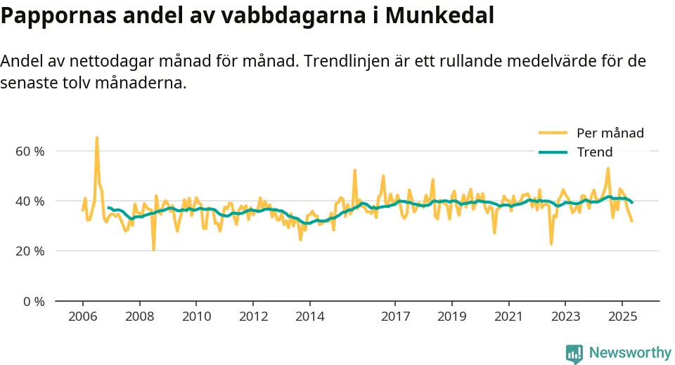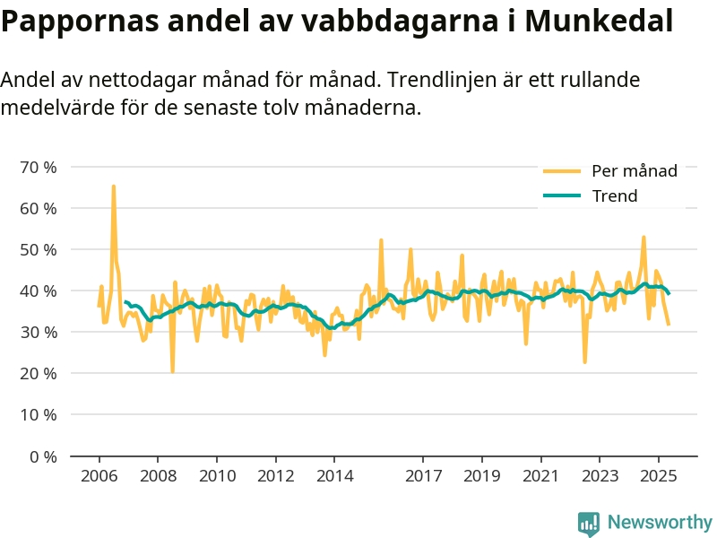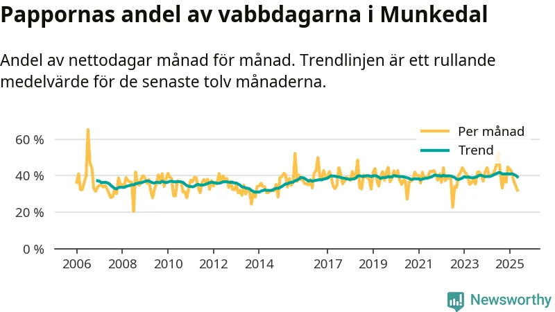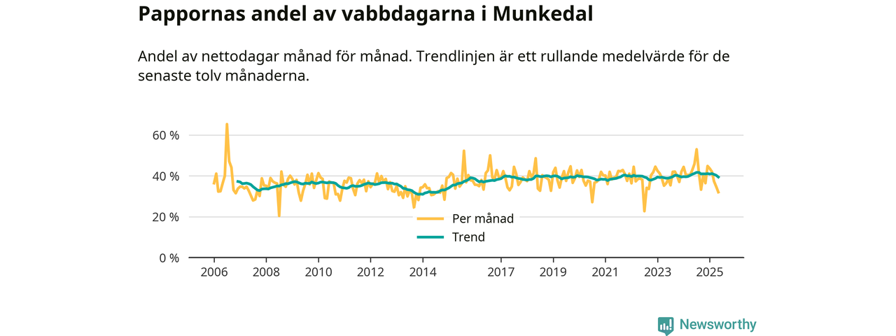 En pikant detalj är den enskilda månad då svenska män tagit ut störst andel av vabbdagarna var i juli 2006 – en månad då fotbolls-VM avgjordes i Tyskland. Även i Munkedal sticker juli 2006 ut som rekordmånad.