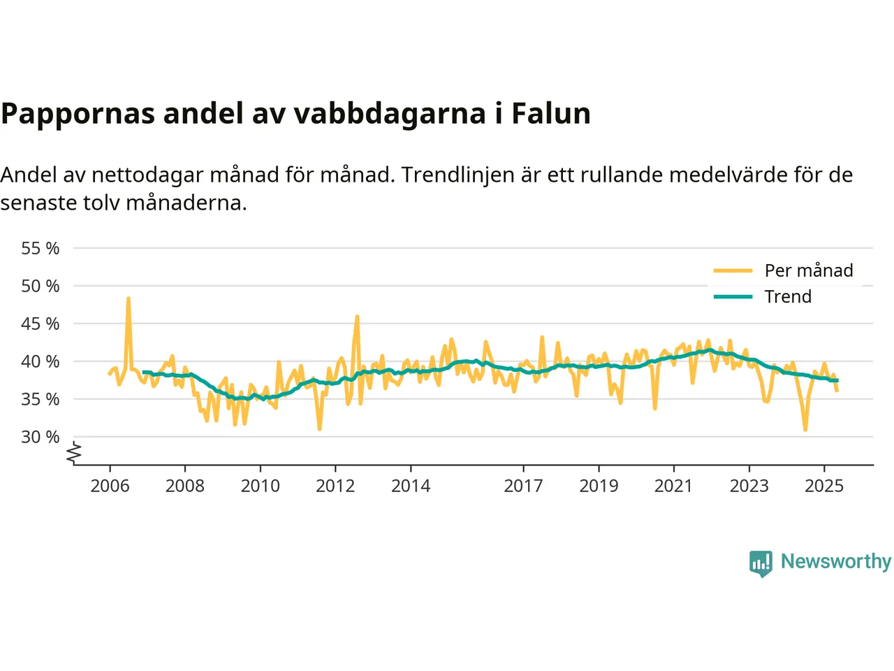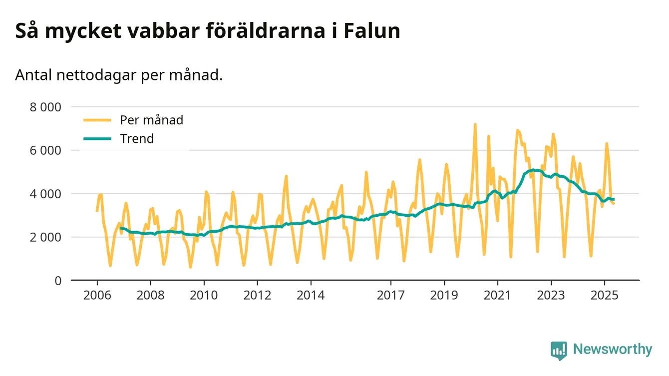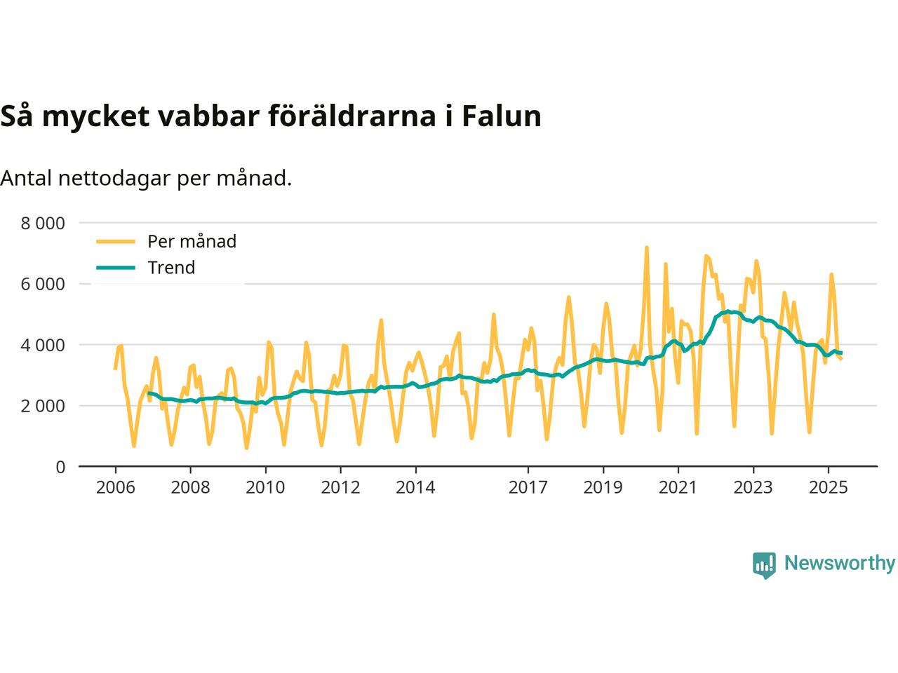 Falun ligger en bit från ett jämställt uttag. Under de senaste tolv månaderna har männen stått för 37 procent av all vabb i kommunen. I år har andelen varit lägre än på över 13 år.