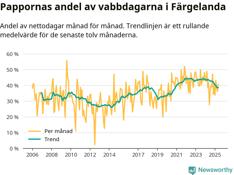 Kraftigt ökat vabbande över tid – men mindre än under pandemin