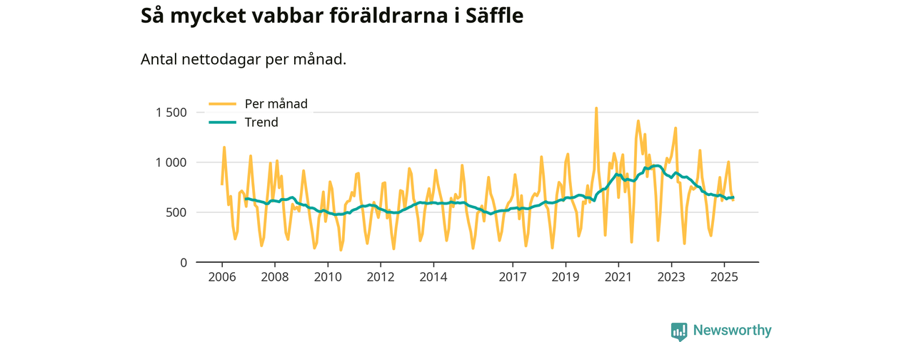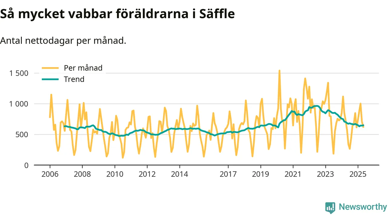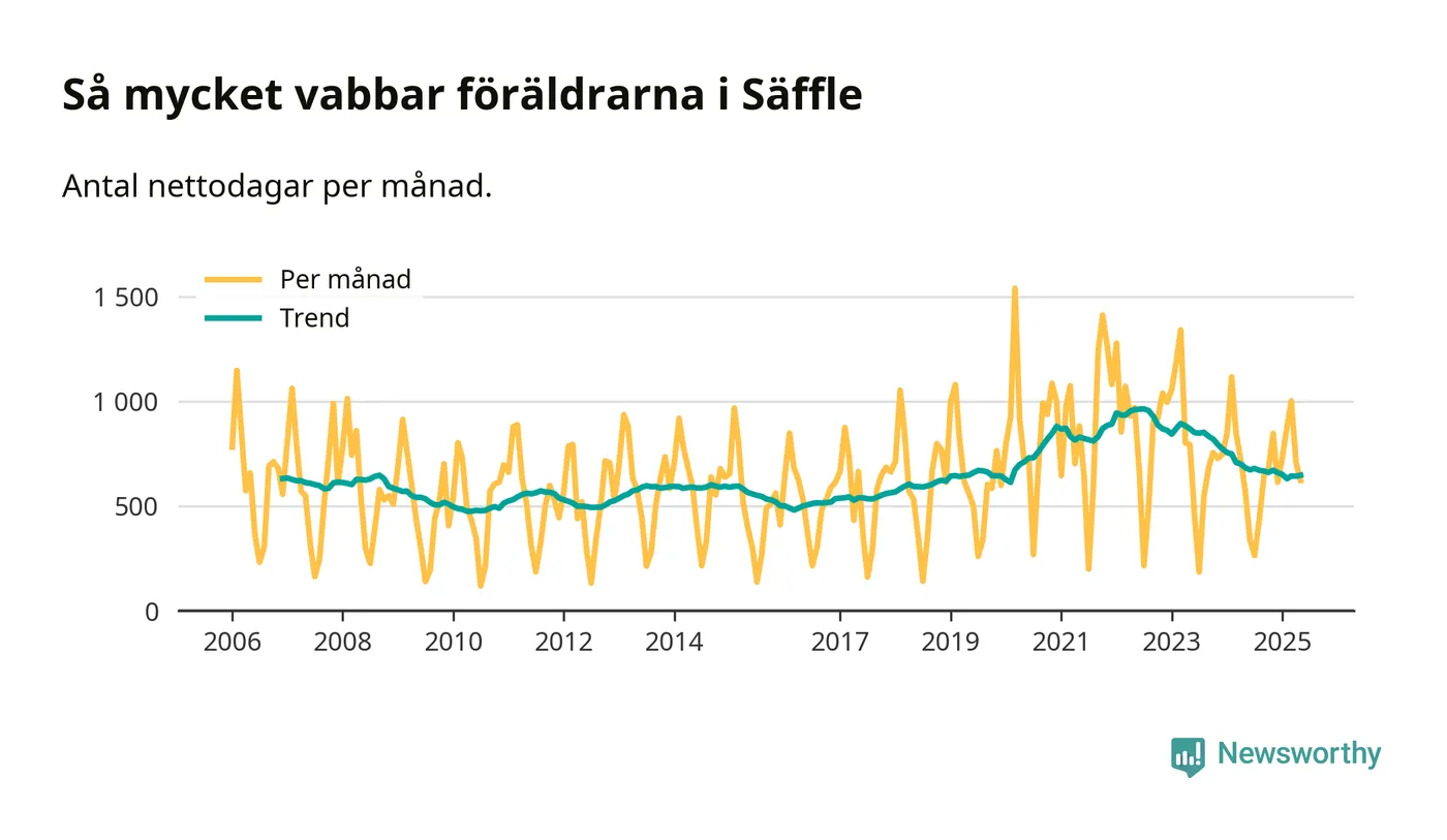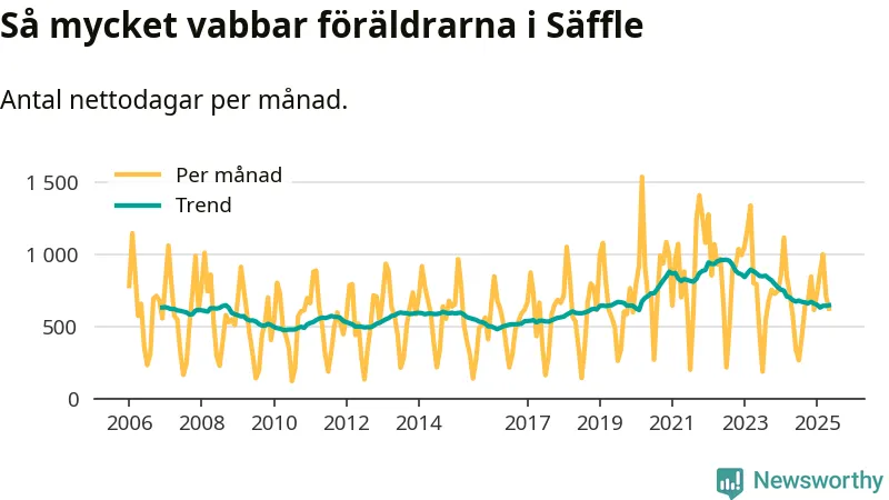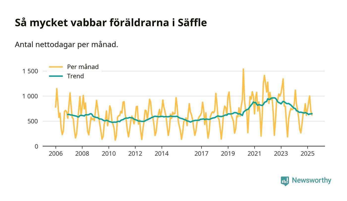 När coronapandemin drog in i mars 2020 peakade antalet vabbdagar både i Säffle kommun och i riket som helhet. Under de senaste två åren har vabbuttaget börjat minska igen.