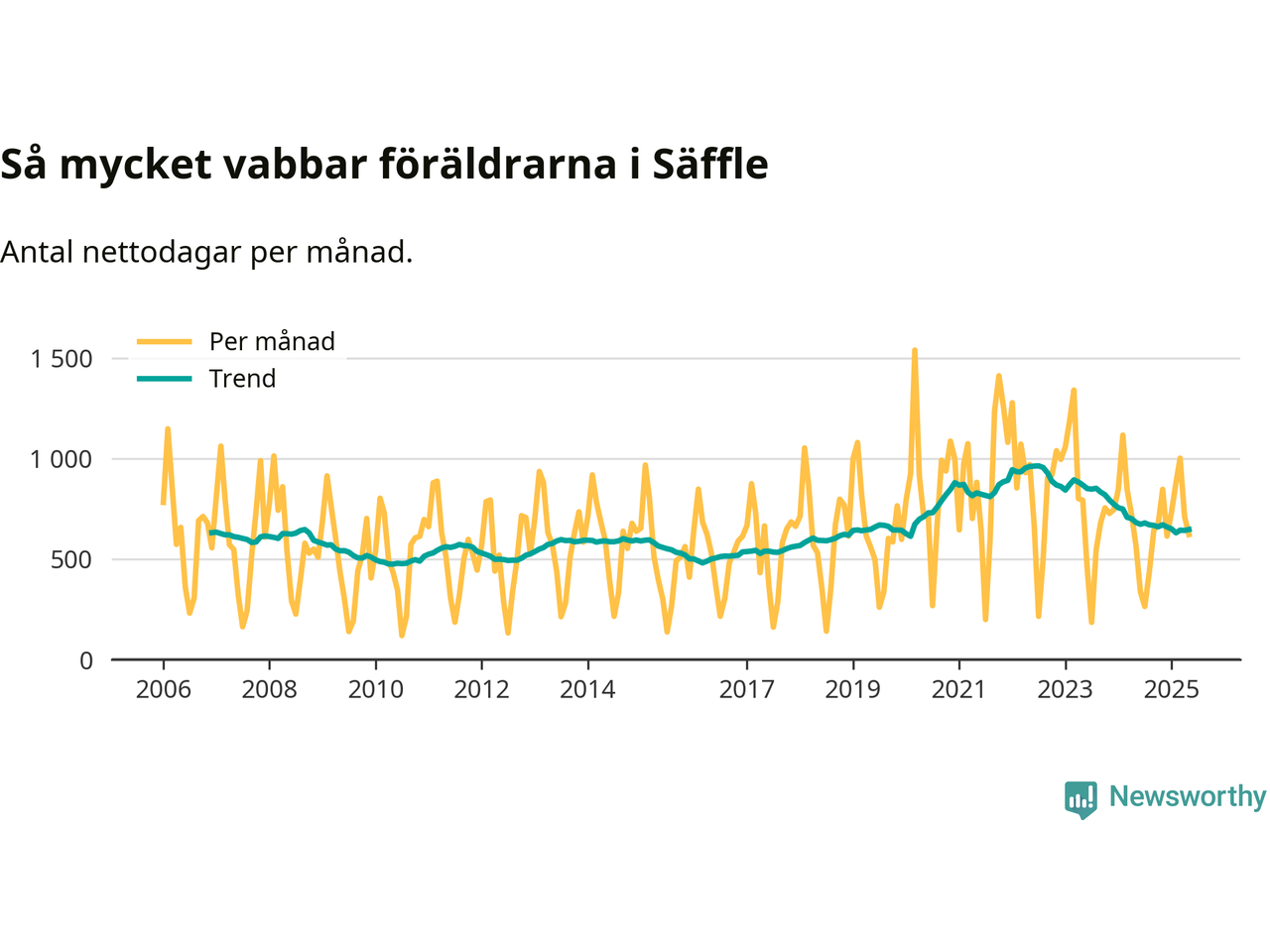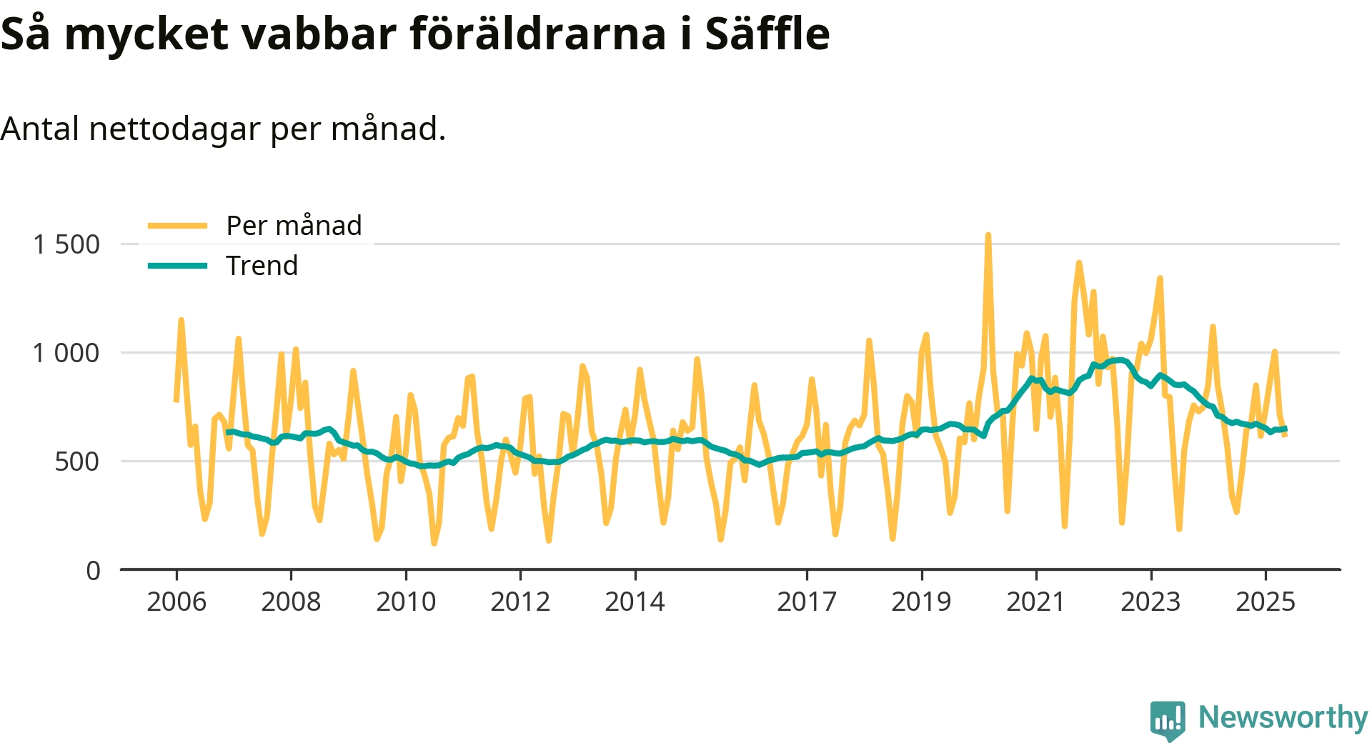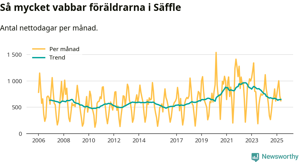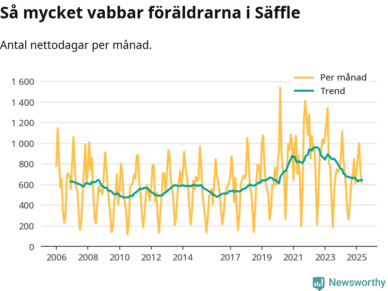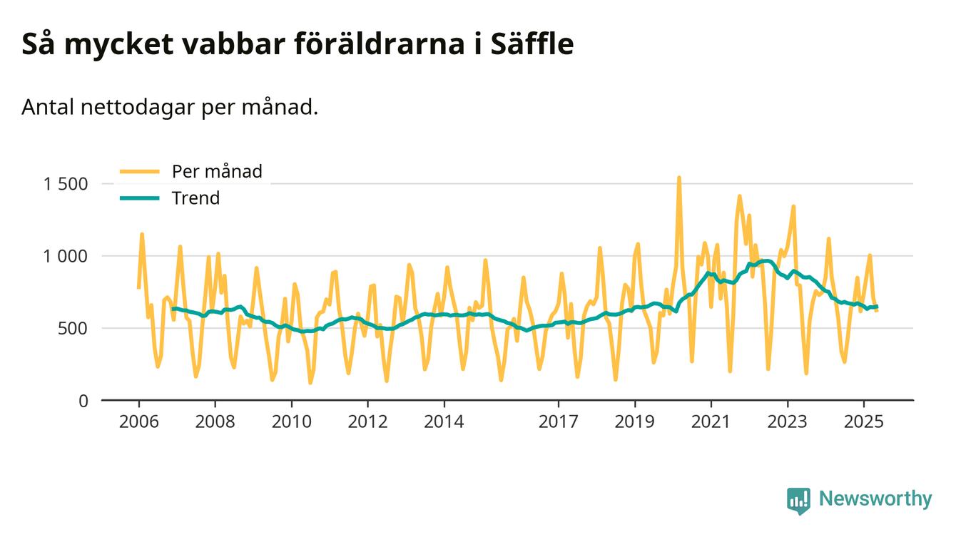 När coronapandemin drog in i mars 2020 peakade antalet vabbdagar både i Säffle kommun och i riket som helhet. Under de senaste två åren har vabbuttaget börjat minska igen.