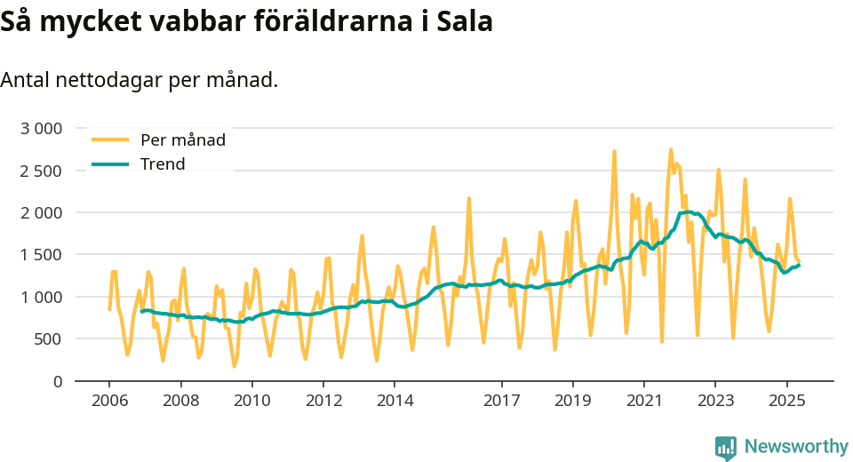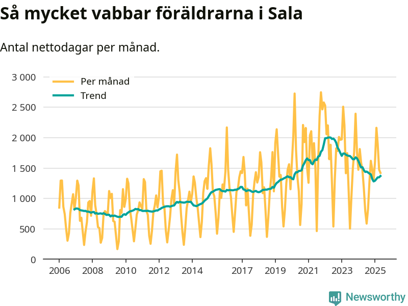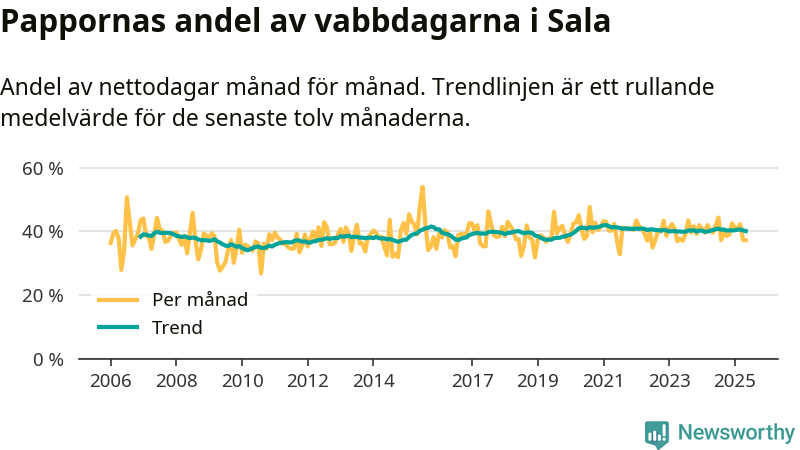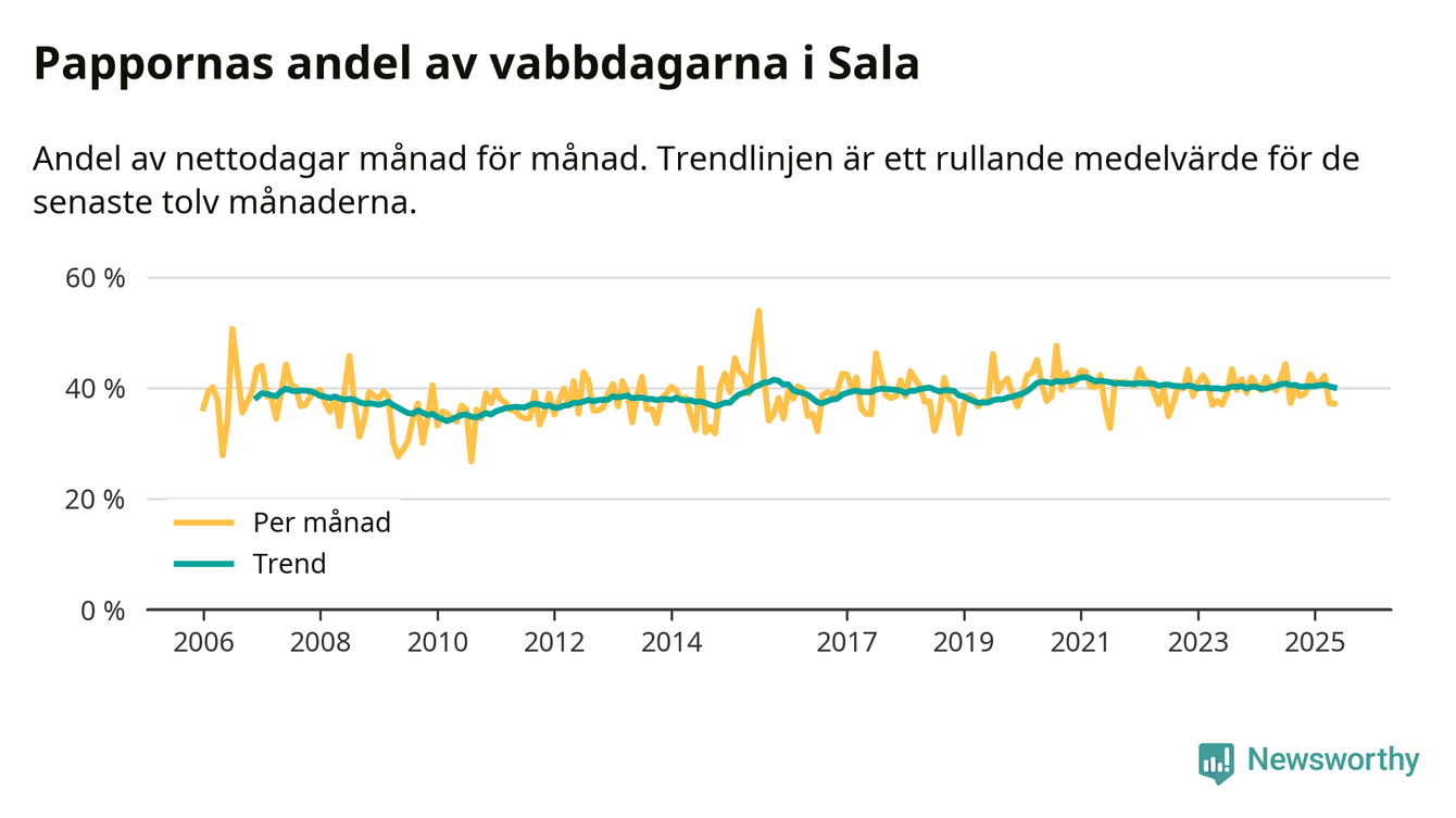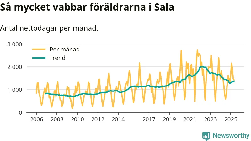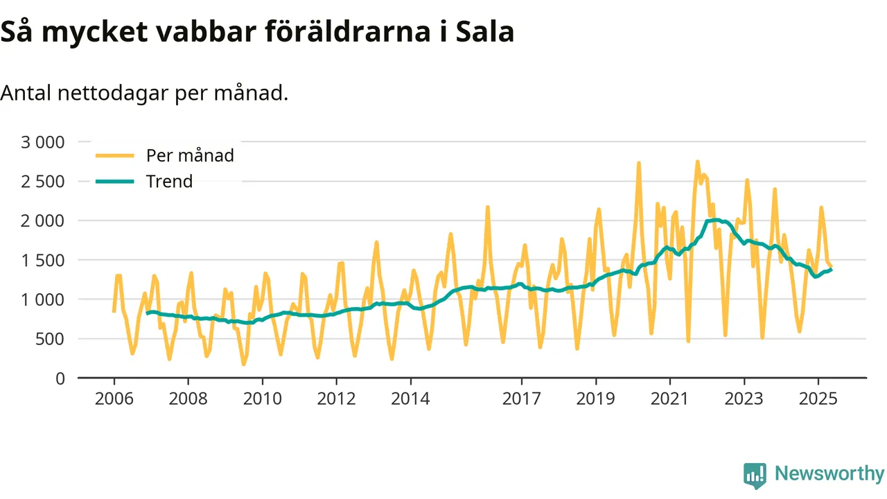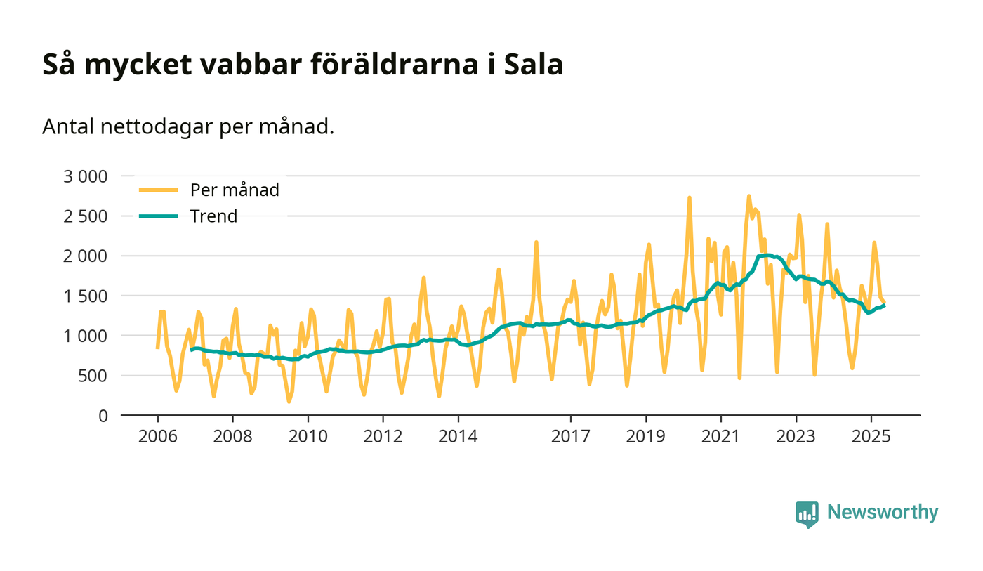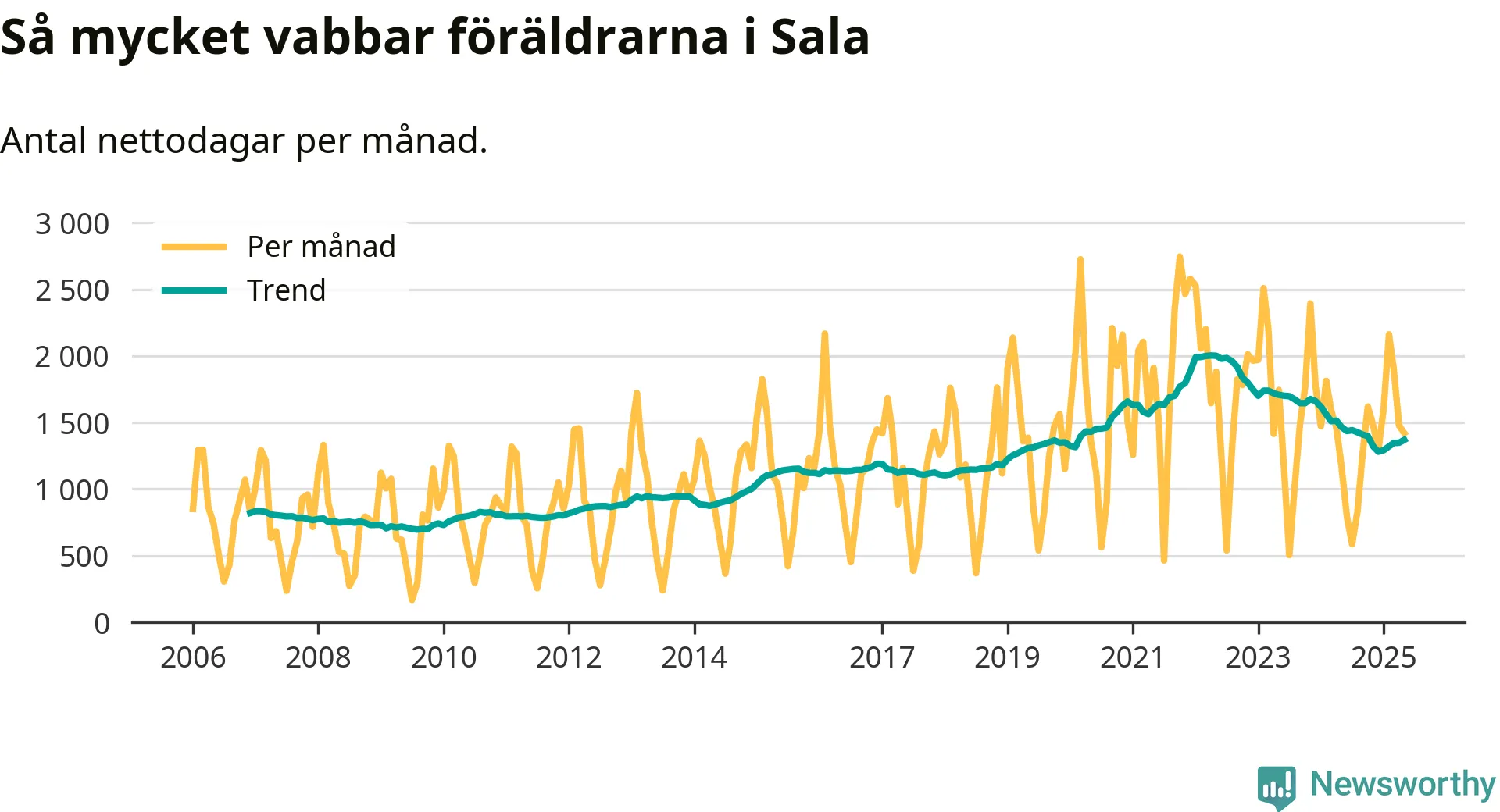 Sala ligger en bit från ett jämställt uttag. Under de senaste tolv månaderna har männen stått för 40 procent av all vabb i kommunen.