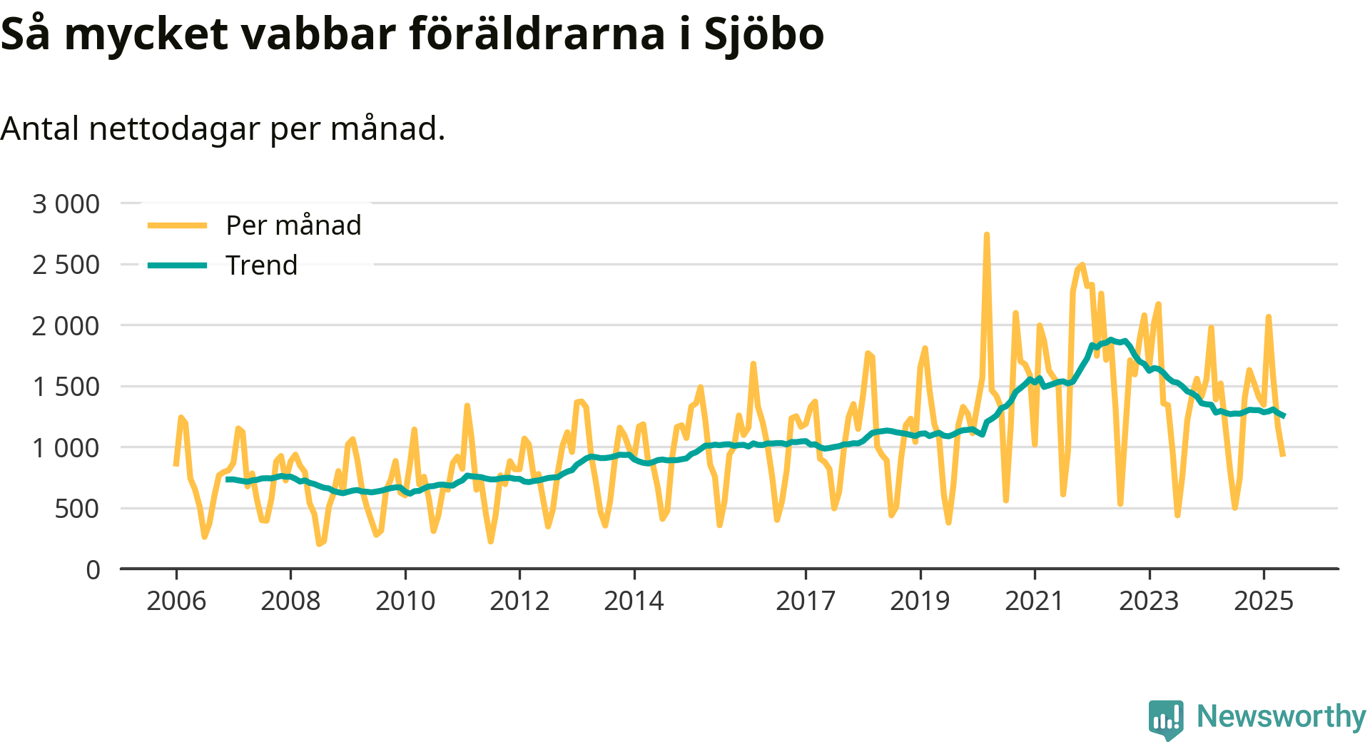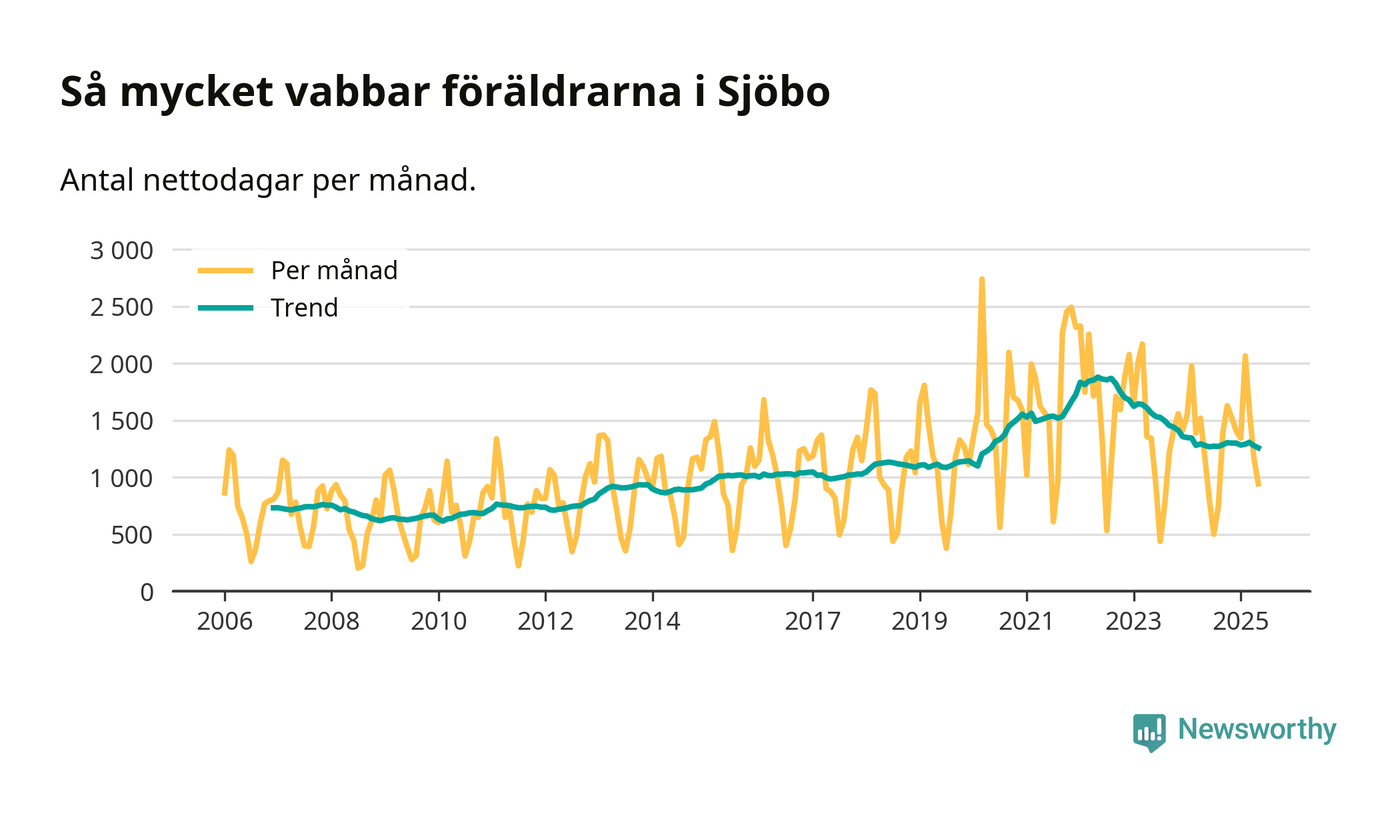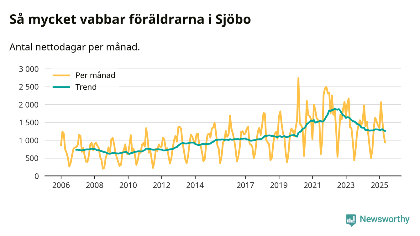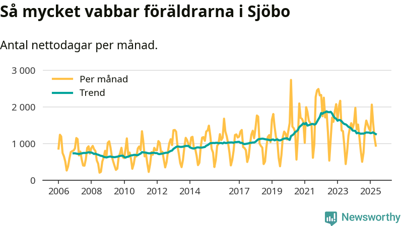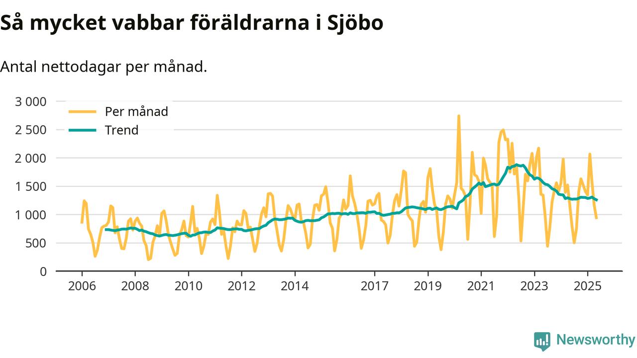 När coronapandemin drog in i mars 2020 peakade antalet vabbdagar både i Sjöbo kommun och i riket som helhet. Under de senaste två åren har vabbuttaget börjat minska igen.