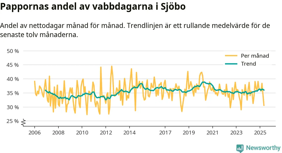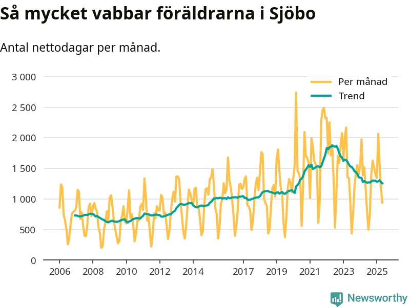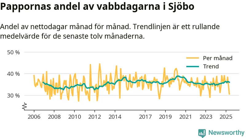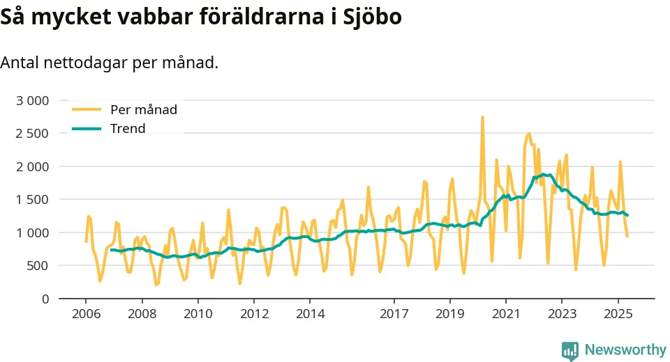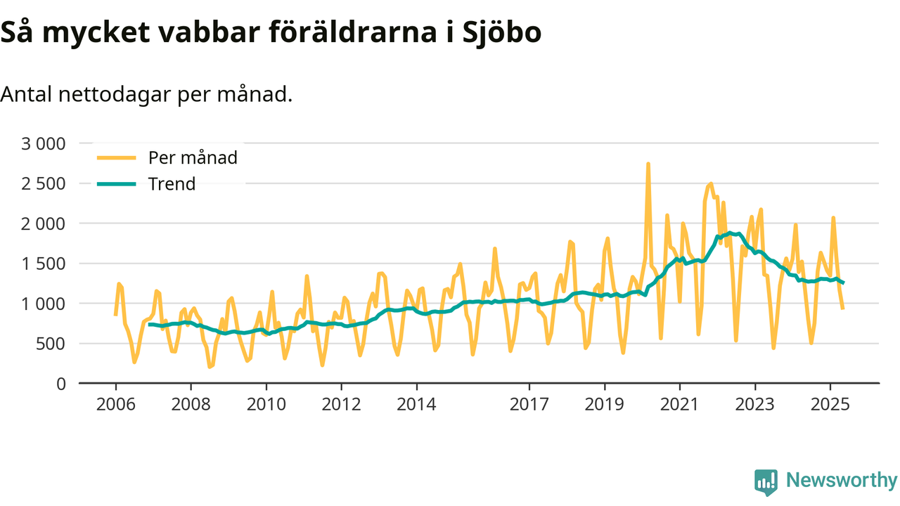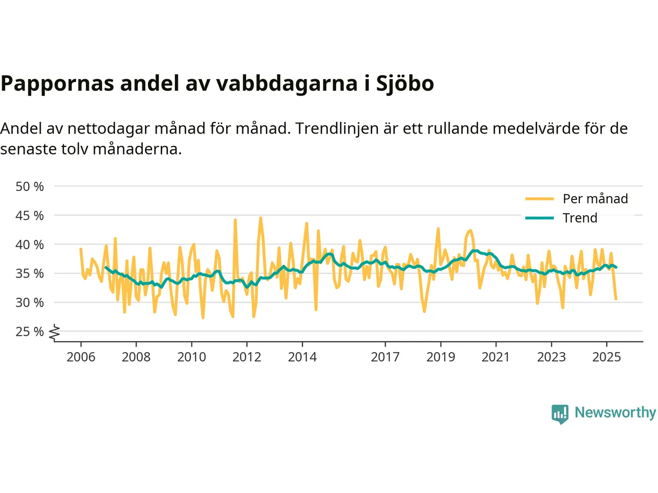 När coronapandemin drog in i mars 2020 peakade antalet vabbdagar både i Sjöbo kommun och i riket som helhet. Under de senaste två åren har vabbuttaget börjat minska igen.