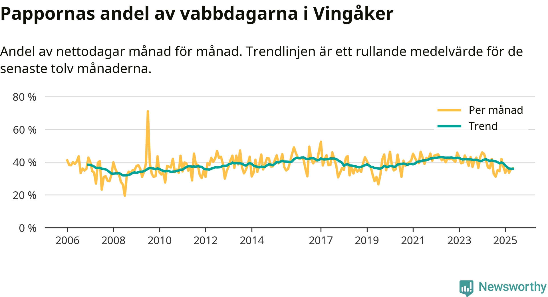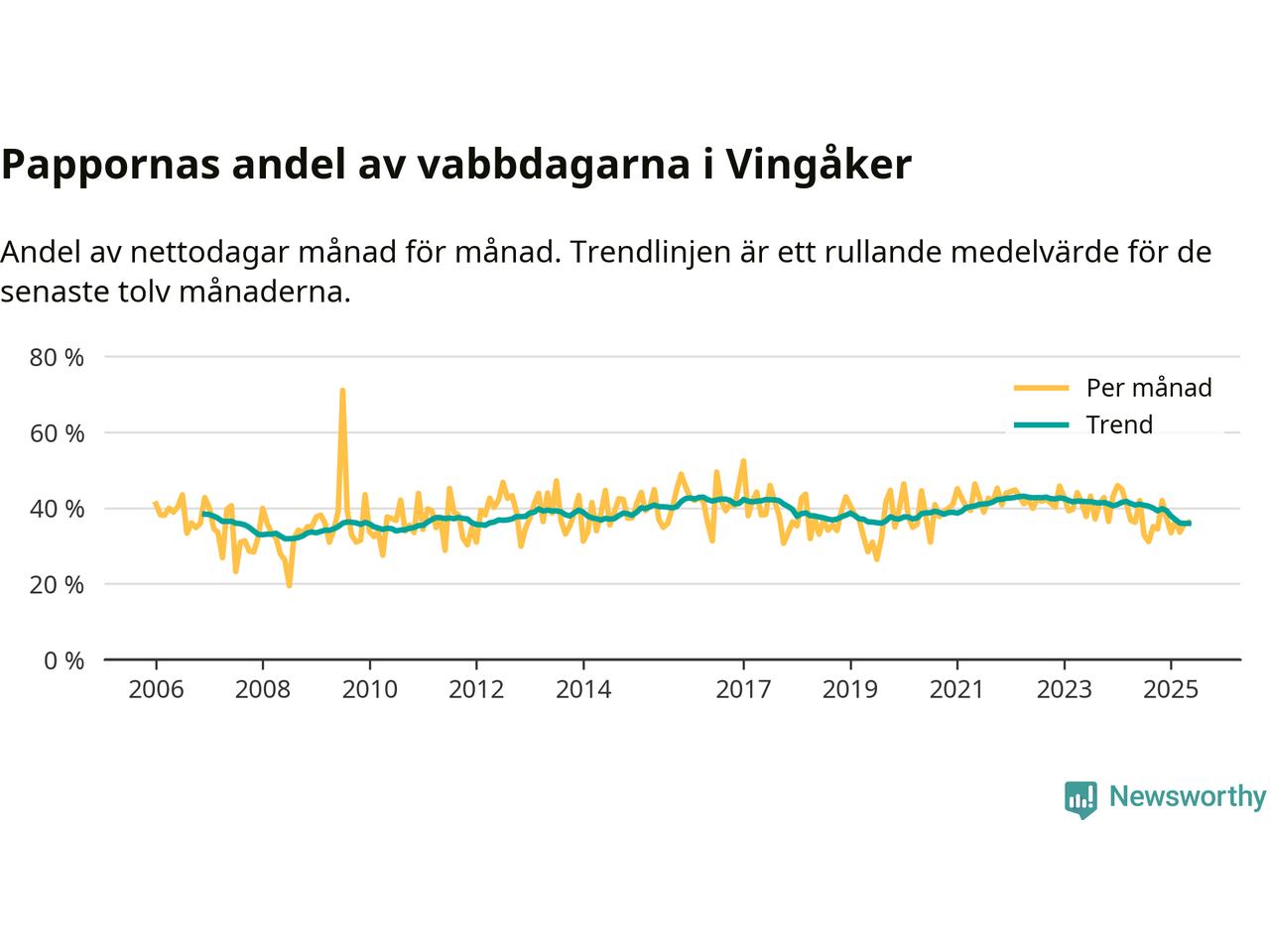 Kraftigt ökat vabbande över tid – men mindre än under pandemin