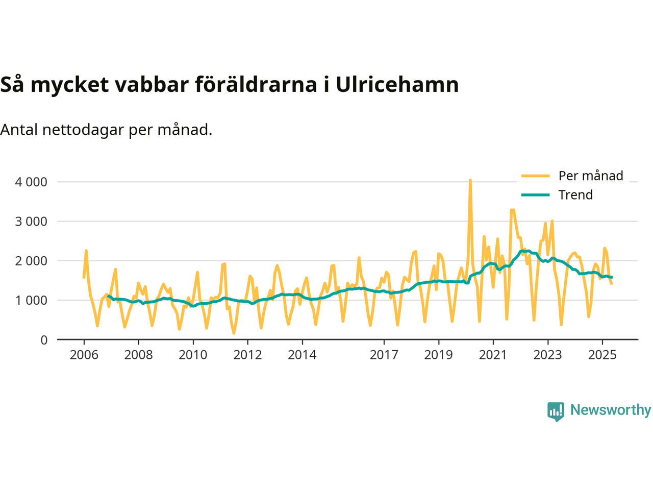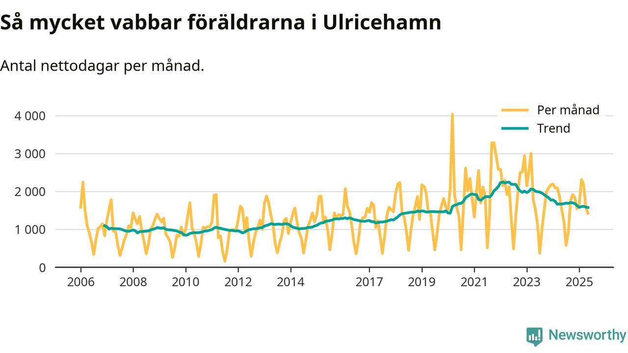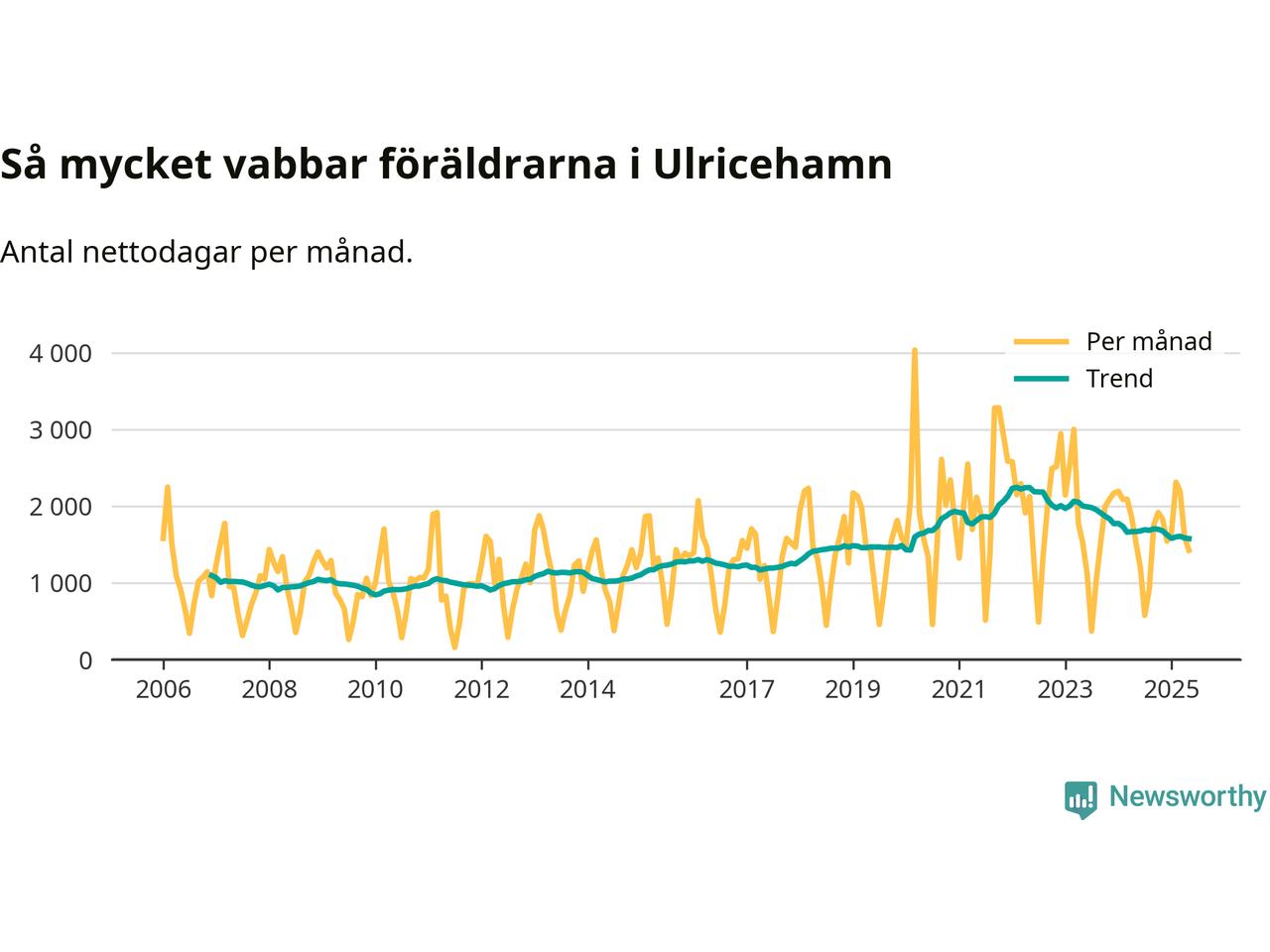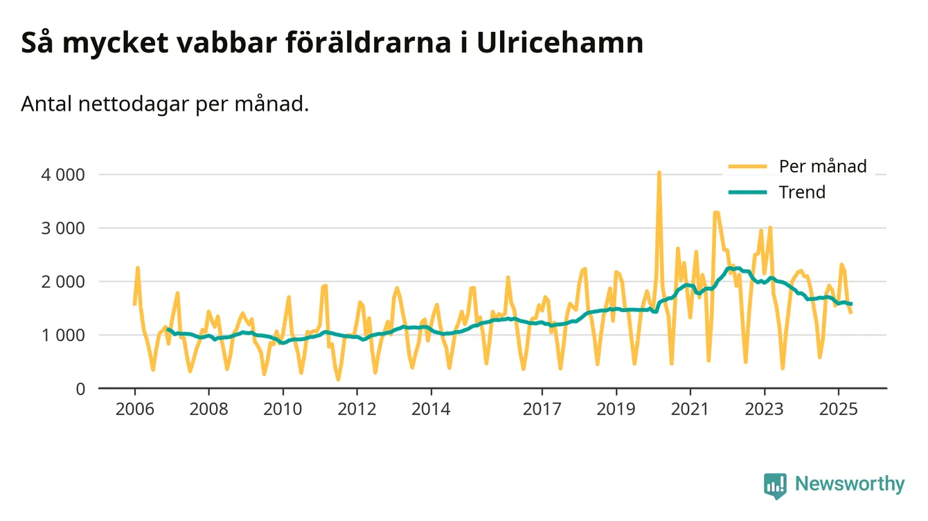 När coronapandemin drog in i mars 2020 peakade antalet vabbdagar både i Ulricehamns kommun och i riket som helhet. Under de senaste två åren har vabbuttaget börjat minska igen.
