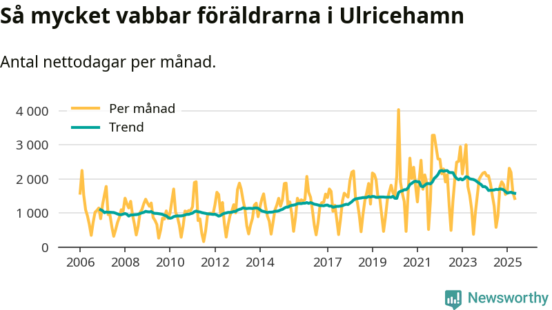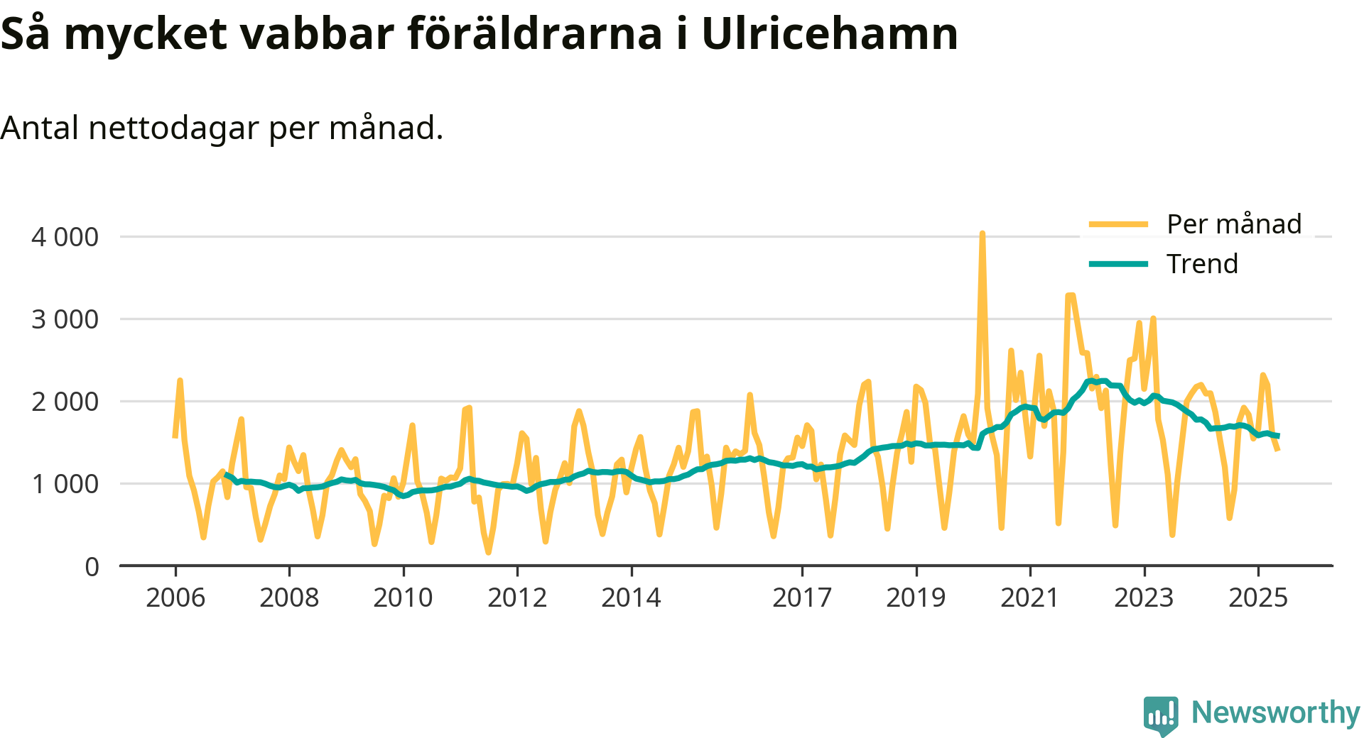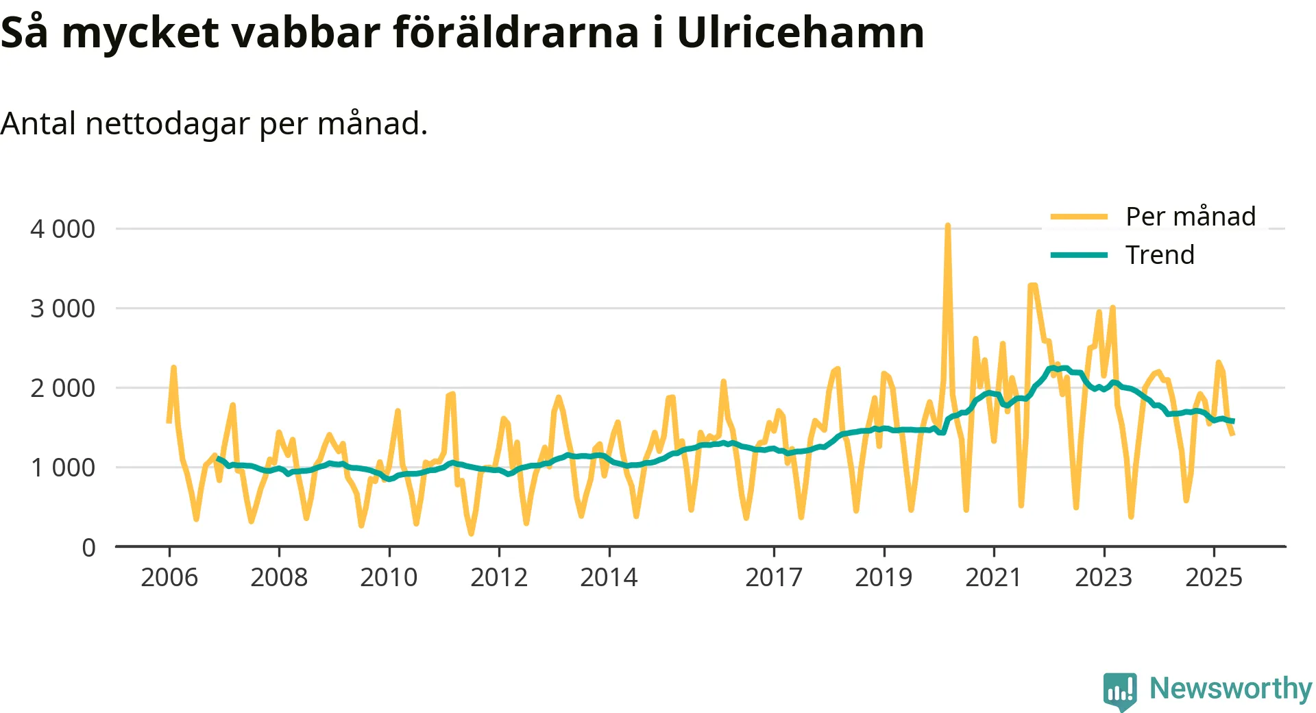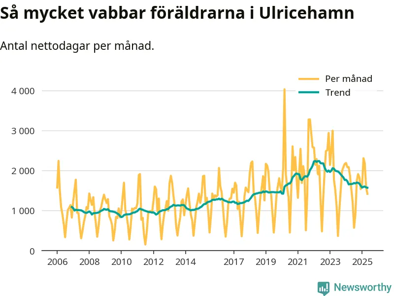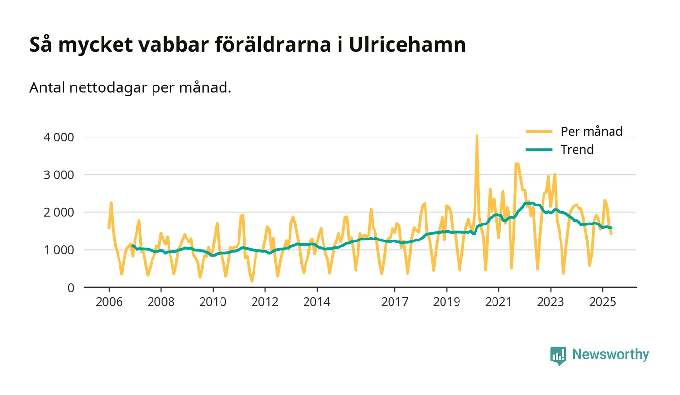 När coronapandemin drog in i mars 2020 peakade antalet vabbdagar både i Ulricehamns kommun och i riket som helhet. Under de senaste två åren har vabbuttaget börjat minska igen.