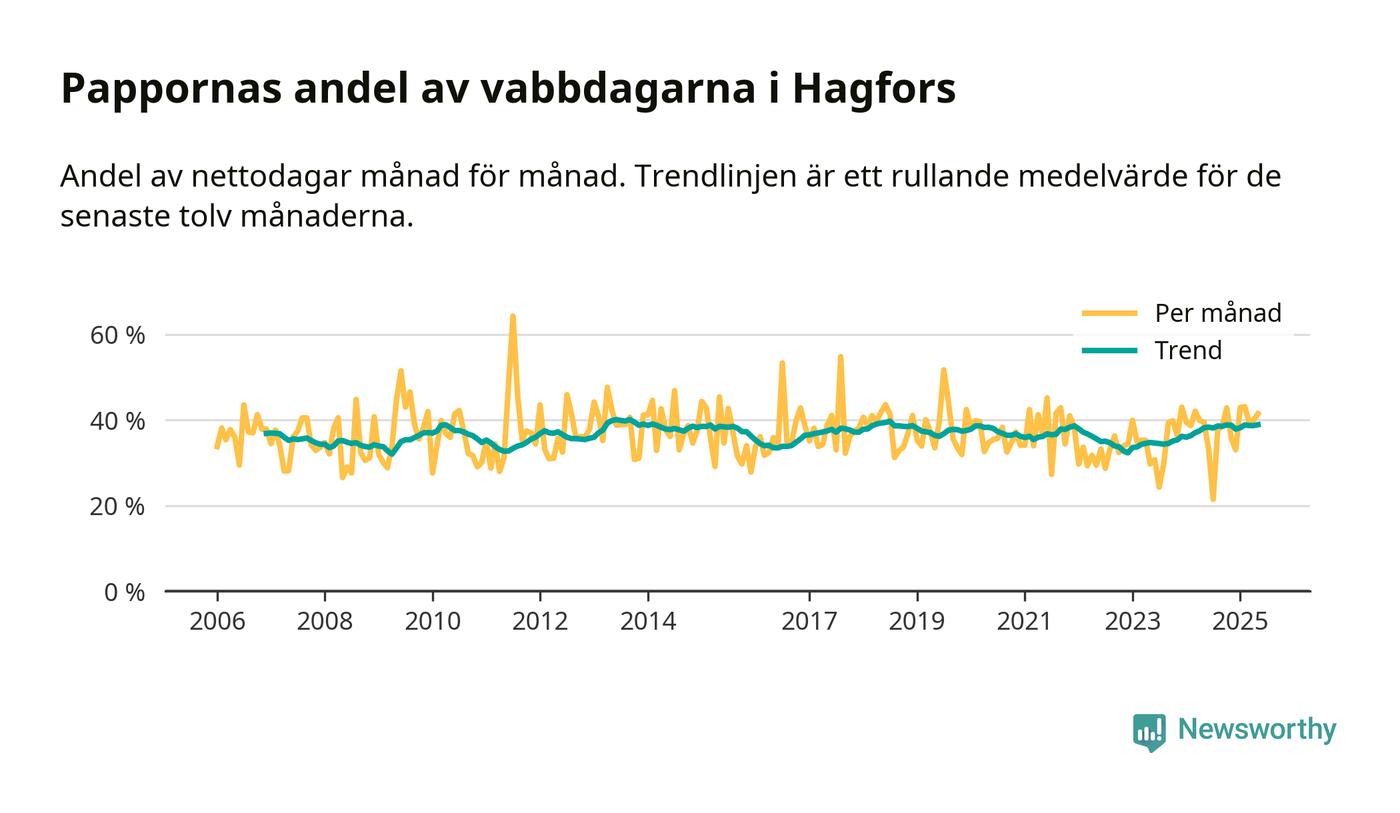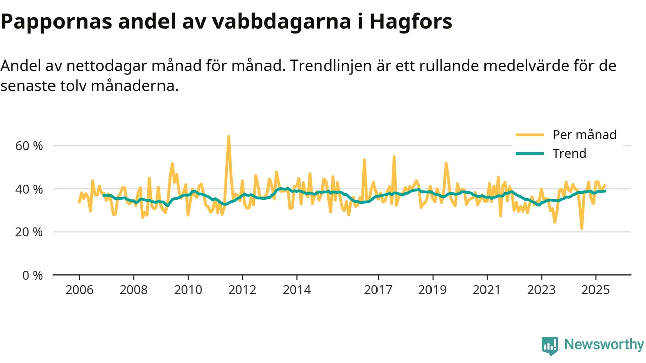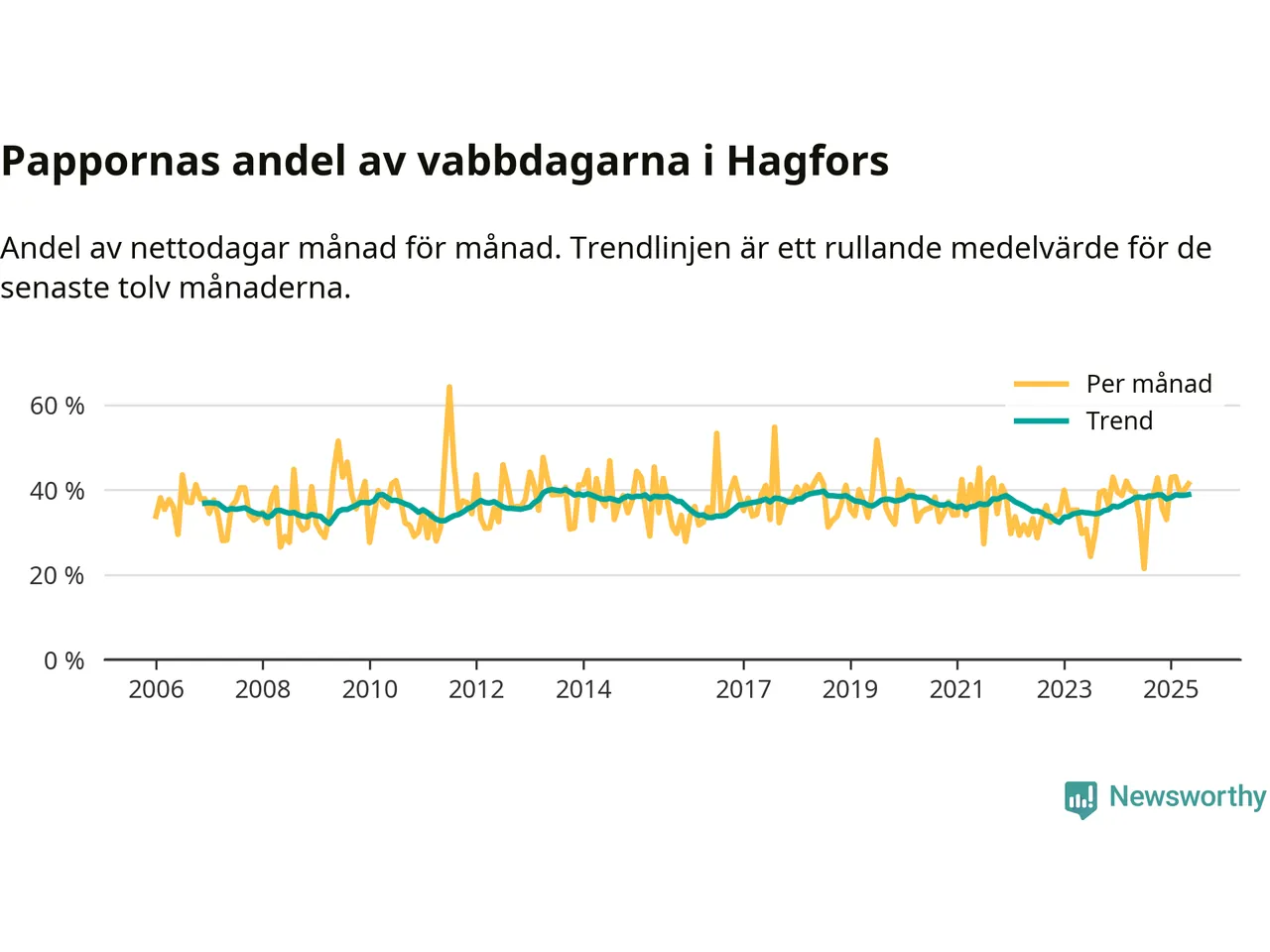 Hagfors ligger en bit från ett jämställt uttag. Under de senaste tolv månaderna har männen stått för 39 procent av all vabb i kommunen.