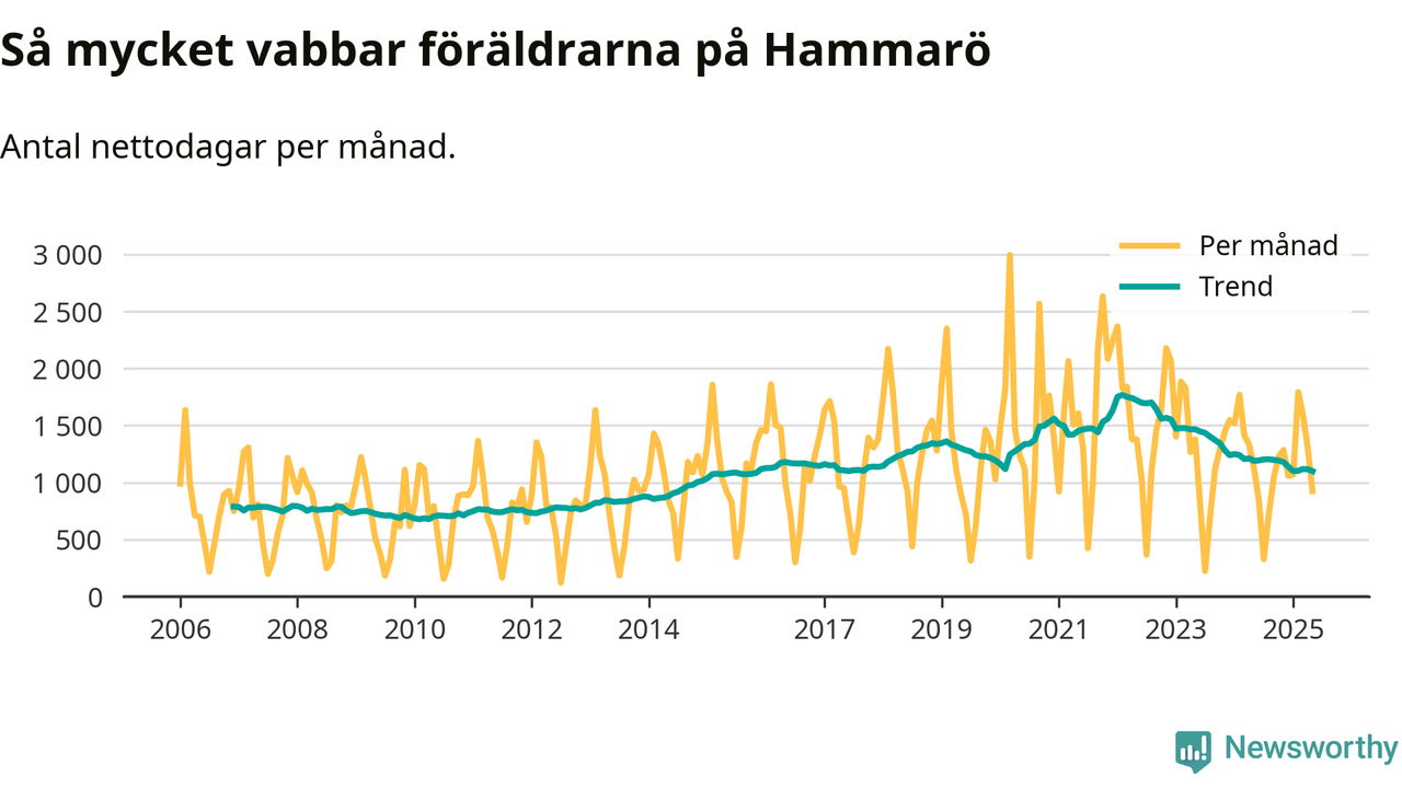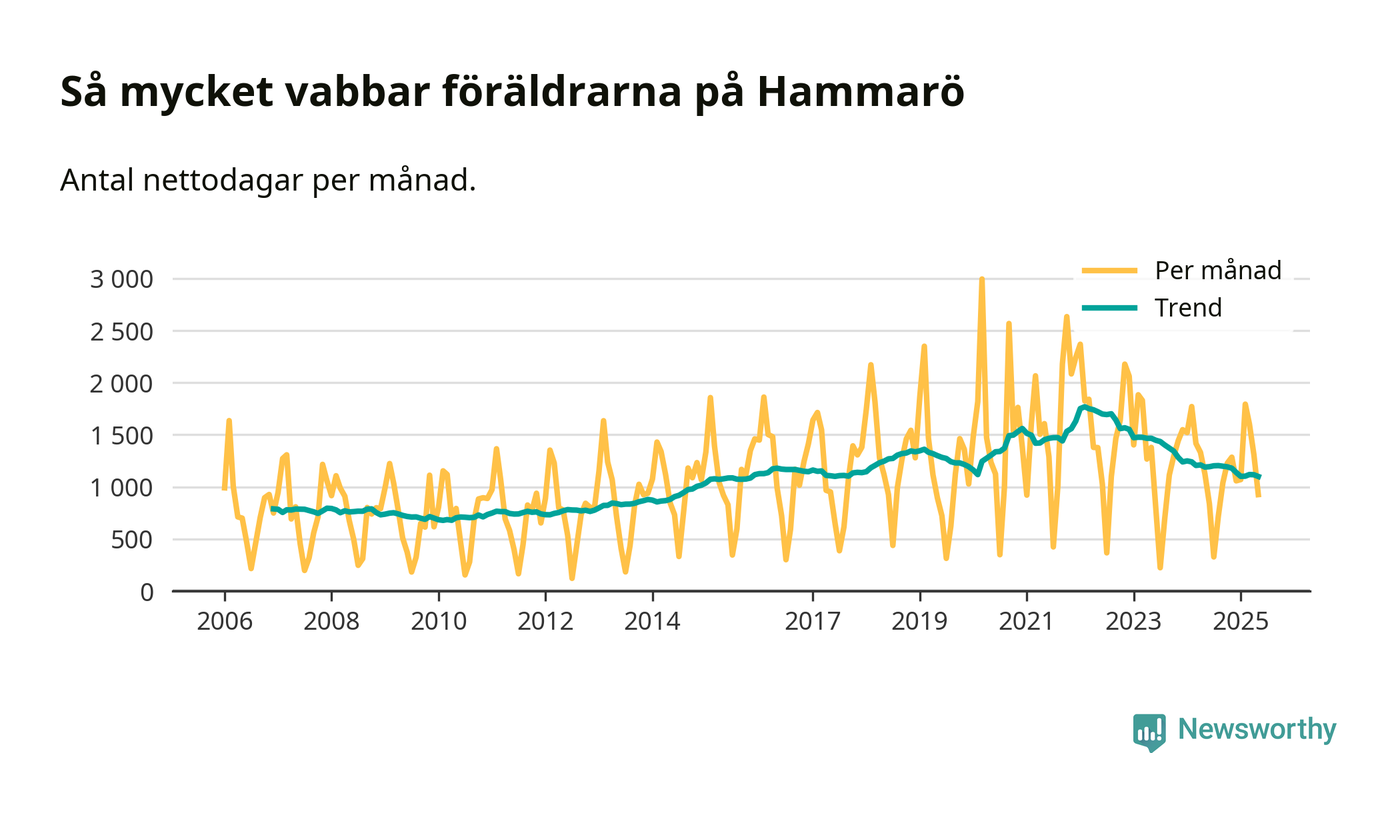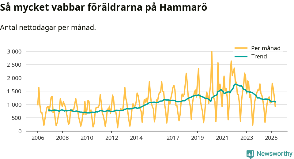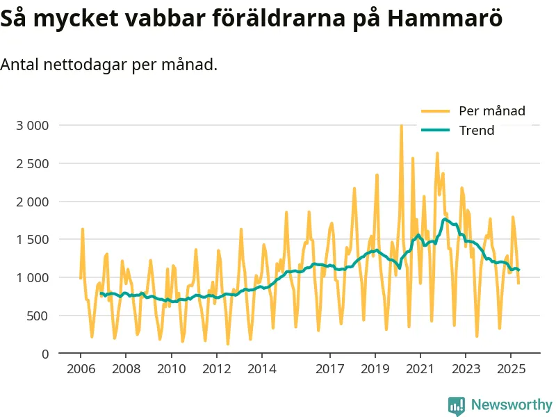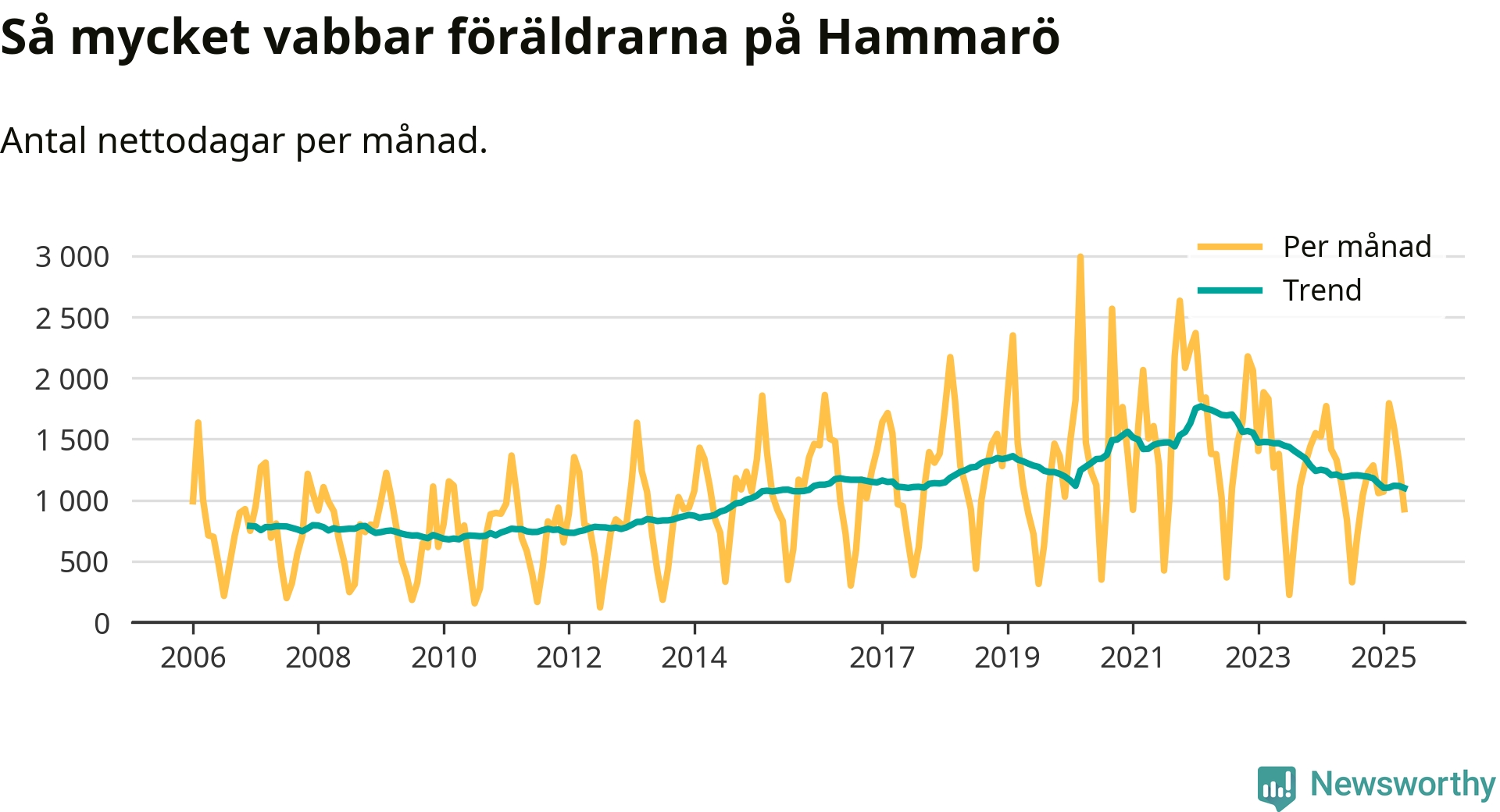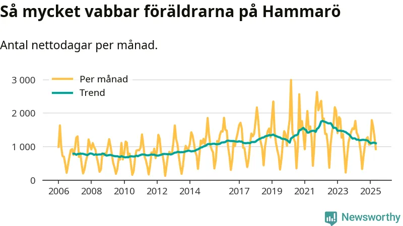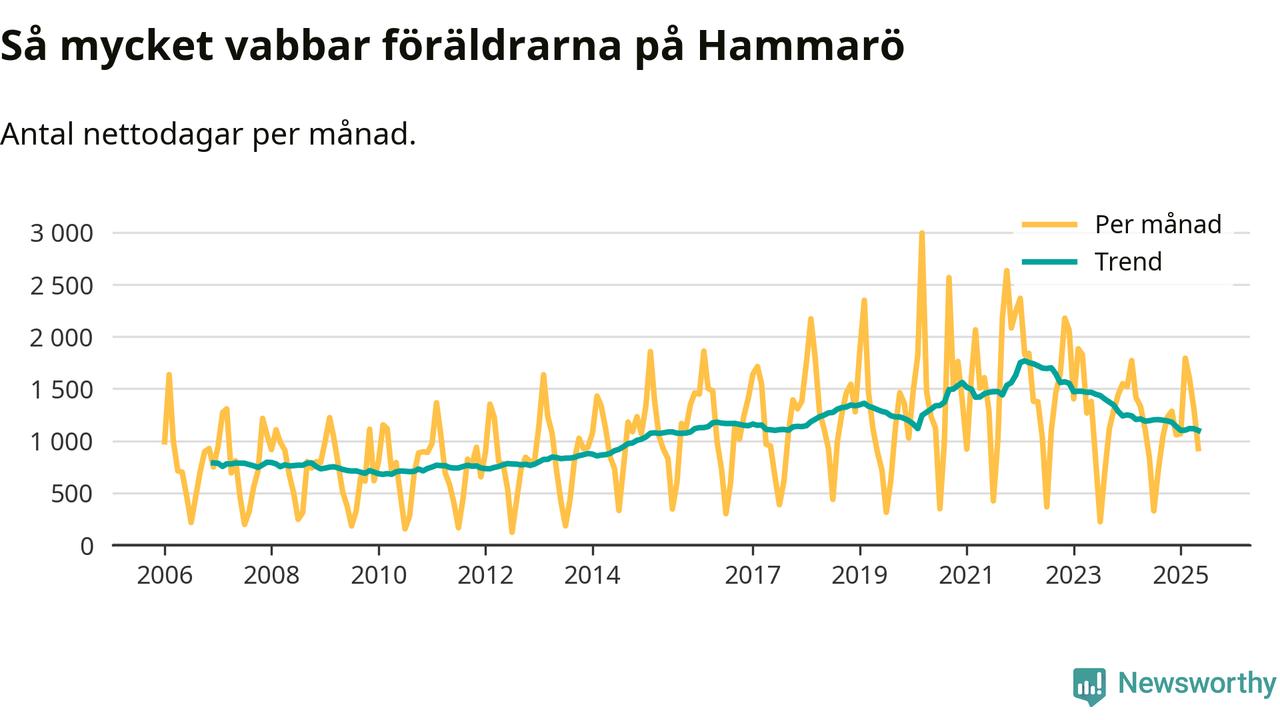 När coronapandemin drog in i mars 2020 peakade antalet vabbdagar både i Hammarö kommun och i riket som helhet. Under de senaste två åren har vabbuttaget börjat minska igen.