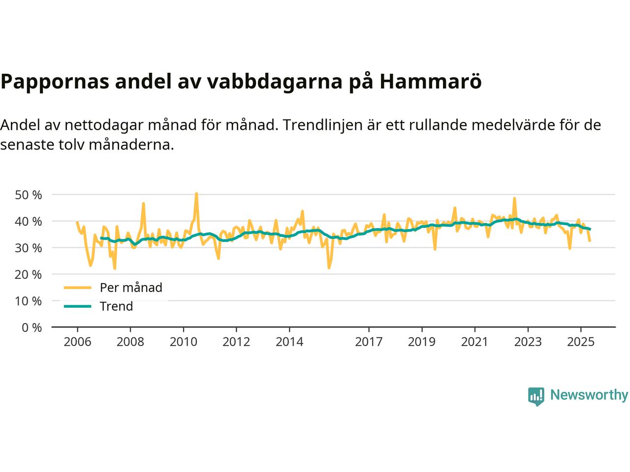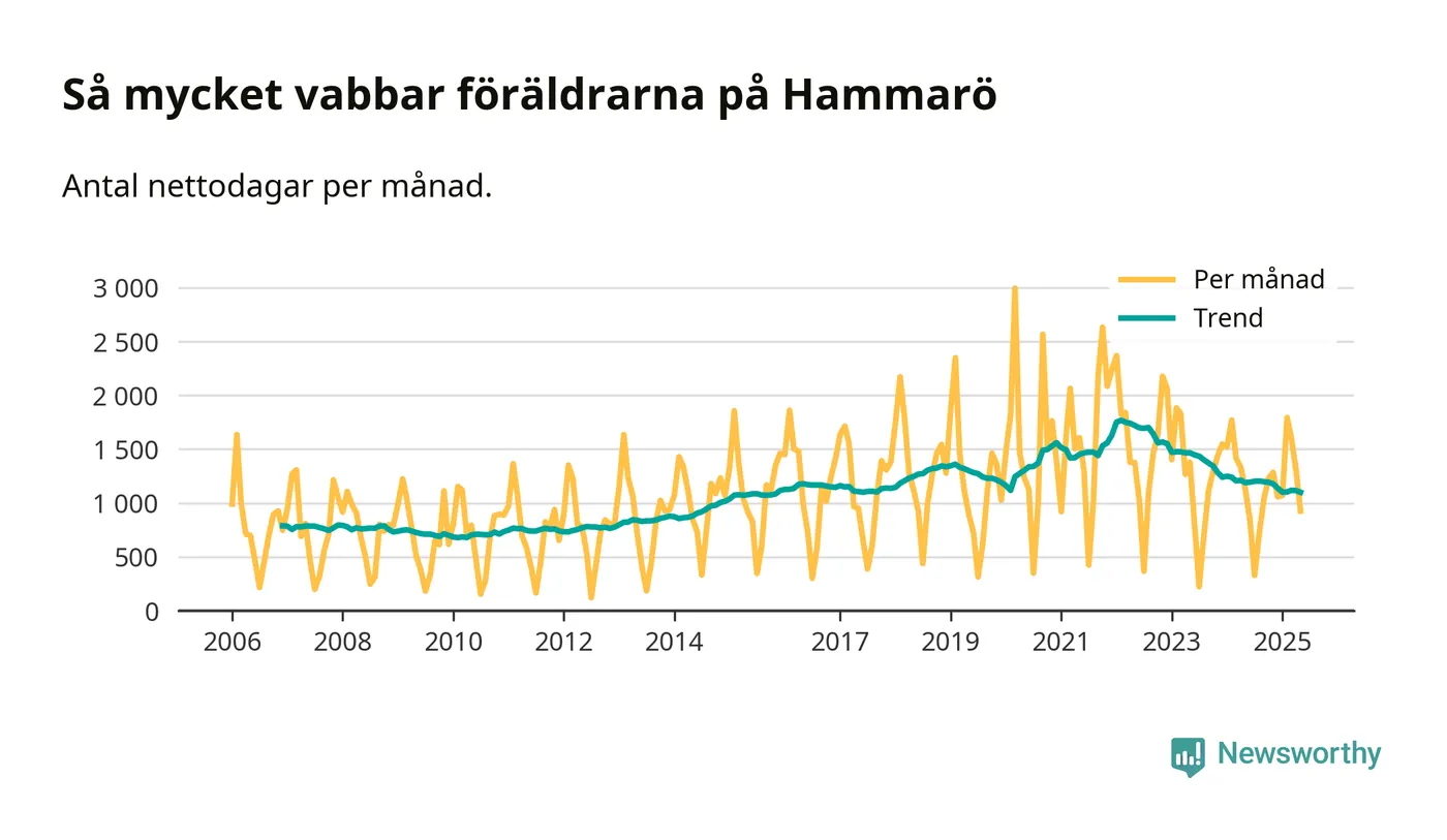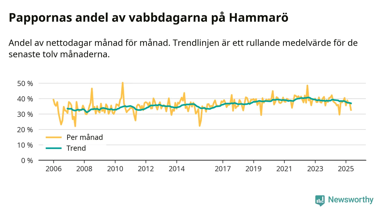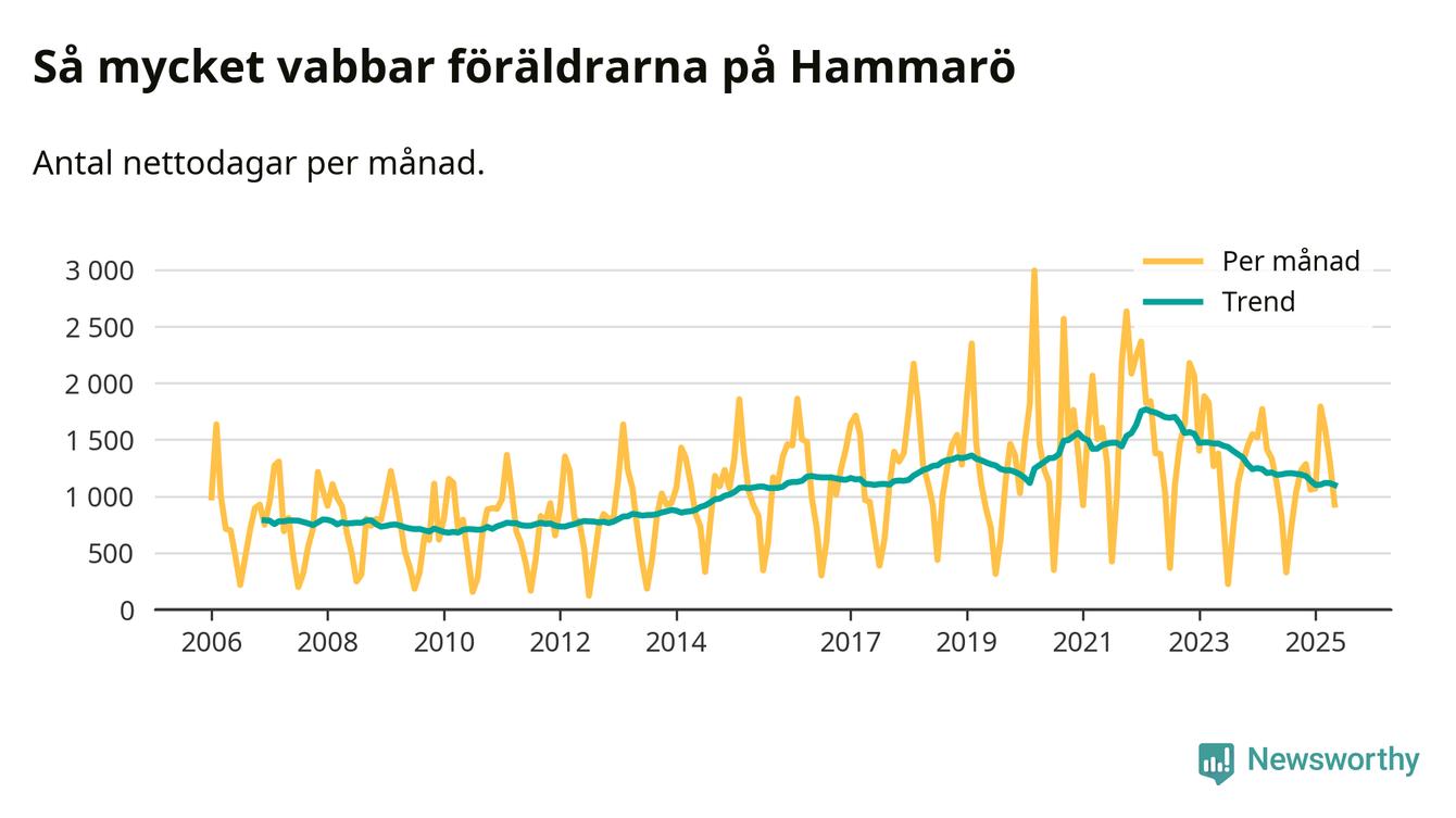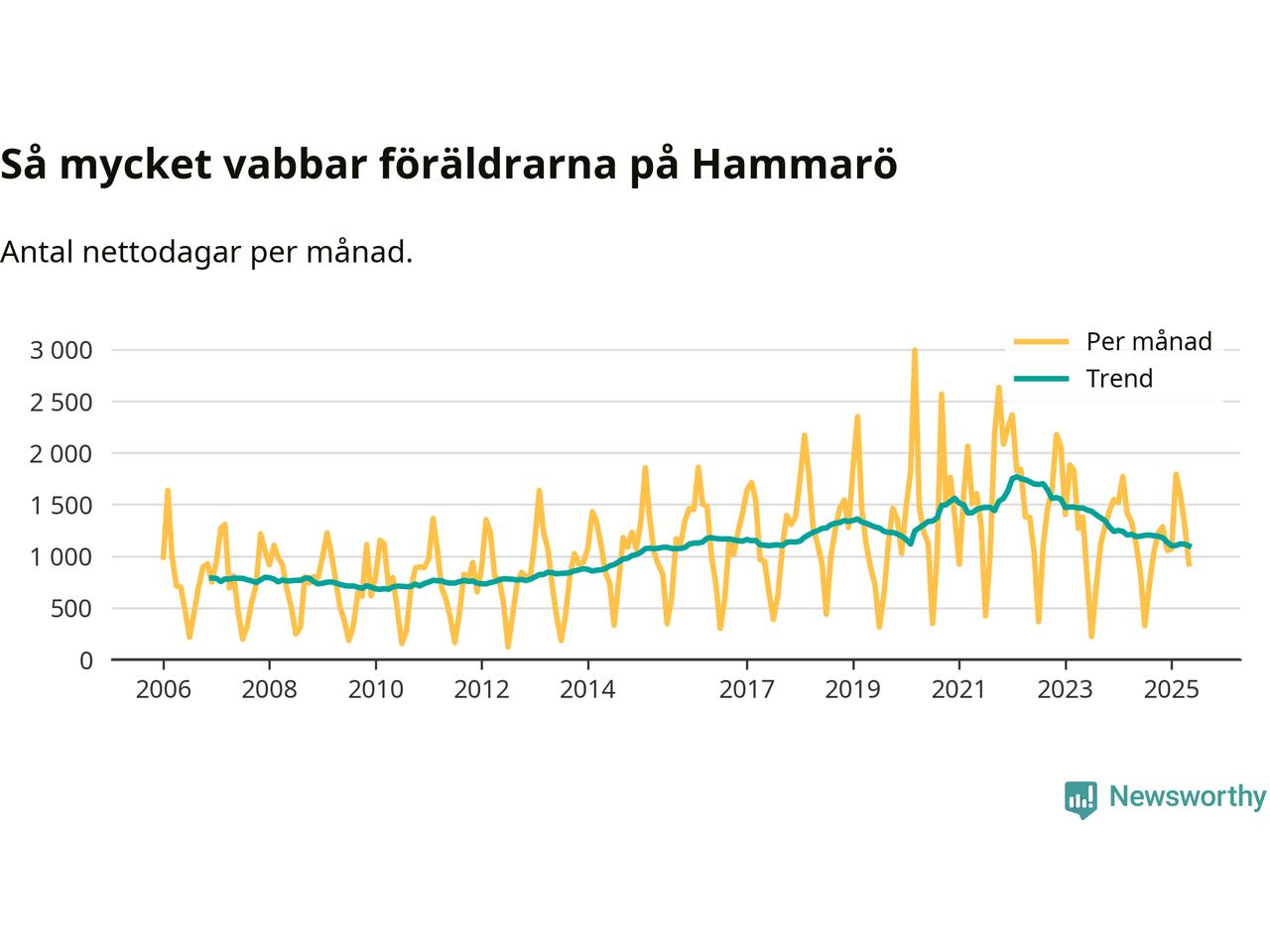 Hammarö ligger en bit från ett jämställt uttag. Under de senaste tolv månaderna har männen stått för 37 procent av all vabb i kommunen. Det är en lägre andel än på nästan sju år.