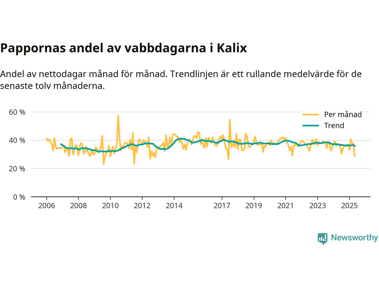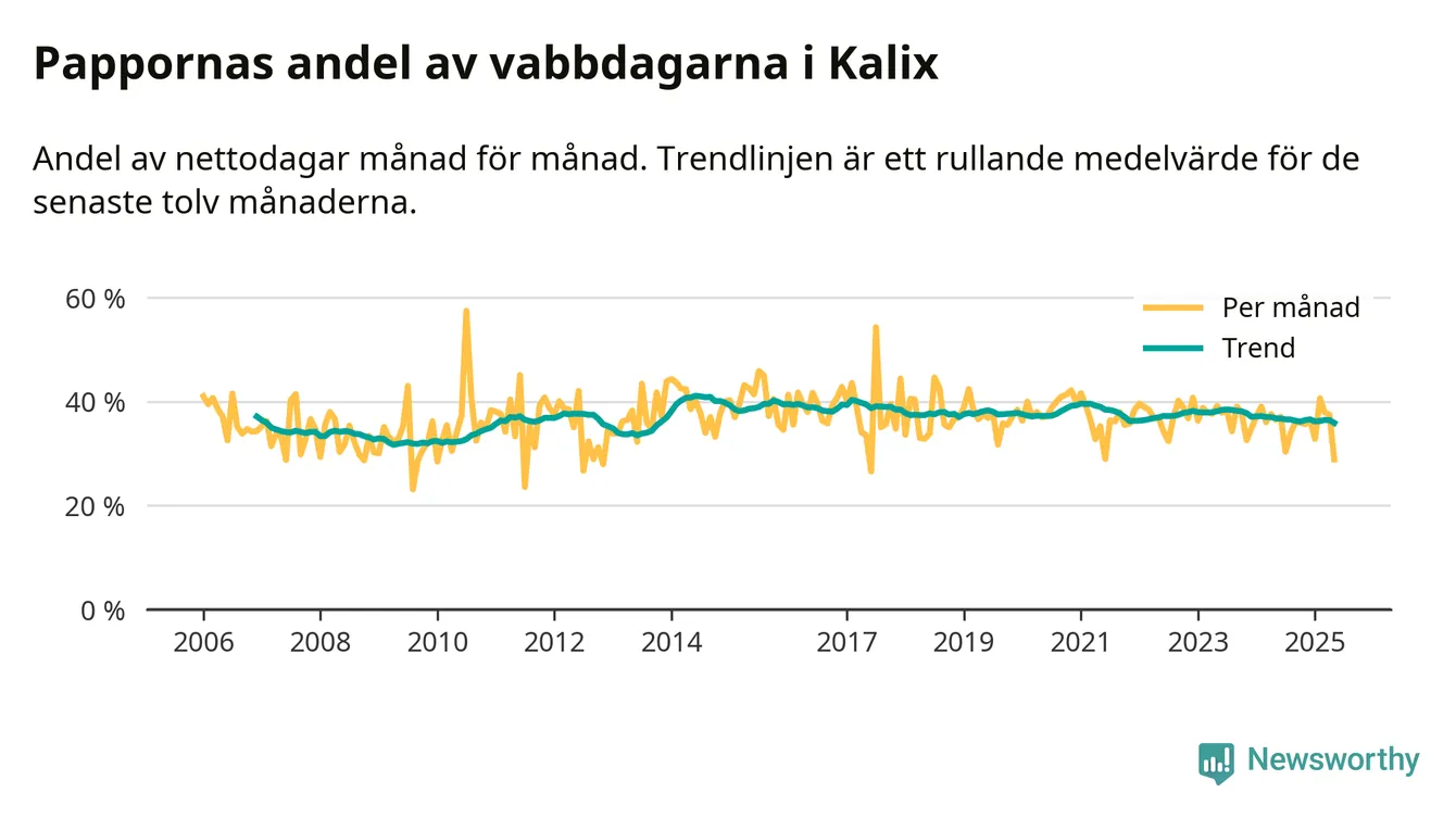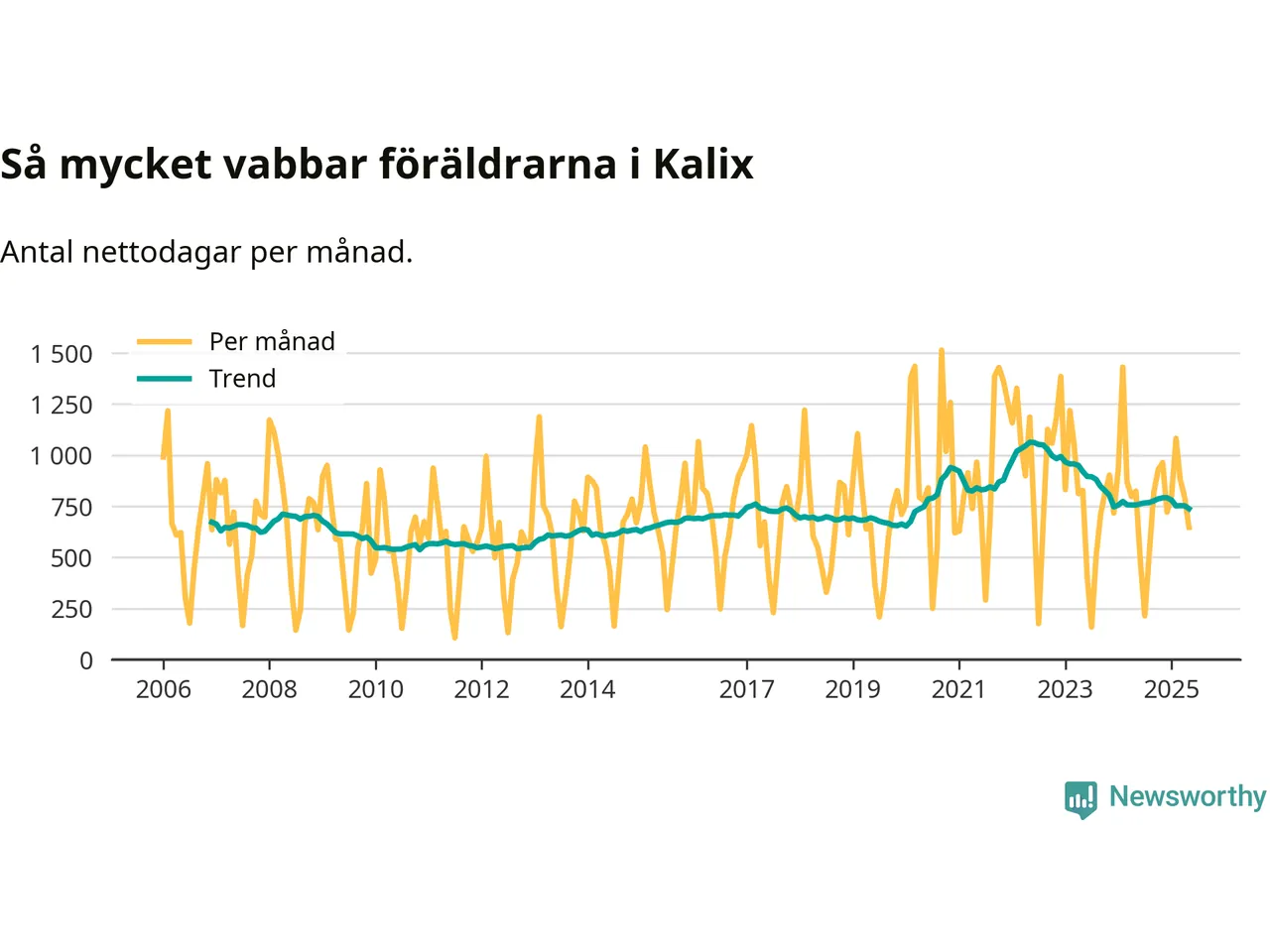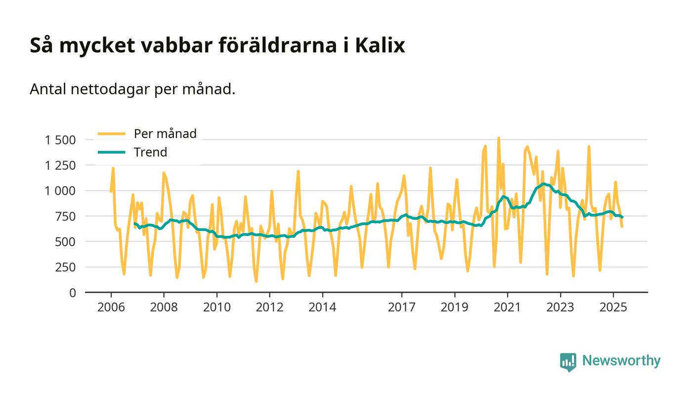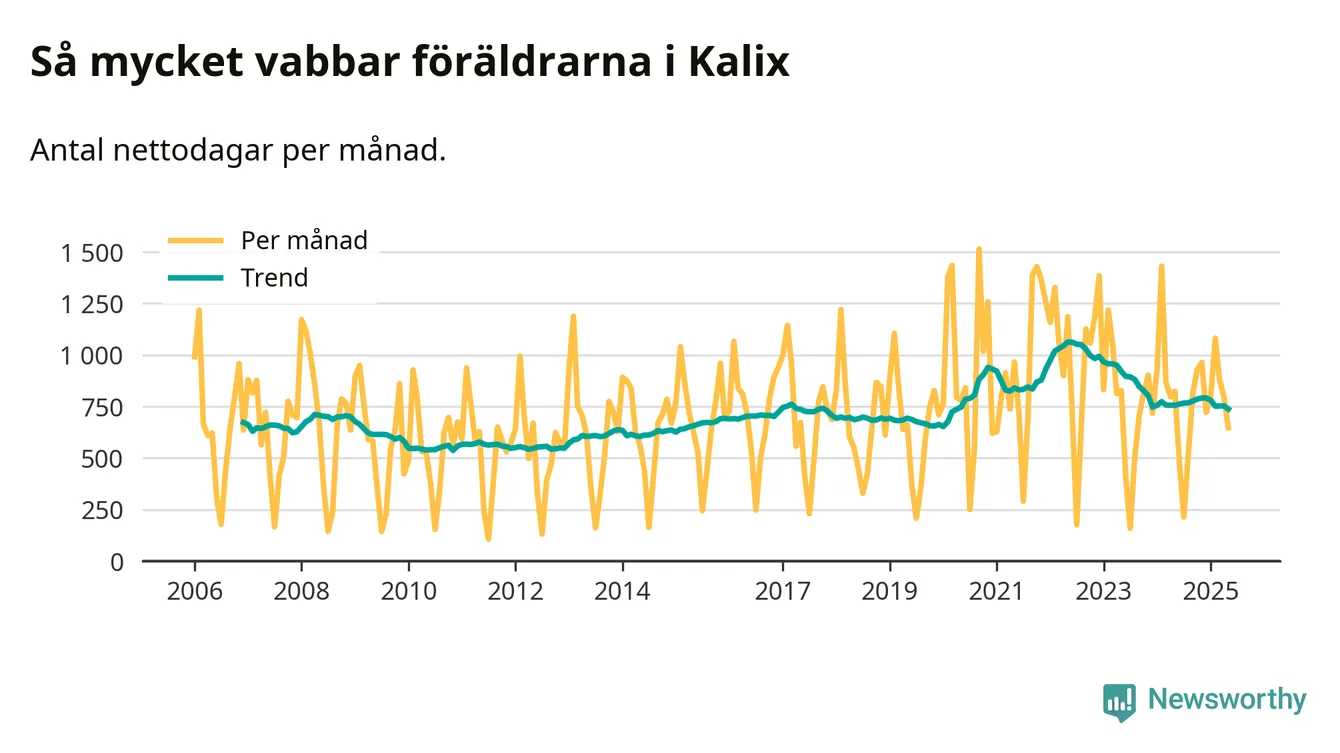 Kalix ligger en bit från ett jämställt uttag. Under de senaste tolv månaderna har männen stått för 36 procent av all vabb i kommunen. Det är en lägre andel än på nästan tolv år.