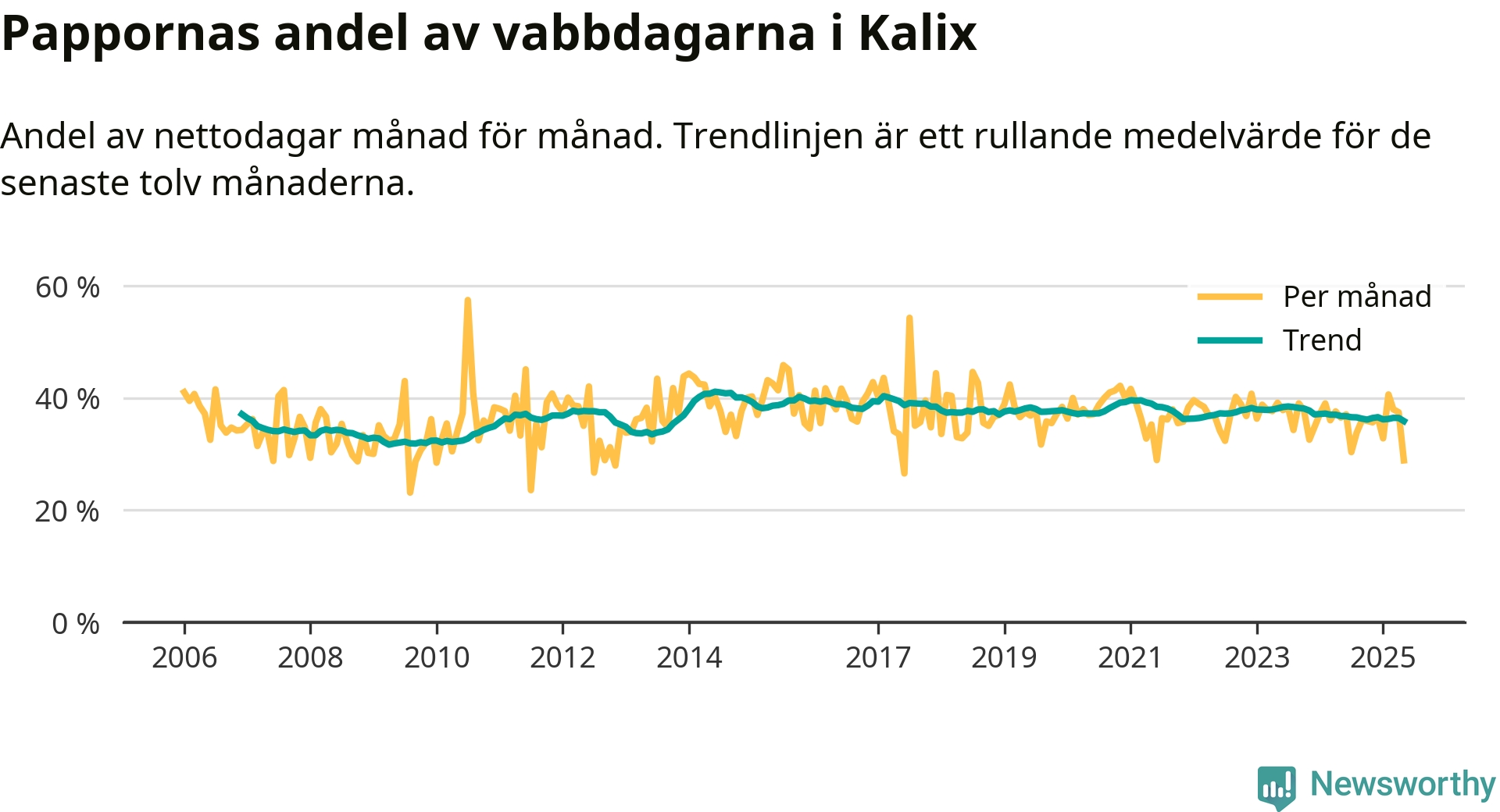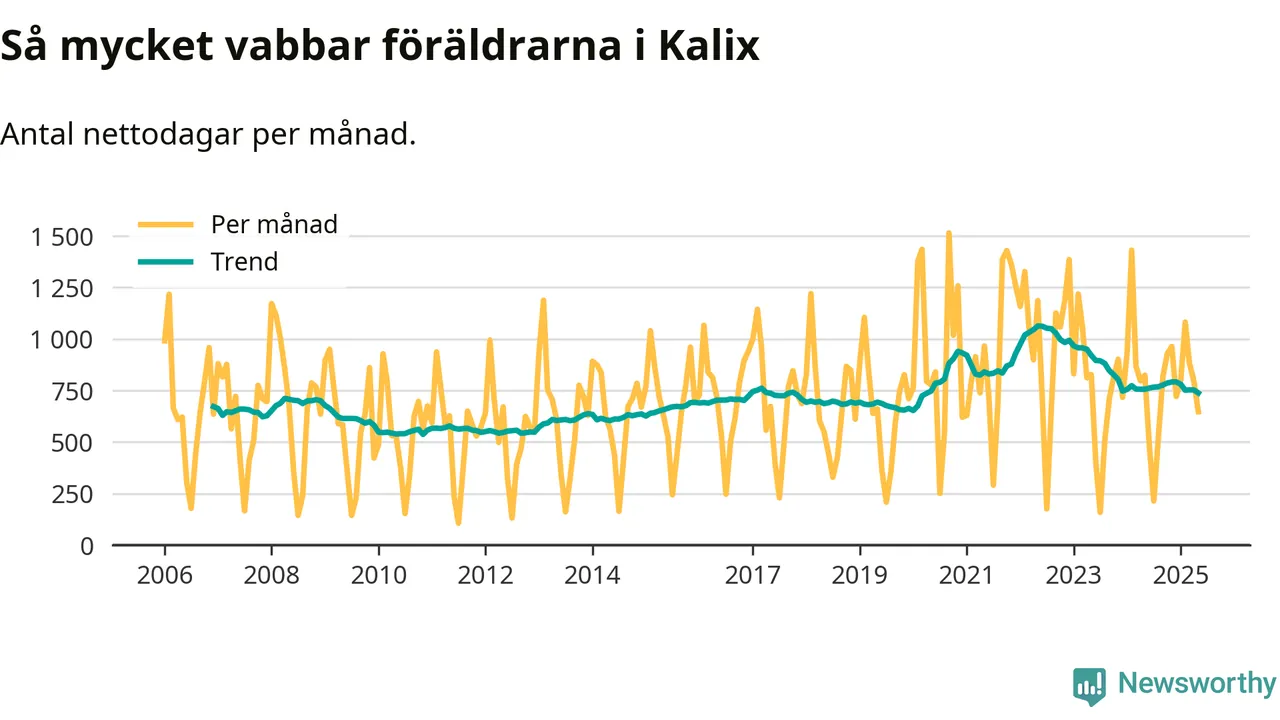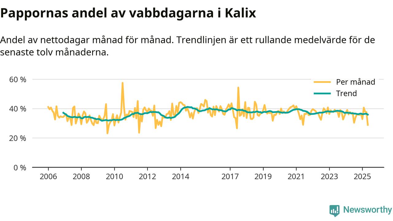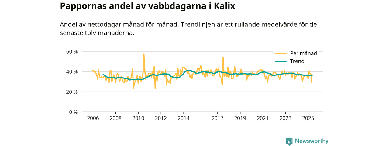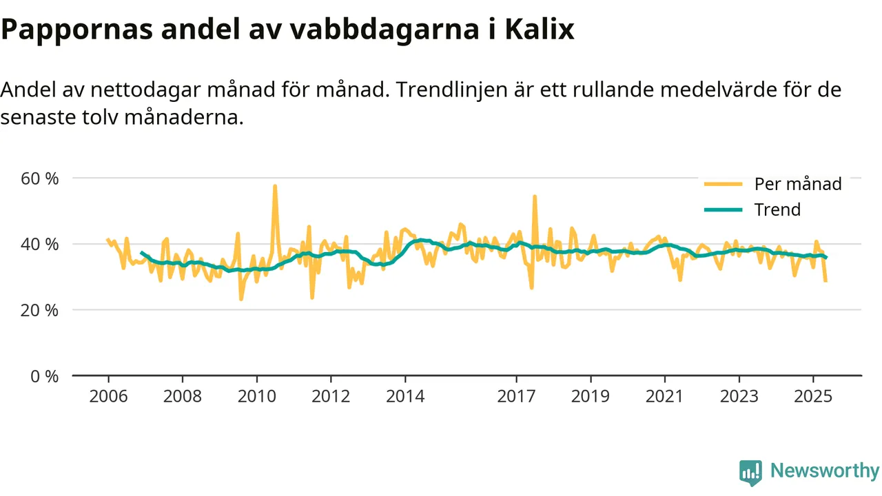 Kalix ligger en bit från ett jämställt uttag. Under de senaste tolv månaderna har männen stått för 36 procent av all vabb i kommunen. Det är en lägre andel än på nästan tolv år.