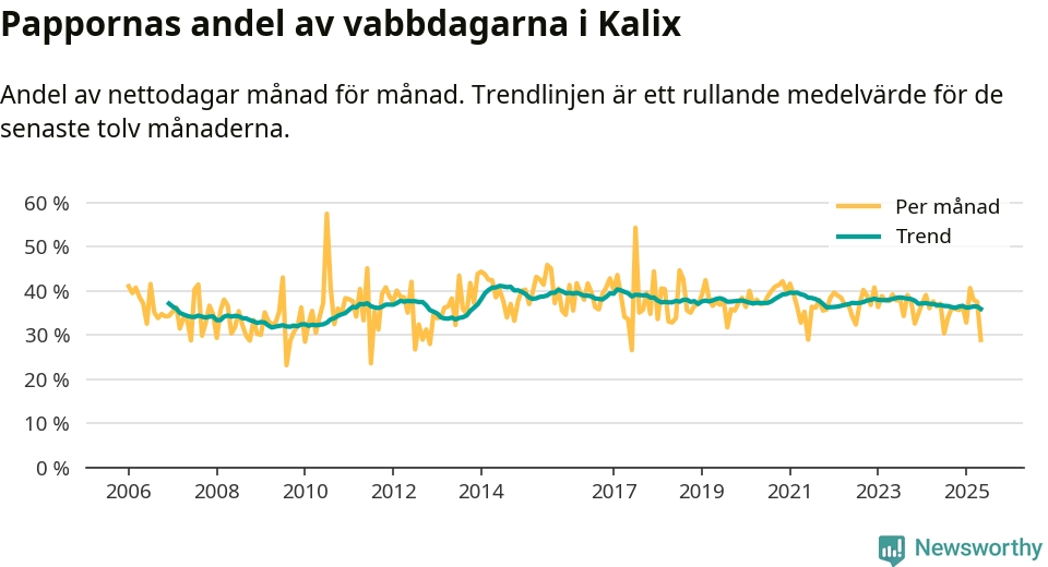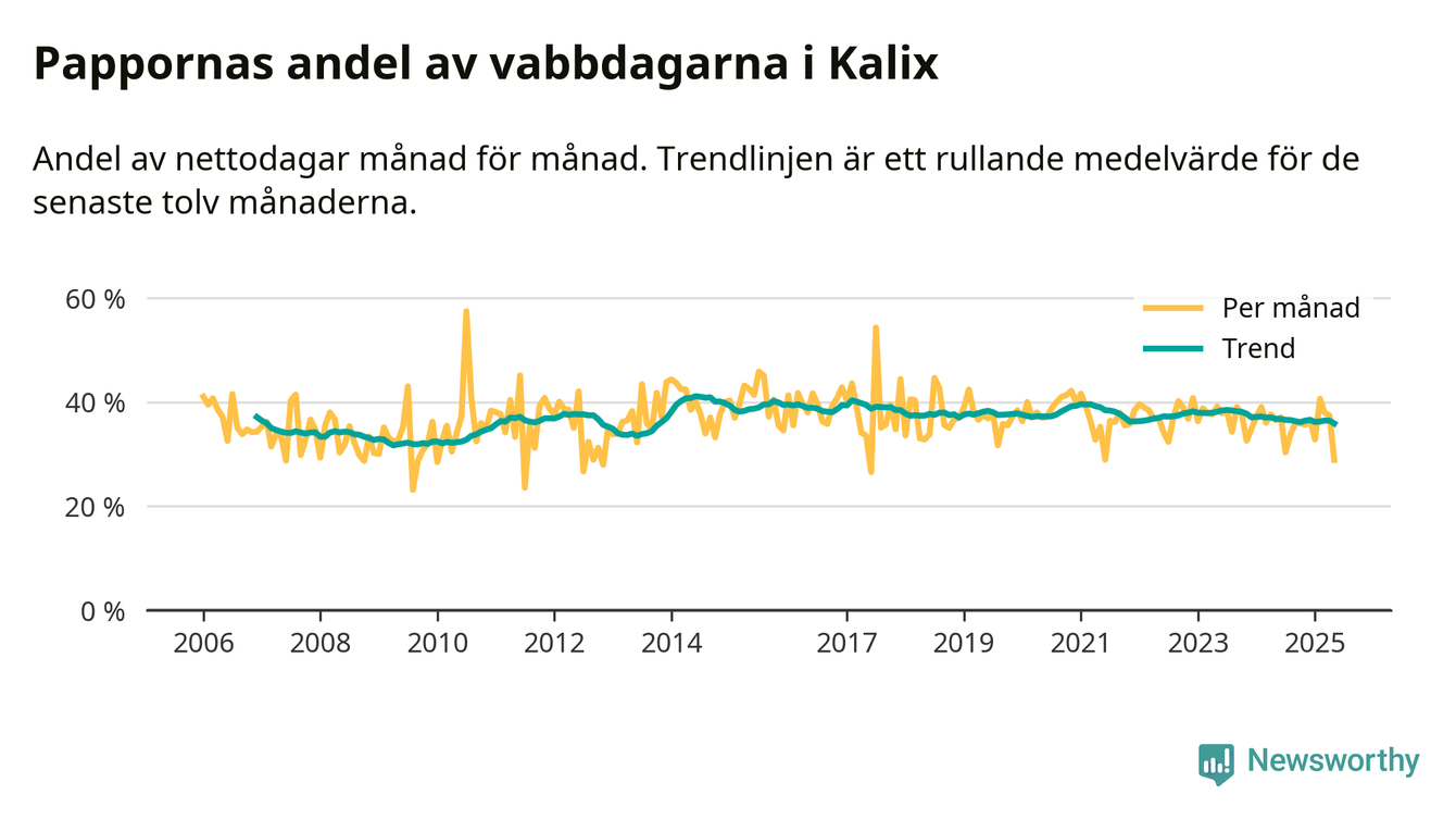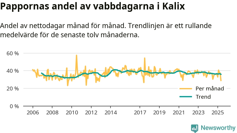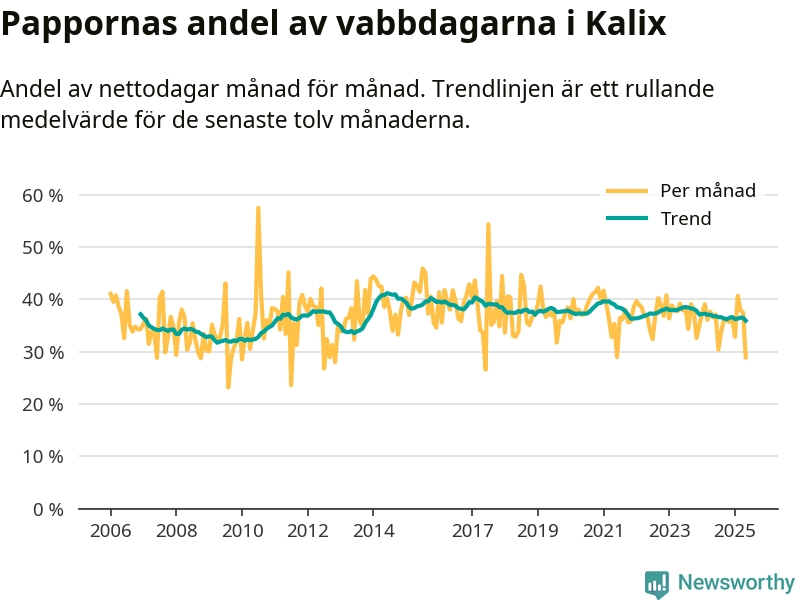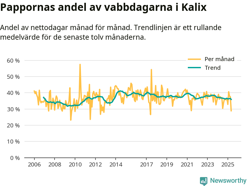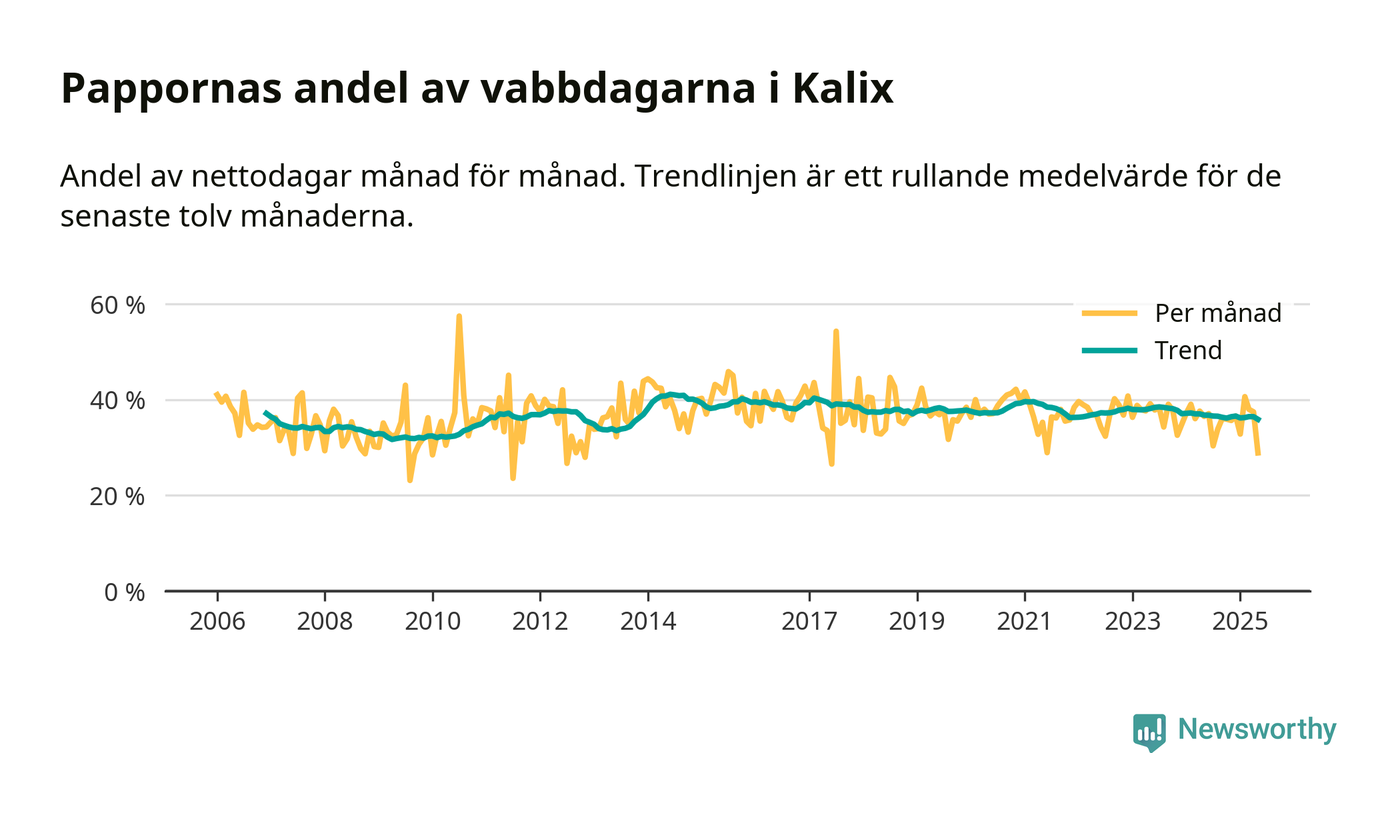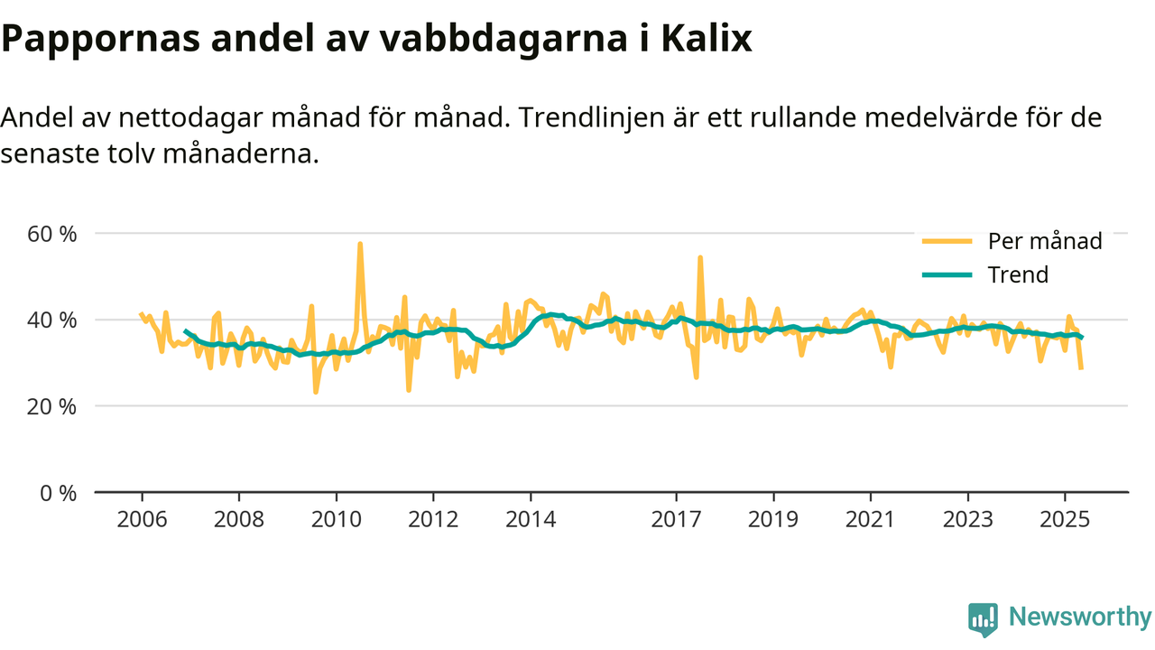 Kalix ligger en bit från ett jämställt uttag. Under de senaste tolv månaderna har männen stått för 36 procent av all vabb i kommunen. Det är en lägre andel än på nästan tolv år.