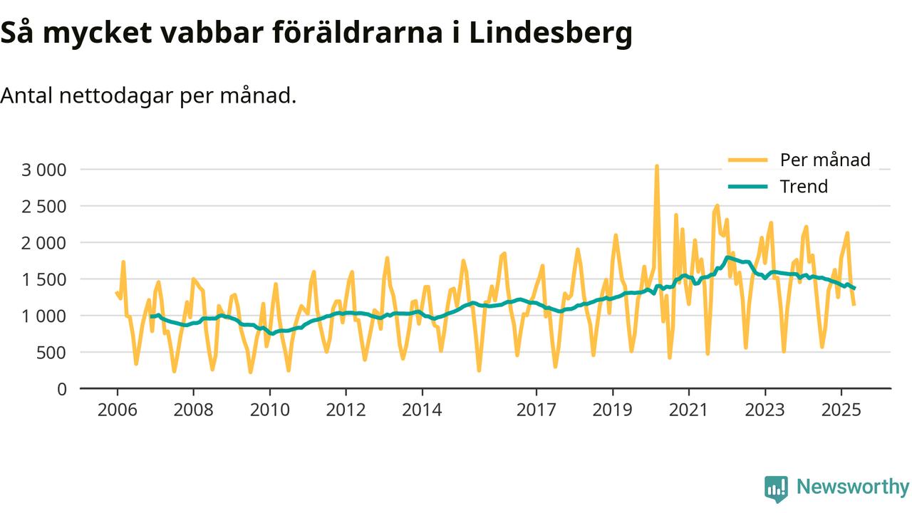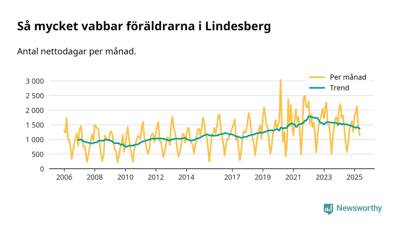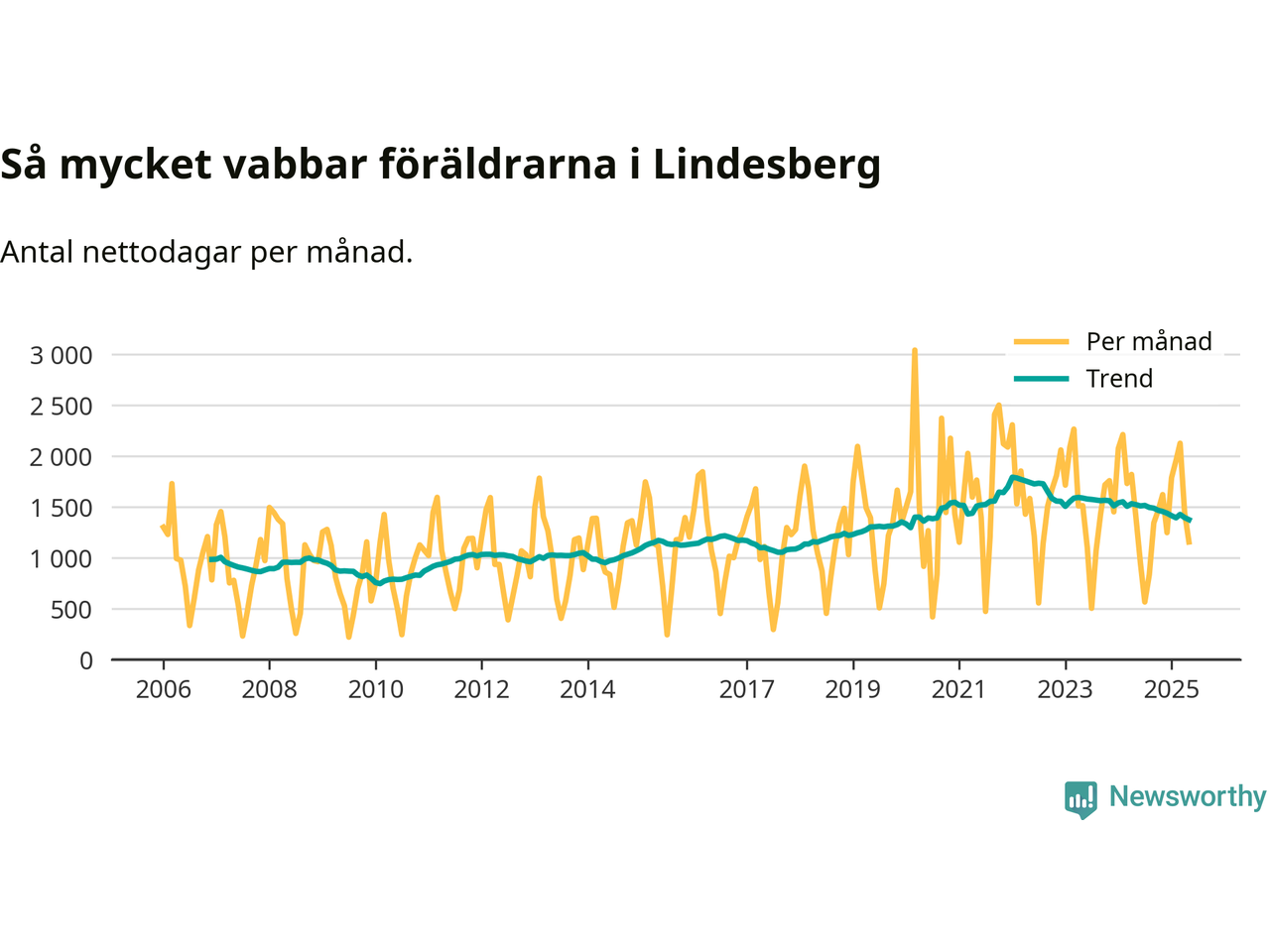 När coronapandemin drog in i mars 2020 peakade antalet vabbdagar både i Lindesbergs kommun och i riket som helhet. Under de senaste två åren har vabbuttaget börjat minska igen.