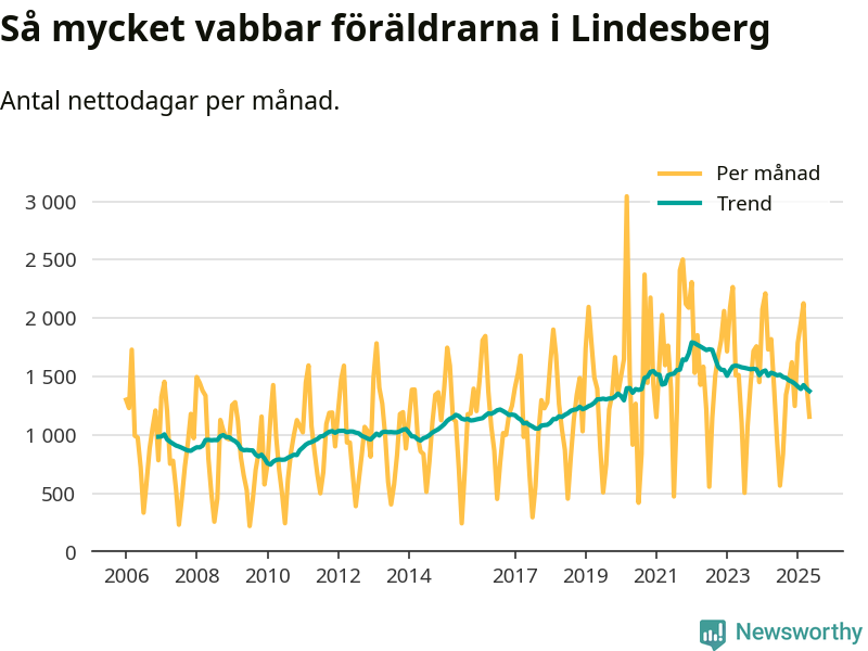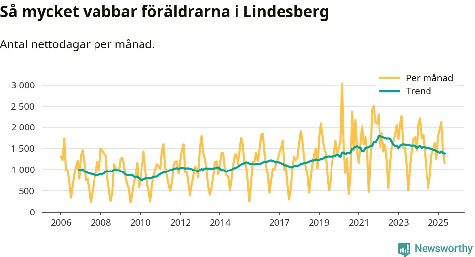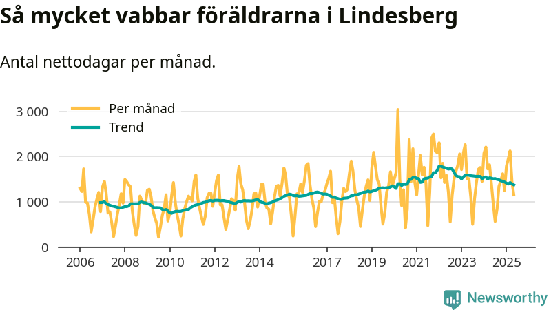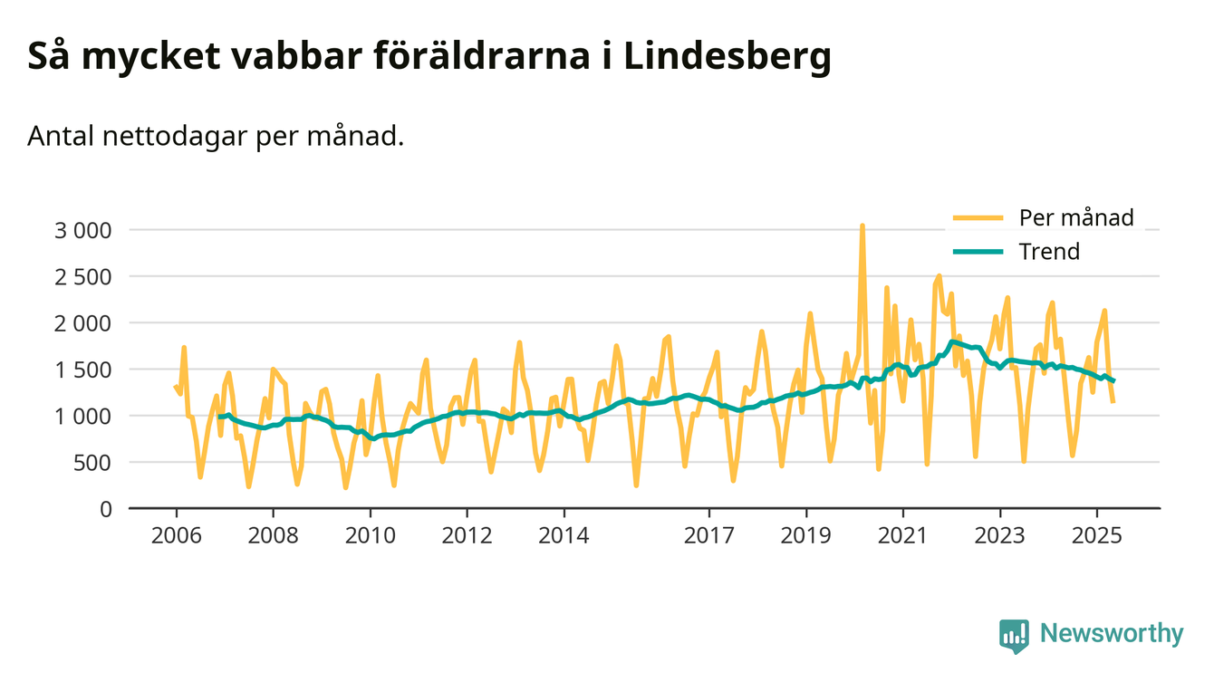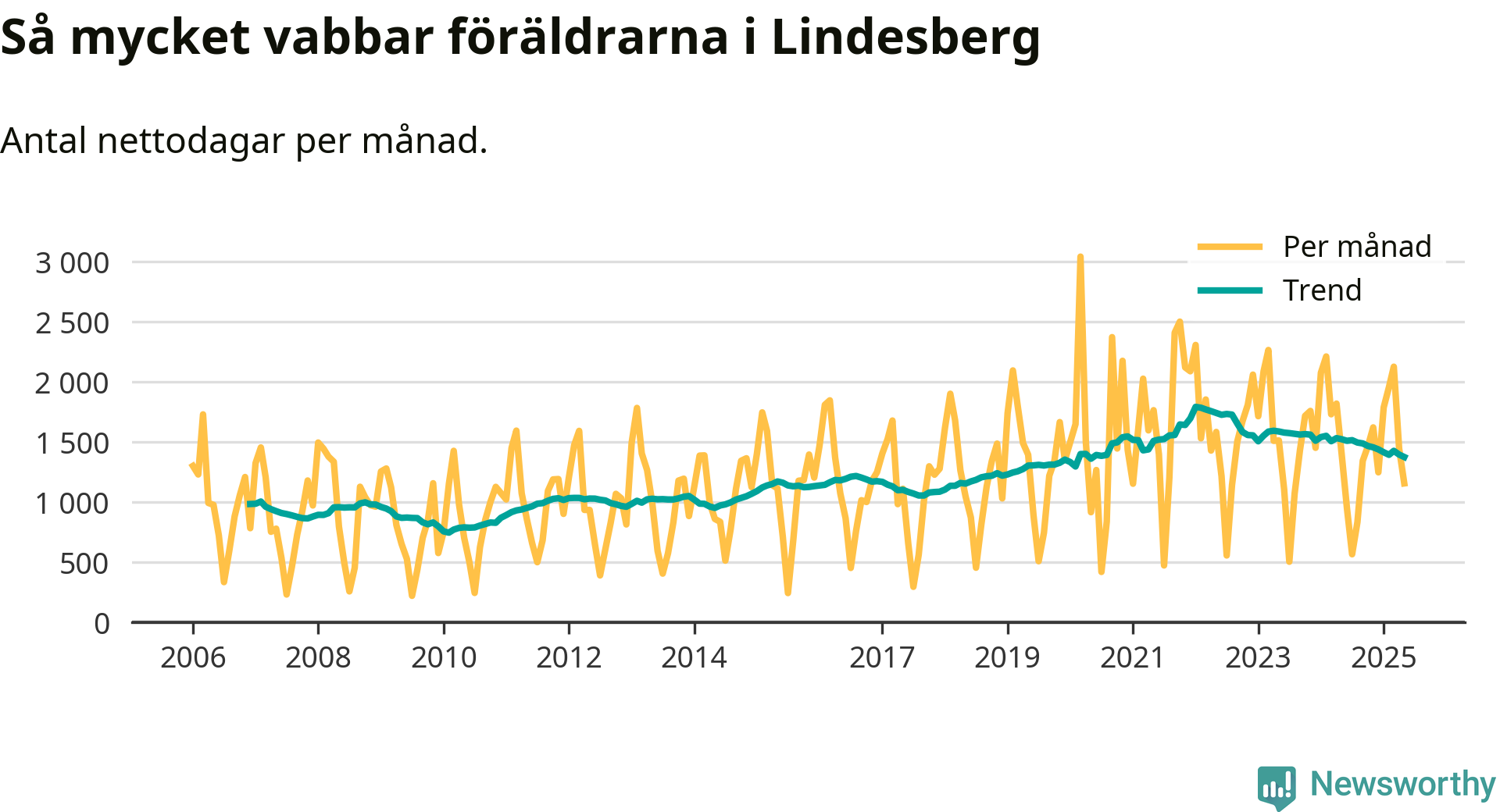 När coronapandemin drog in i mars 2020 peakade antalet vabbdagar både i Lindesbergs kommun och i riket som helhet. Under de senaste två åren har vabbuttaget börjat minska igen.