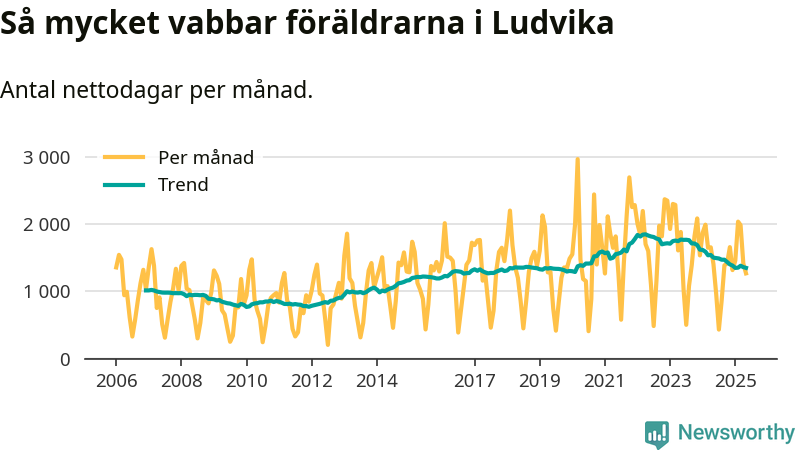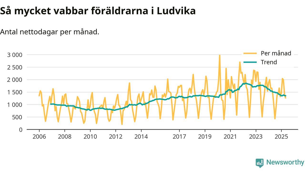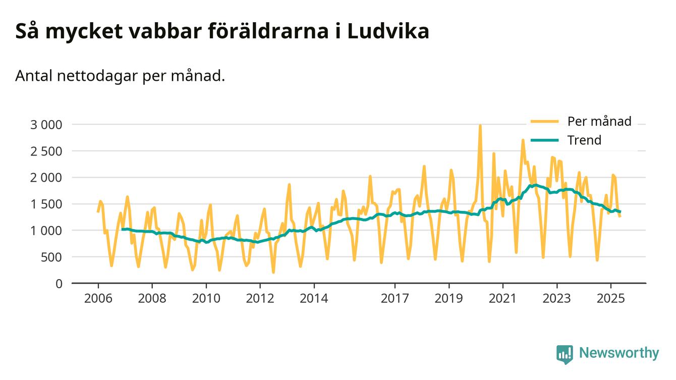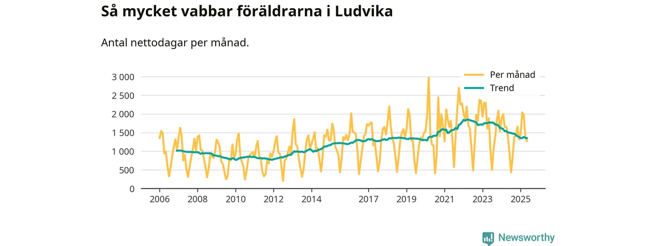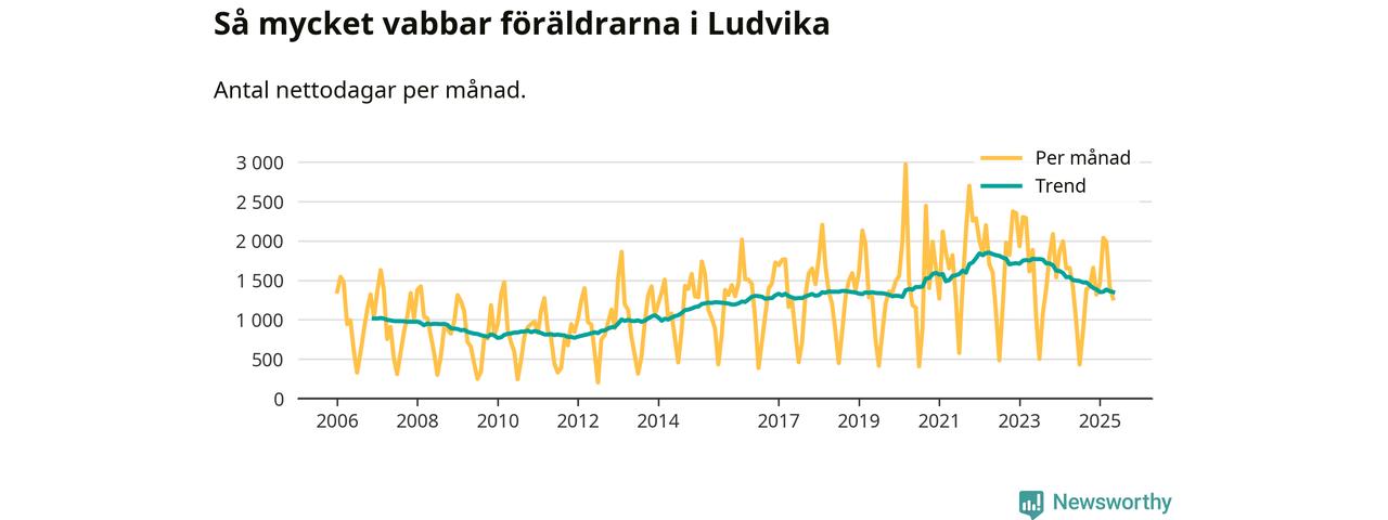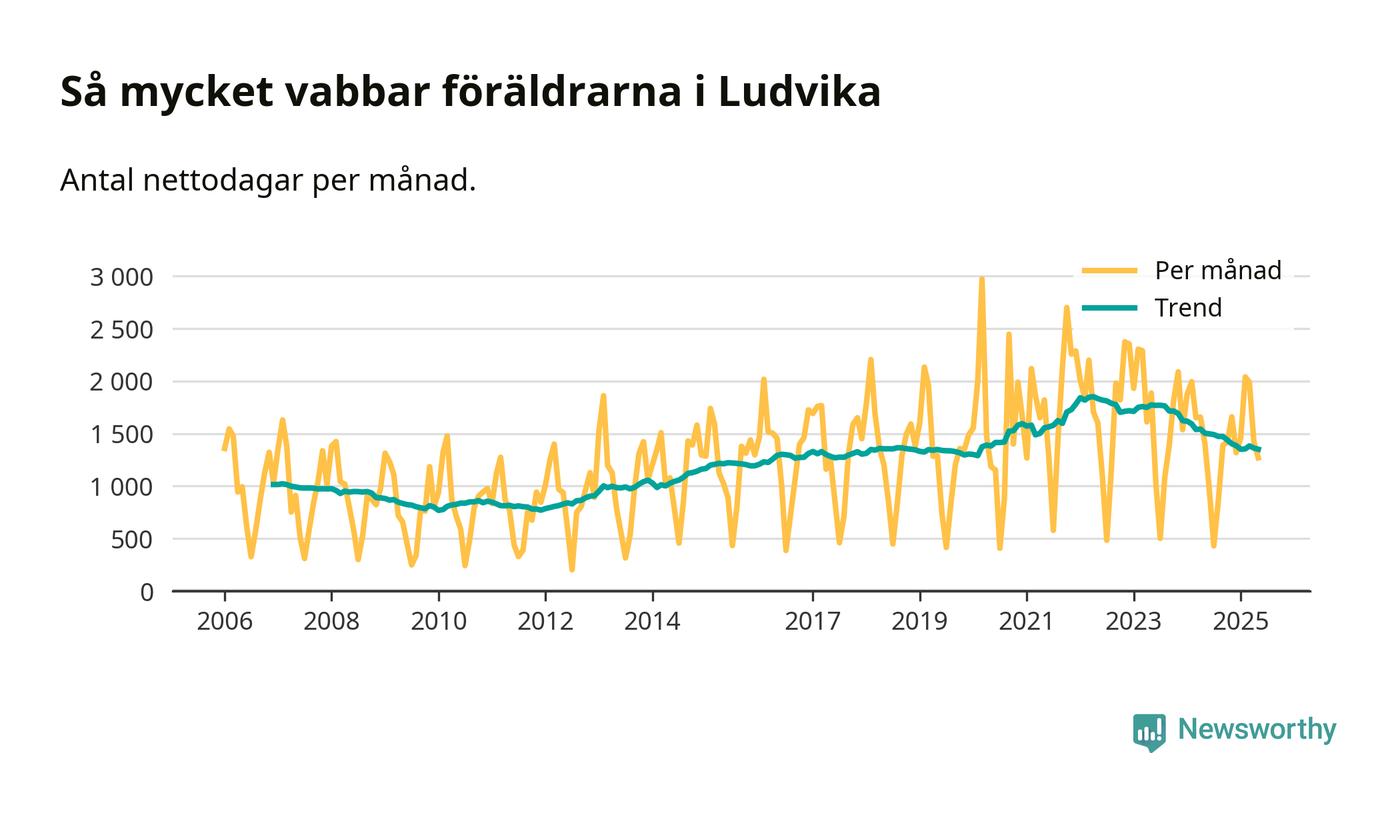 När coronapandemin drog in i mars 2020 peakade antalet vabbdagar både i Ludvika kommun och i riket som helhet. Under de senaste två åren har vabbuttaget börjat minska igen.