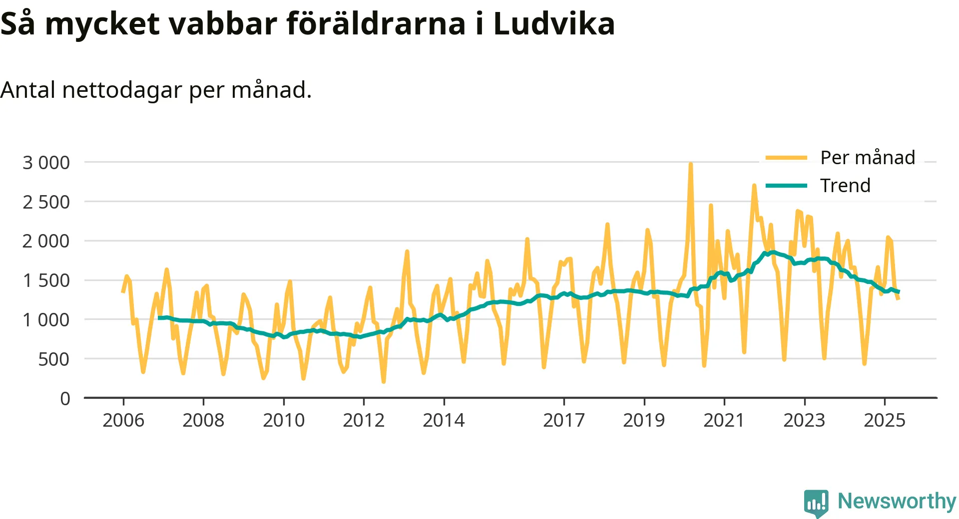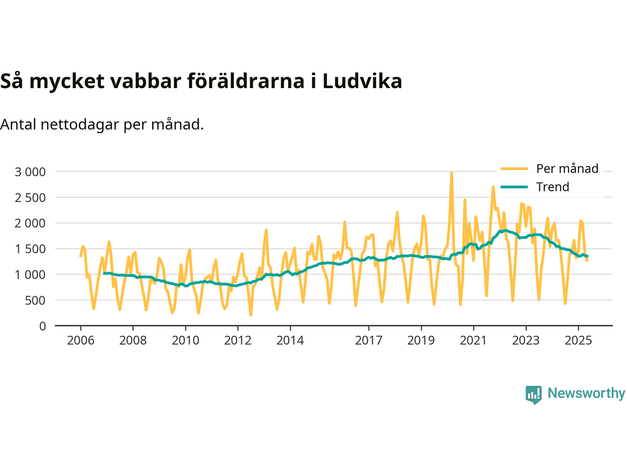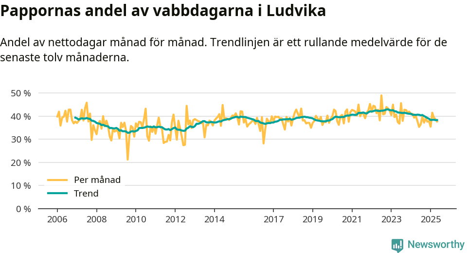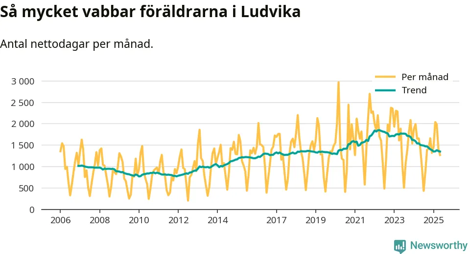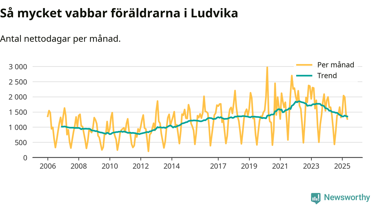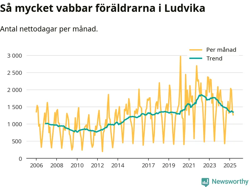 När coronapandemin drog in i mars 2020 peakade antalet vabbdagar både i Ludvika kommun och i riket som helhet. Under de senaste två åren har vabbuttaget börjat minska igen.