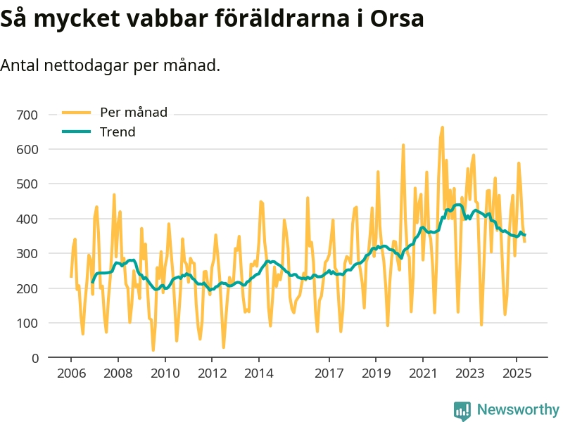 Trenden fortsätter – pappor jobbar, mammor stannar hemma när barnen är sjuka. Även i Orsa kommun tar mammor betydligt fler dagar än pappor.