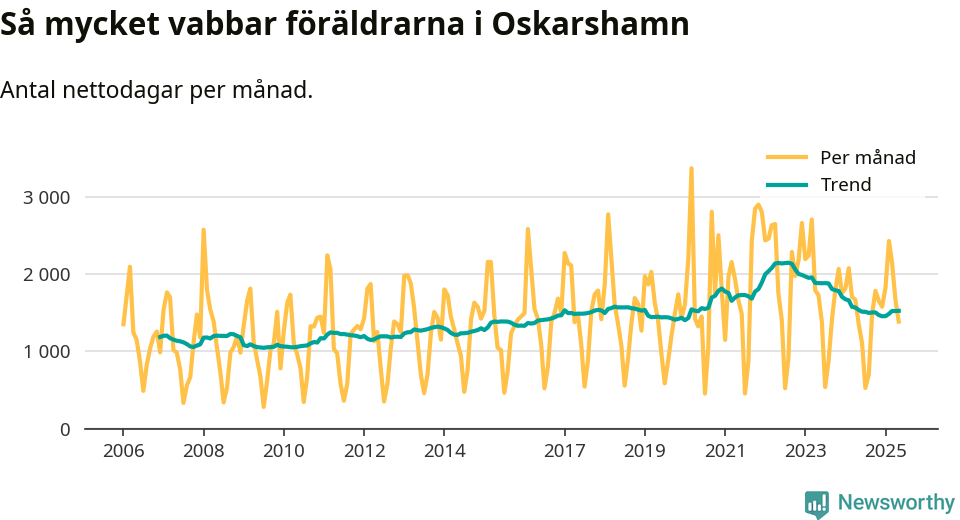 När coronapandemin drog in i mars 2020 peakade antalet vabbdagar både i Oskarshamns kommun och i riket som helhet. Under de senaste två åren har vabbuttaget börjat minska igen.