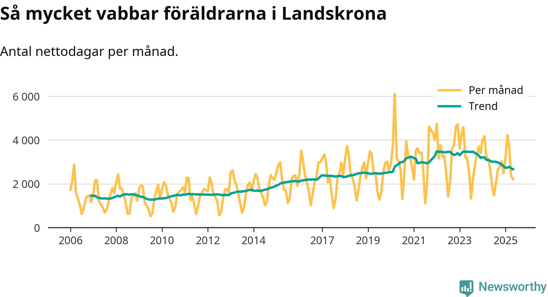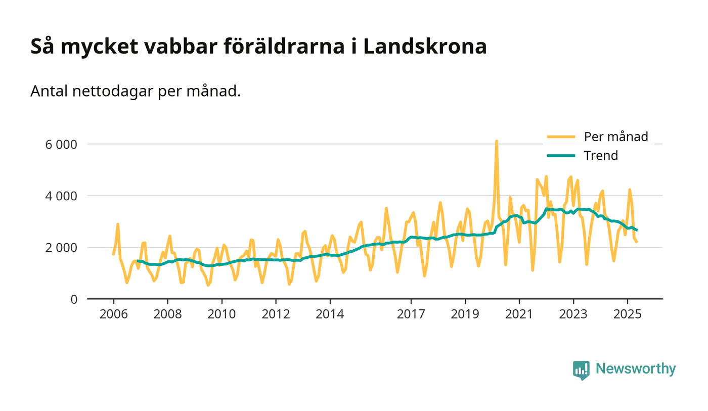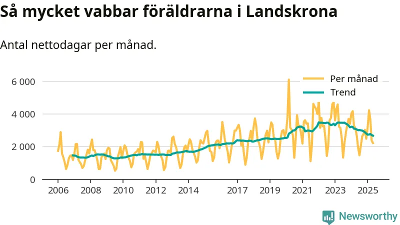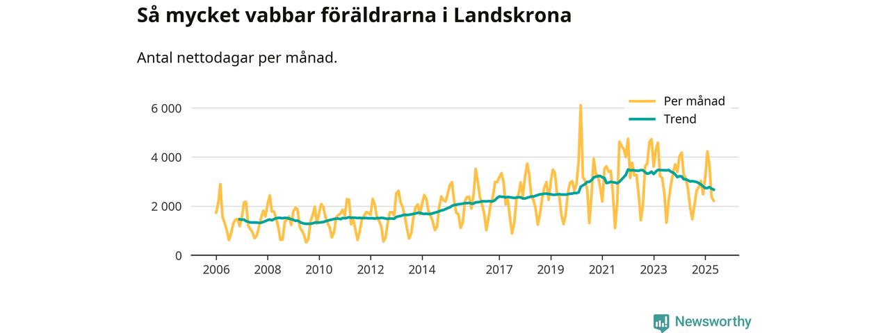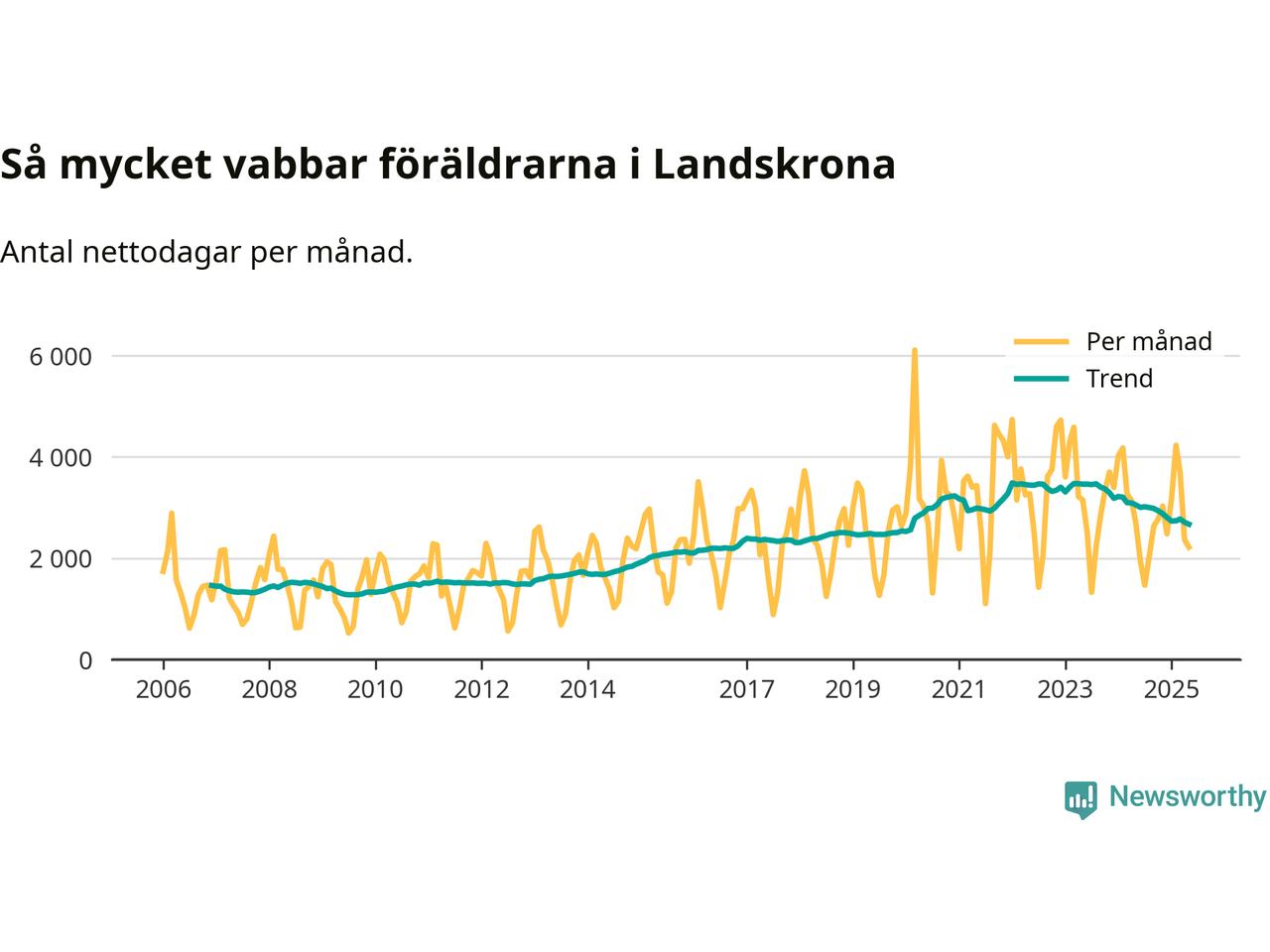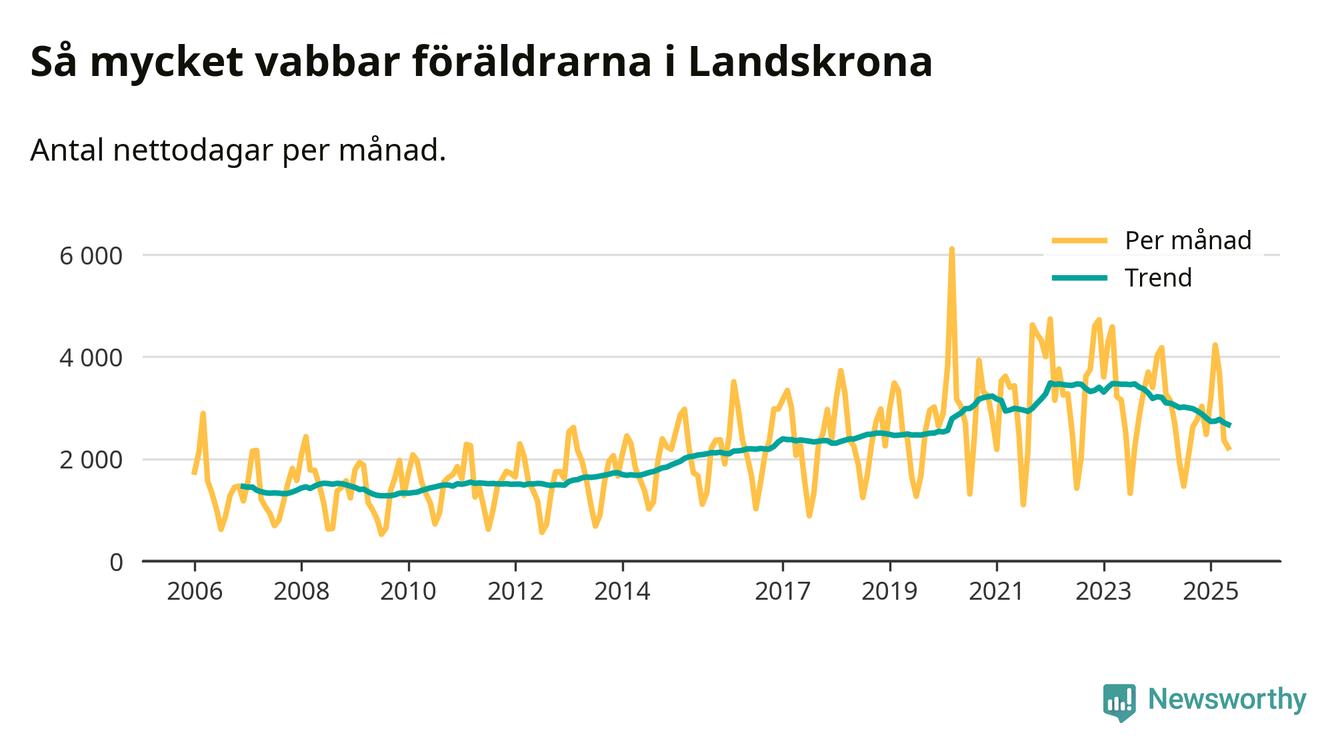 När coronapandemin drog in i mars 2020 peakade antalet vabbdagar både i Landskrona kommun och i riket som helhet. Under de senaste två åren har vabbuttaget börjat minska igen.