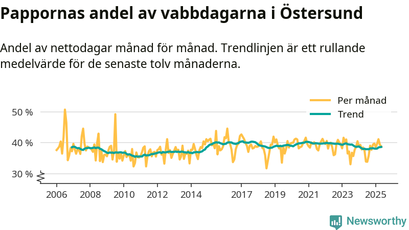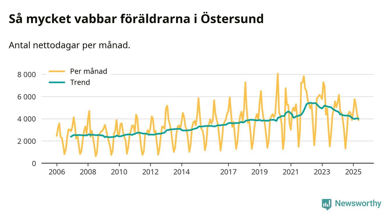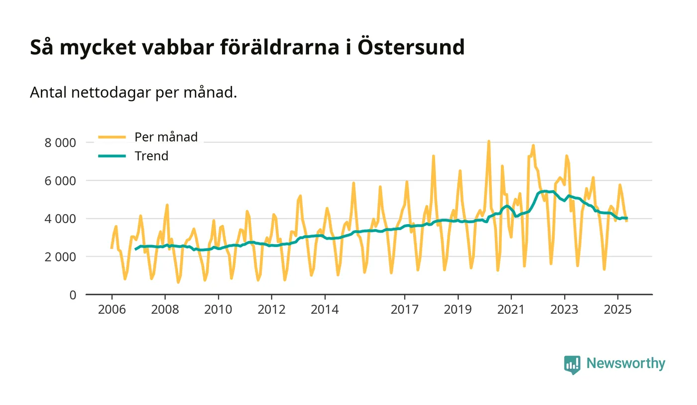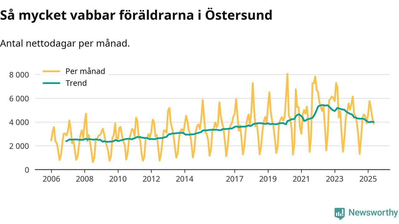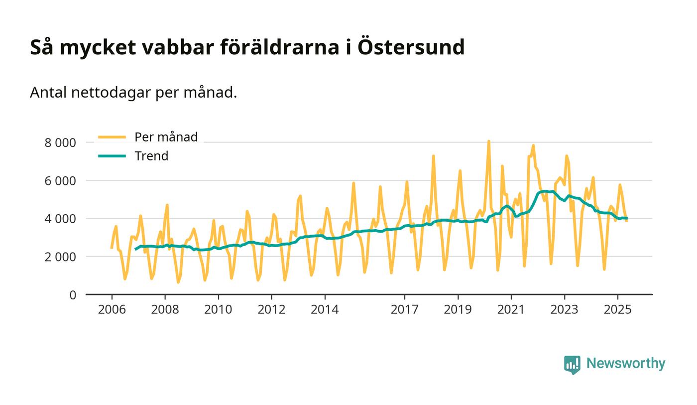En pikant detalj är den enskilda månad då svenska män tagit ut störst andel av vabbdagarna var i juli 2006 – en månad då fotbolls-VM avgjordes i Tyskland. Även i Östersund sticker juli 2006 ut som rekordmånad.