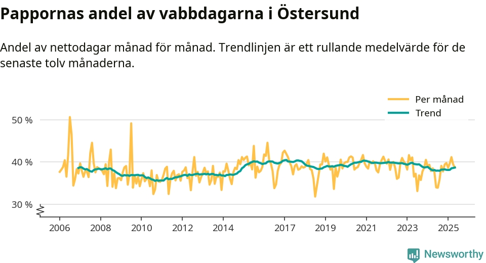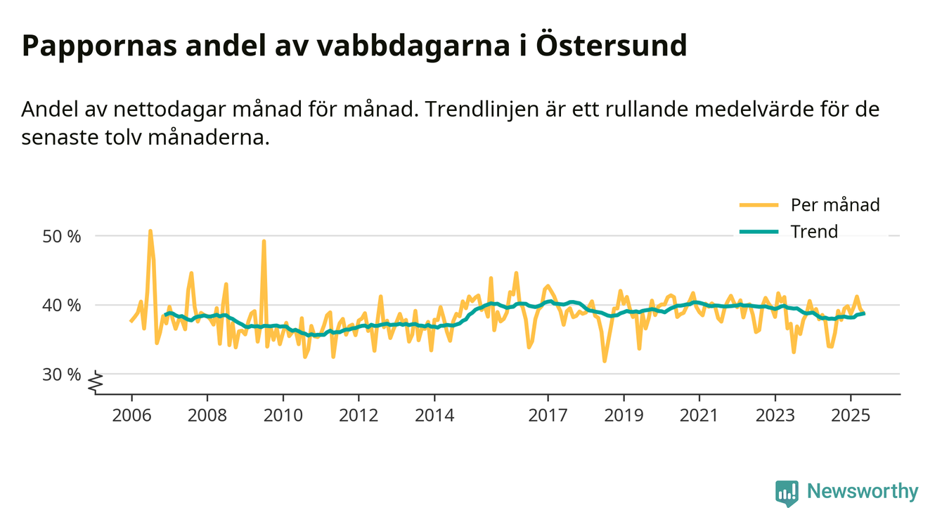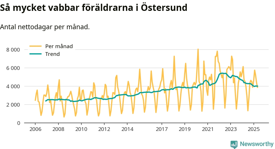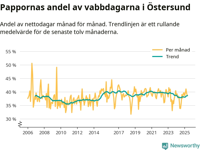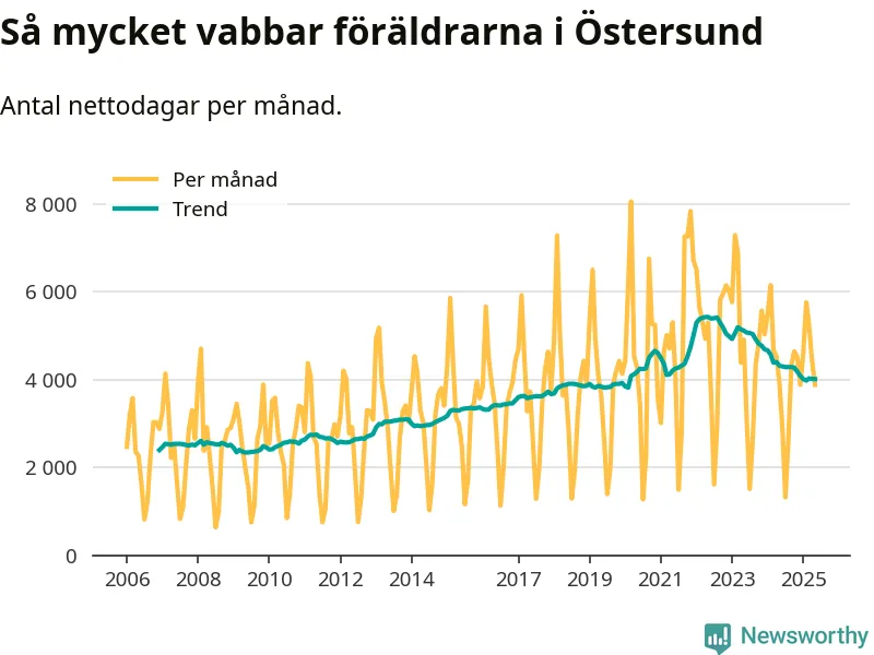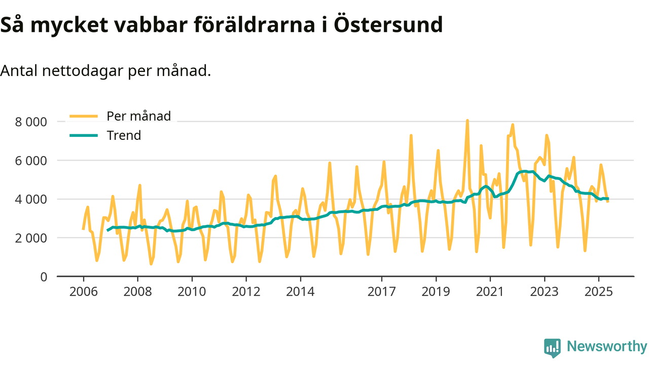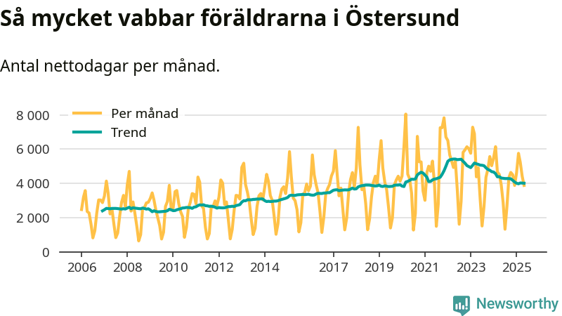 En pikant detalj är den enskilda månad då svenska män tagit ut störst andel av vabbdagarna var i juli 2006 – en månad då fotbolls-VM avgjordes i Tyskland. Även i Östersund sticker juli 2006 ut som rekordmånad.