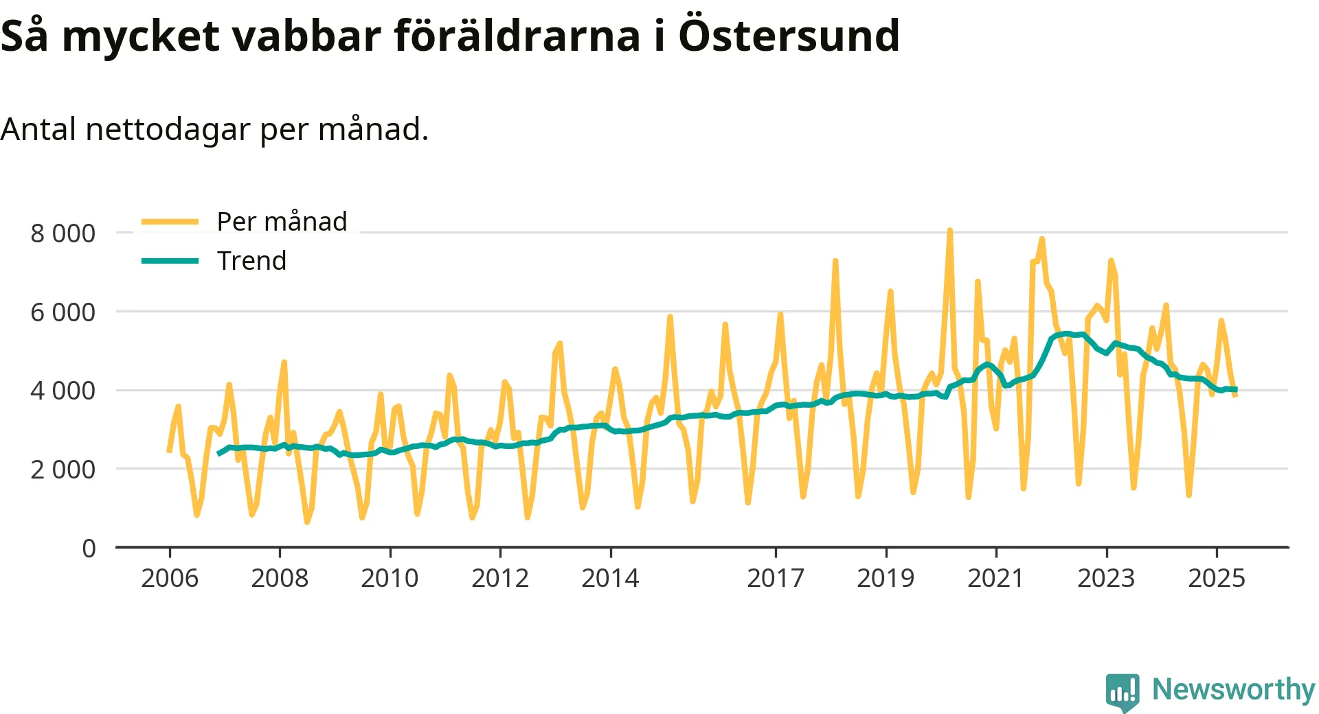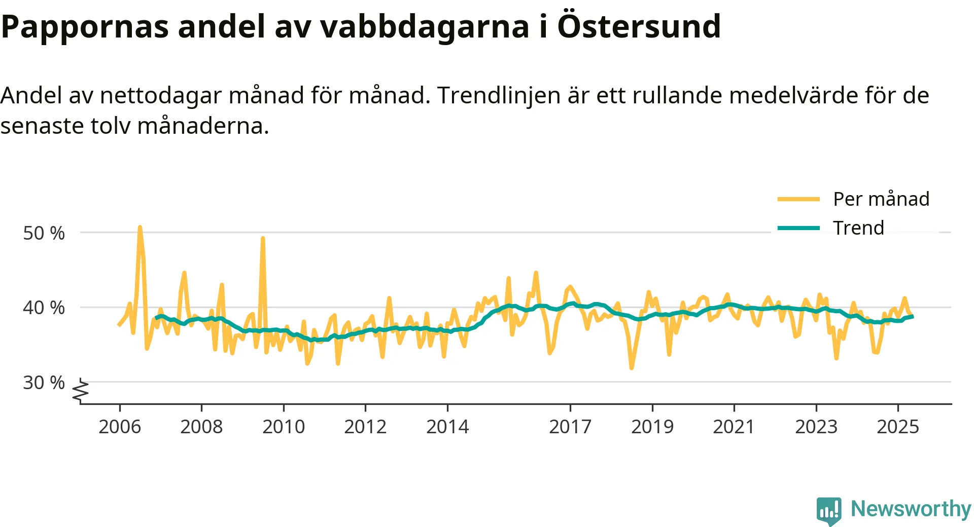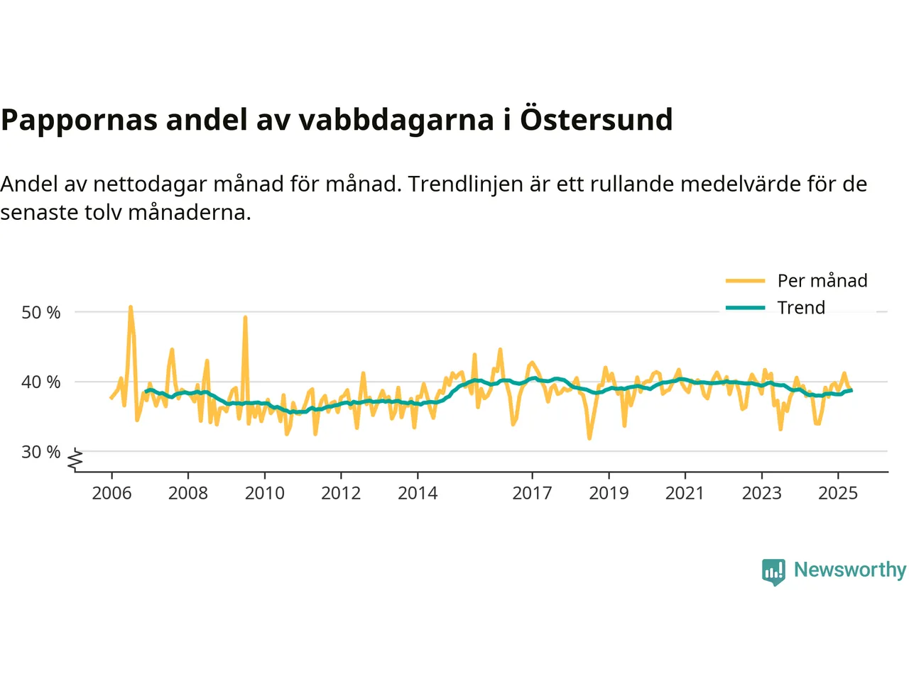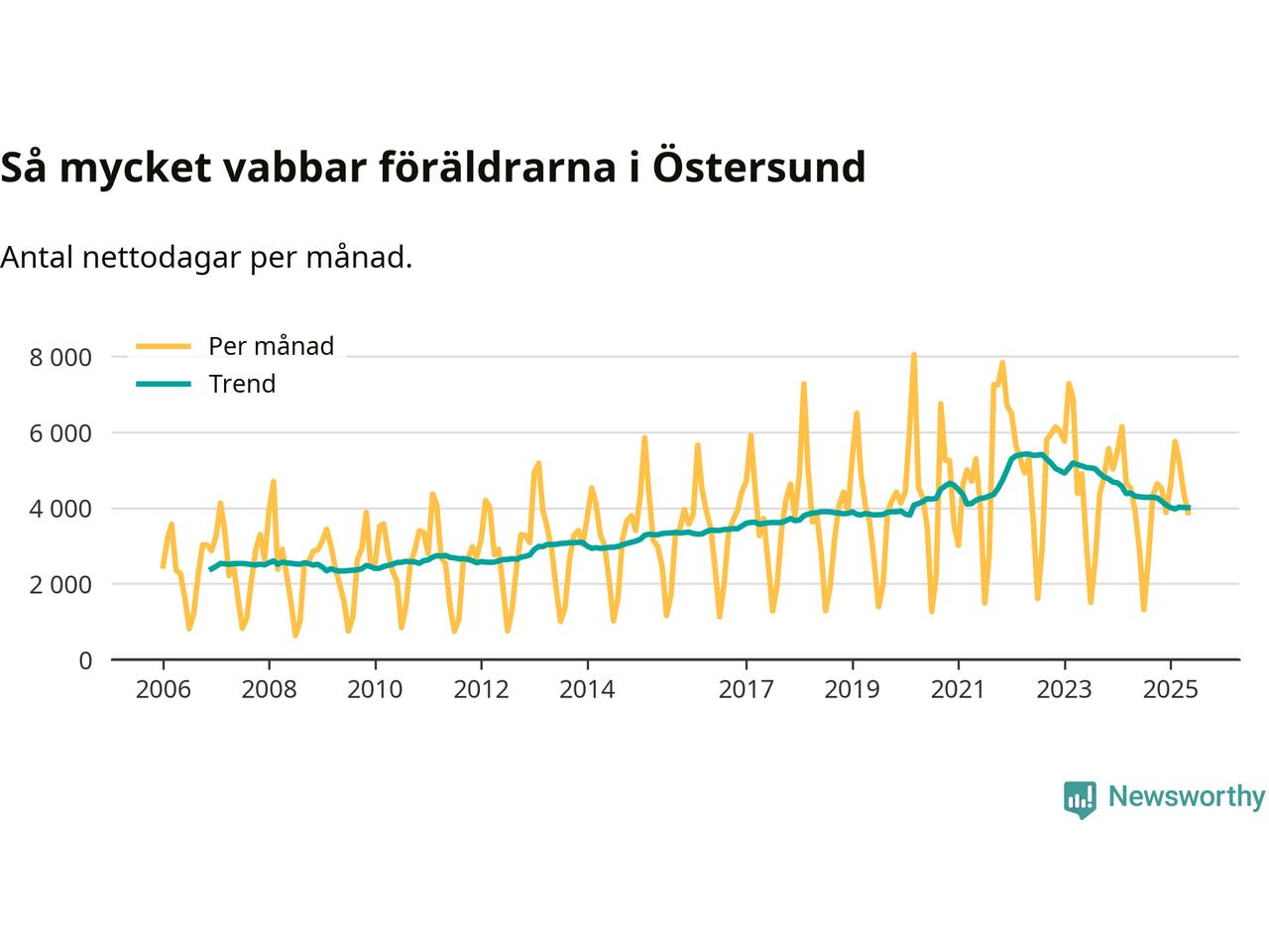 En pikant detalj är den enskilda månad då svenska män tagit ut störst andel av vabbdagarna var i juli 2006 – en månad då fotbolls-VM avgjordes i Tyskland. Även i Östersund sticker juli 2006 ut som rekordmånad.