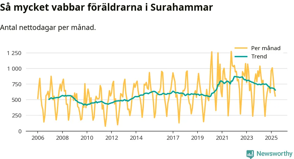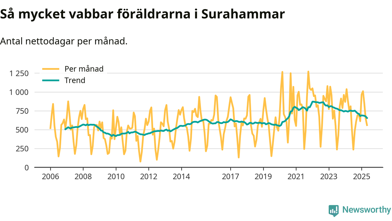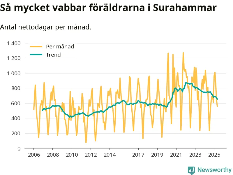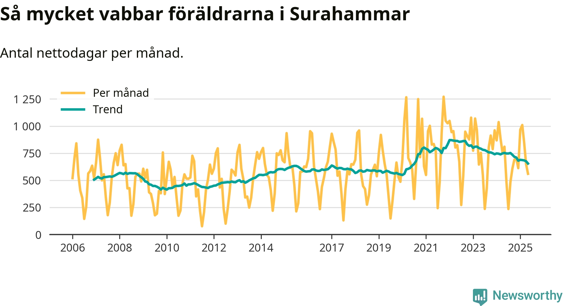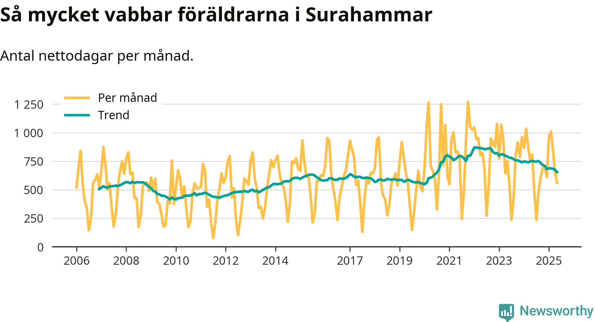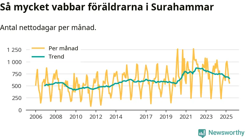 När coronapandemin drog in i mars 2020 peakade antalet vabbdagar i riket som helhet. Under de senaste två åren har vabbuttaget börjat minska igen.