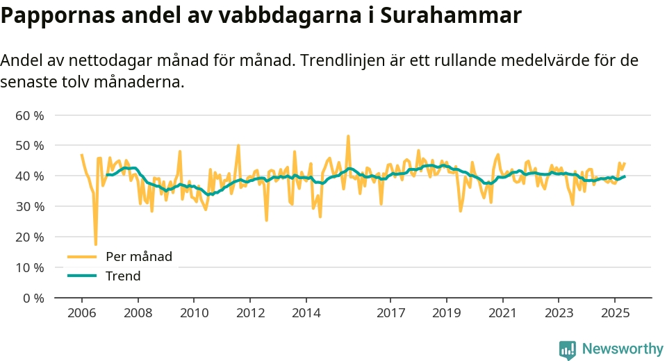Kraftigt ökat vabbande över tid – men mindre än under pandemin