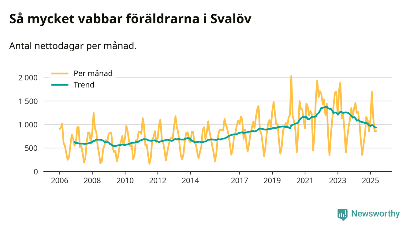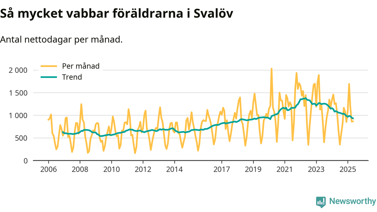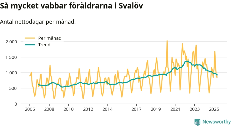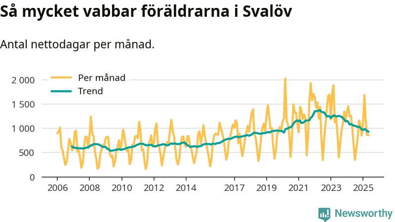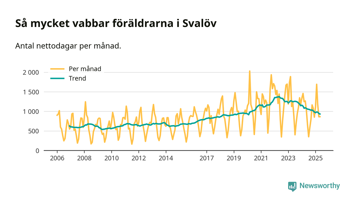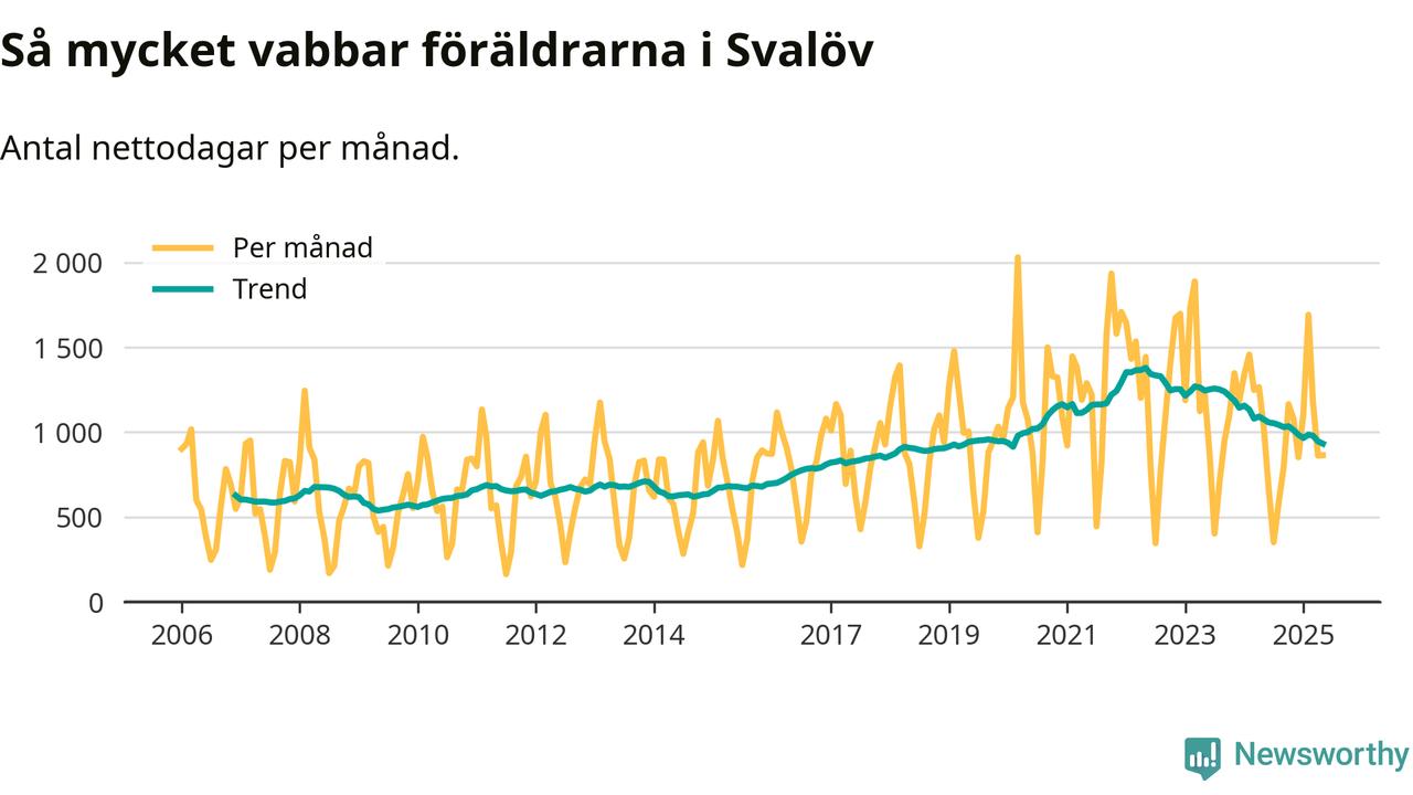 När coronapandemin drog in i mars 2020 peakade antalet vabbdagar både i Svalövs kommun och i riket som helhet. Under de senaste två åren har vabbuttaget börjat minska igen.