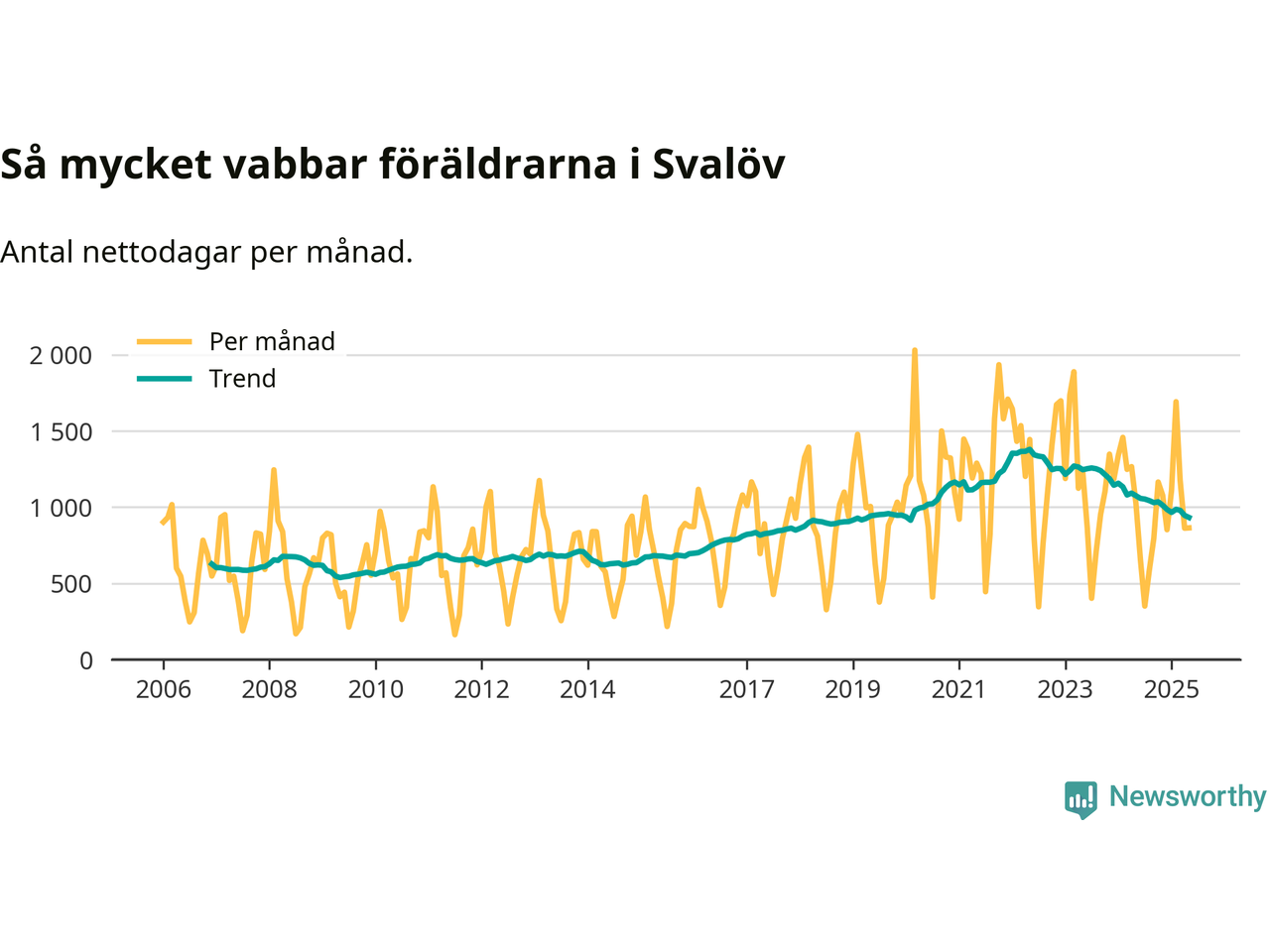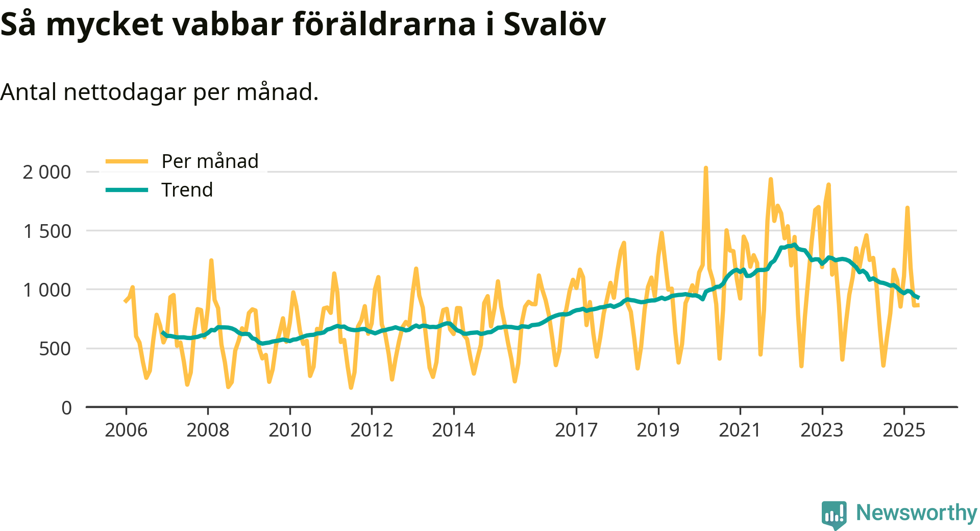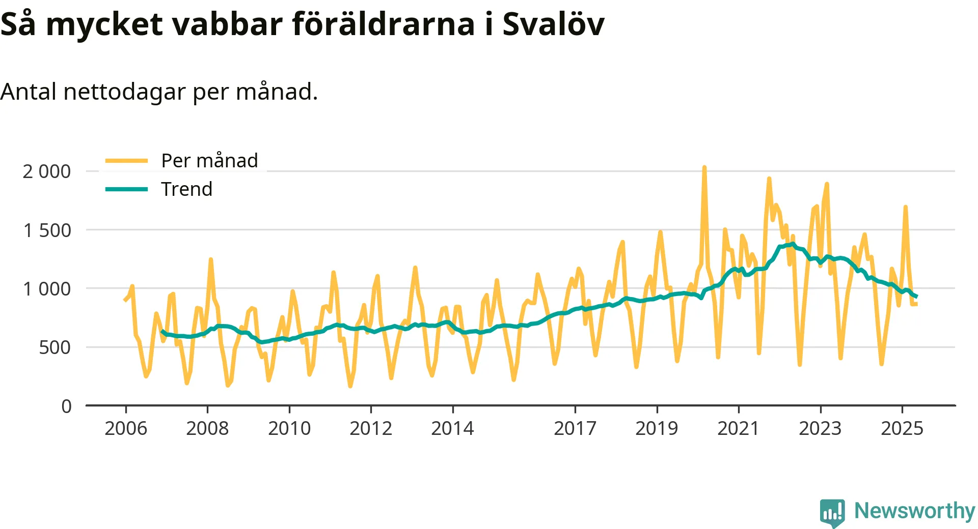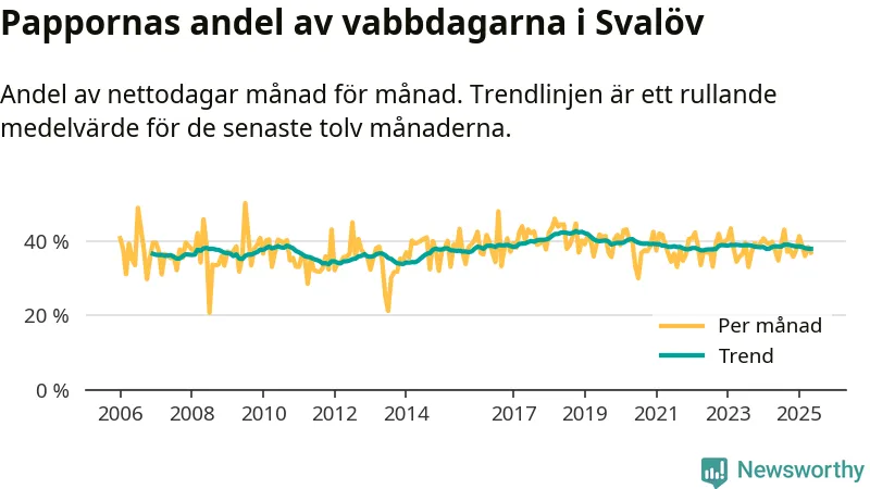 När coronapandemin drog in i mars 2020 peakade antalet vabbdagar både i Svalövs kommun och i riket som helhet. Under de senaste två åren har vabbuttaget börjat minska igen.
