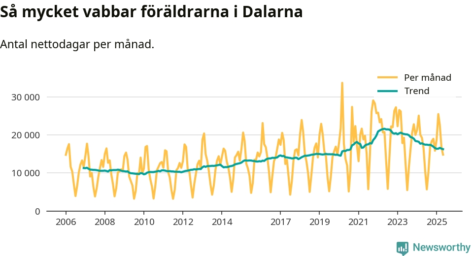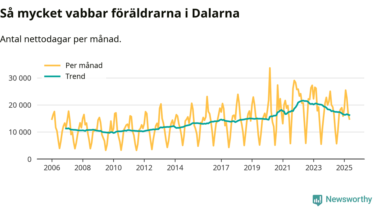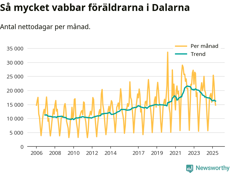 En pikant detalj är den enskilda månad då svenska män tagit ut störst andel av vabbdagarna var i juli 2006 – en månad då fotbolls-VM avgjordes i Tyskland. Även i Dalarna sticker juli 2006 ut som rekordmånad.