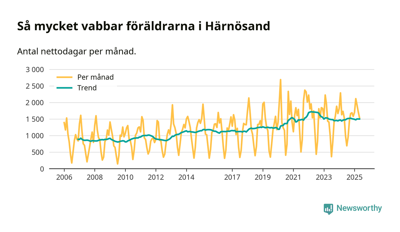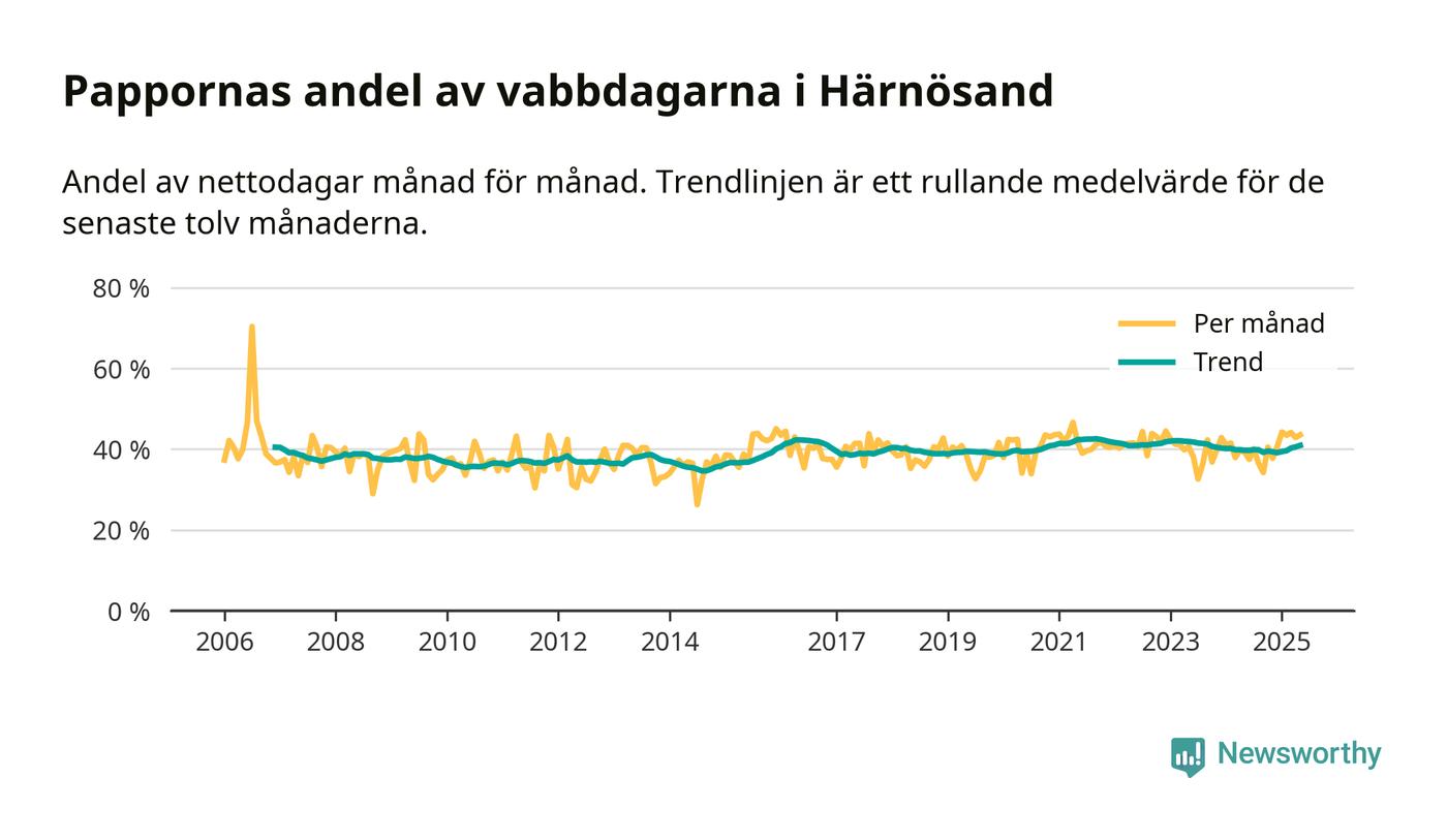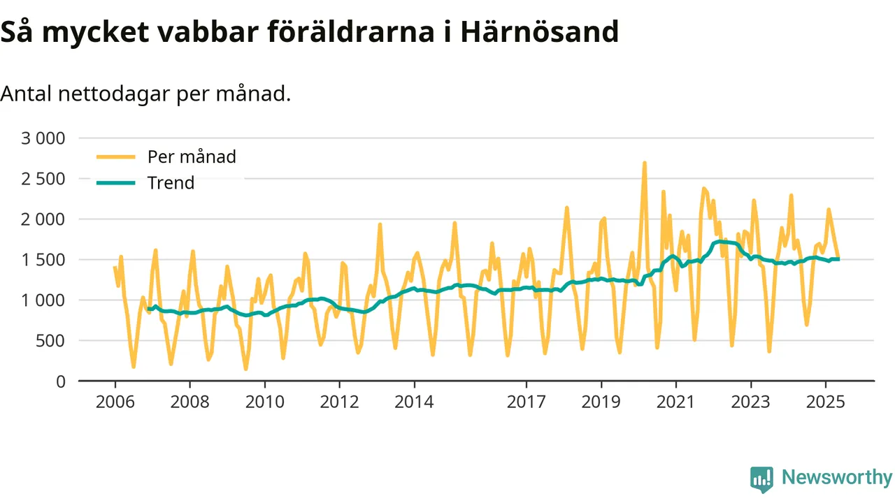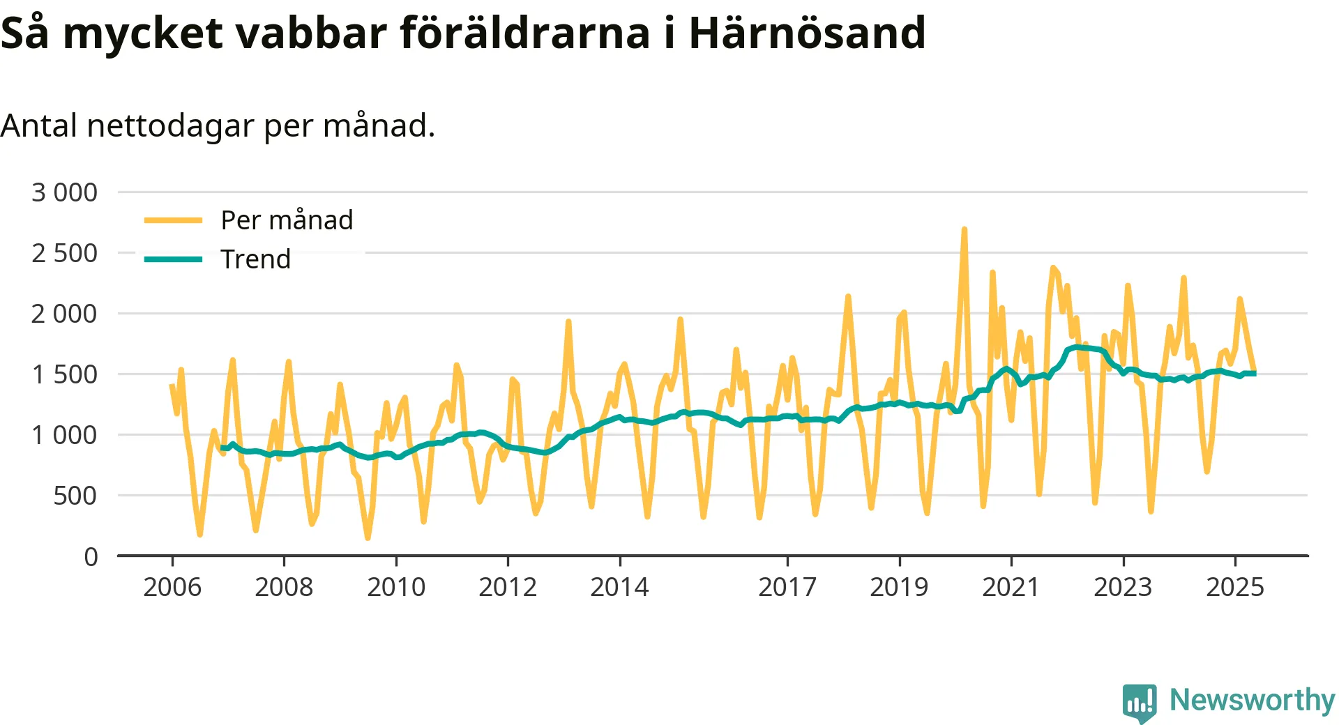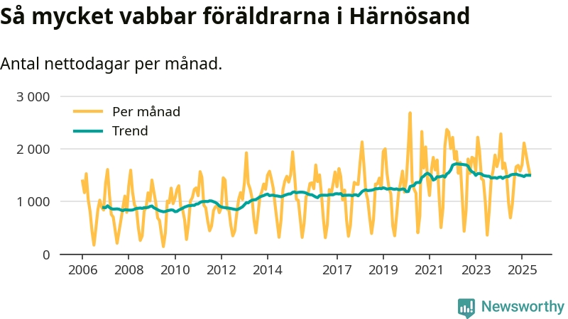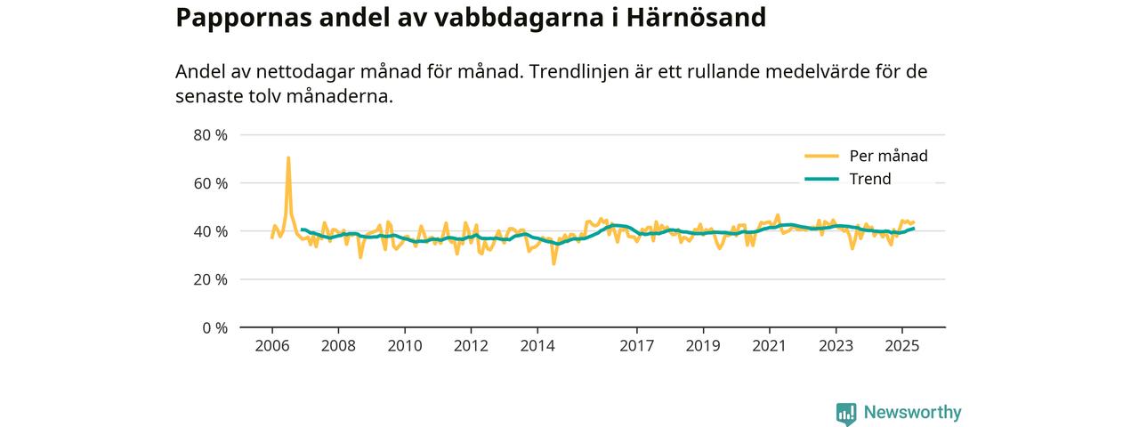 En pikant detalj är den enskilda månad då svenska män tagit ut störst andel av vabbdagarna var i juli 2006 – en månad då fotbolls-VM avgjordes i Tyskland. Även i Härnösand sticker juli 2006 ut som rekordmånad.