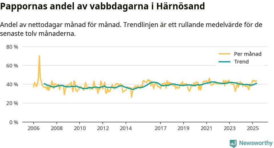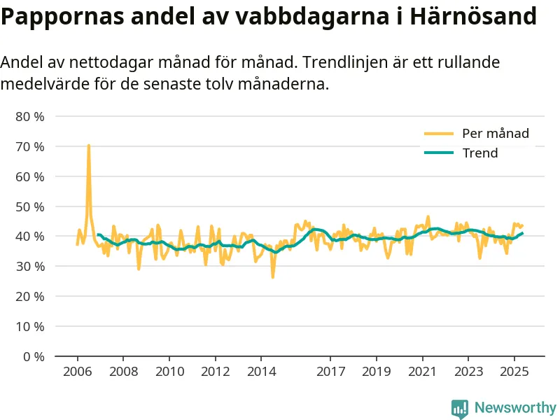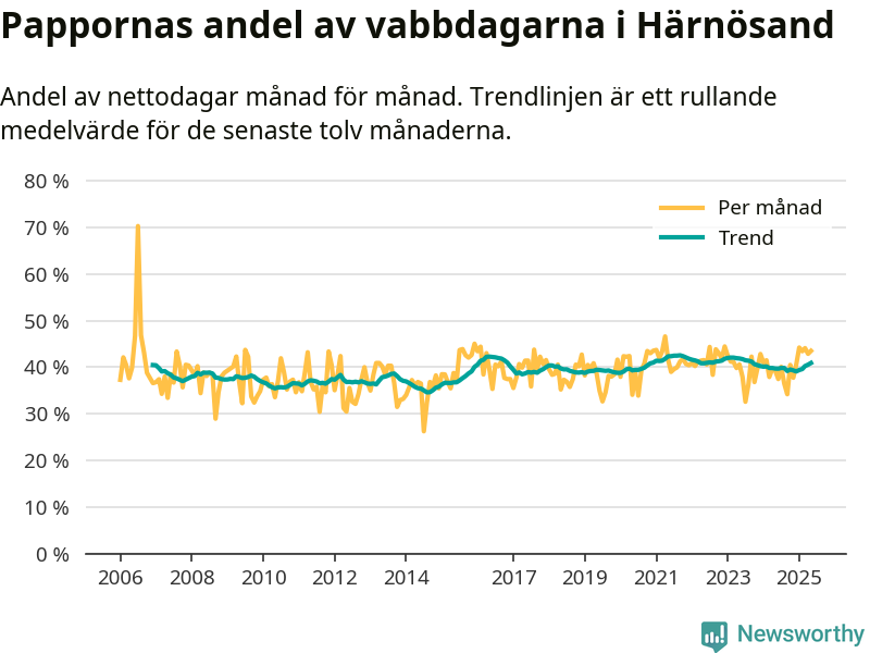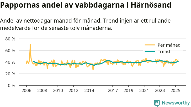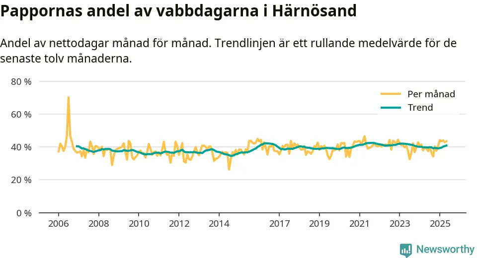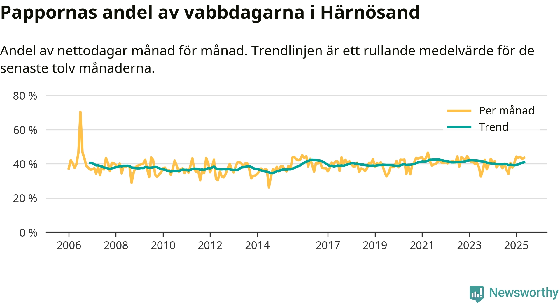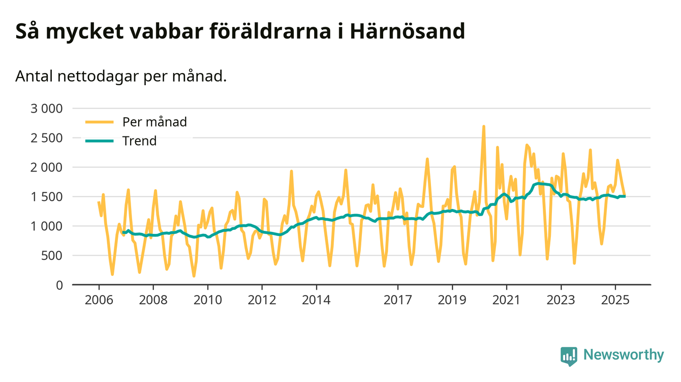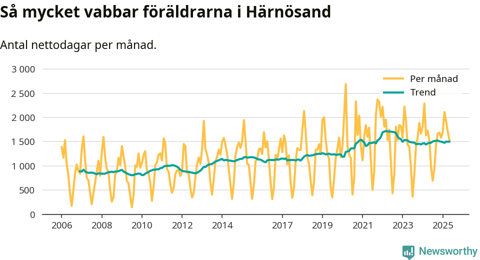 En pikant detalj är den enskilda månad då svenska män tagit ut störst andel av vabbdagarna var i juli 2006 – en månad då fotbolls-VM avgjordes i Tyskland. Även i Härnösand sticker juli 2006 ut som rekordmånad.