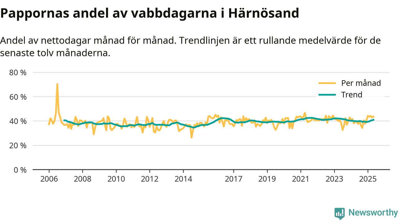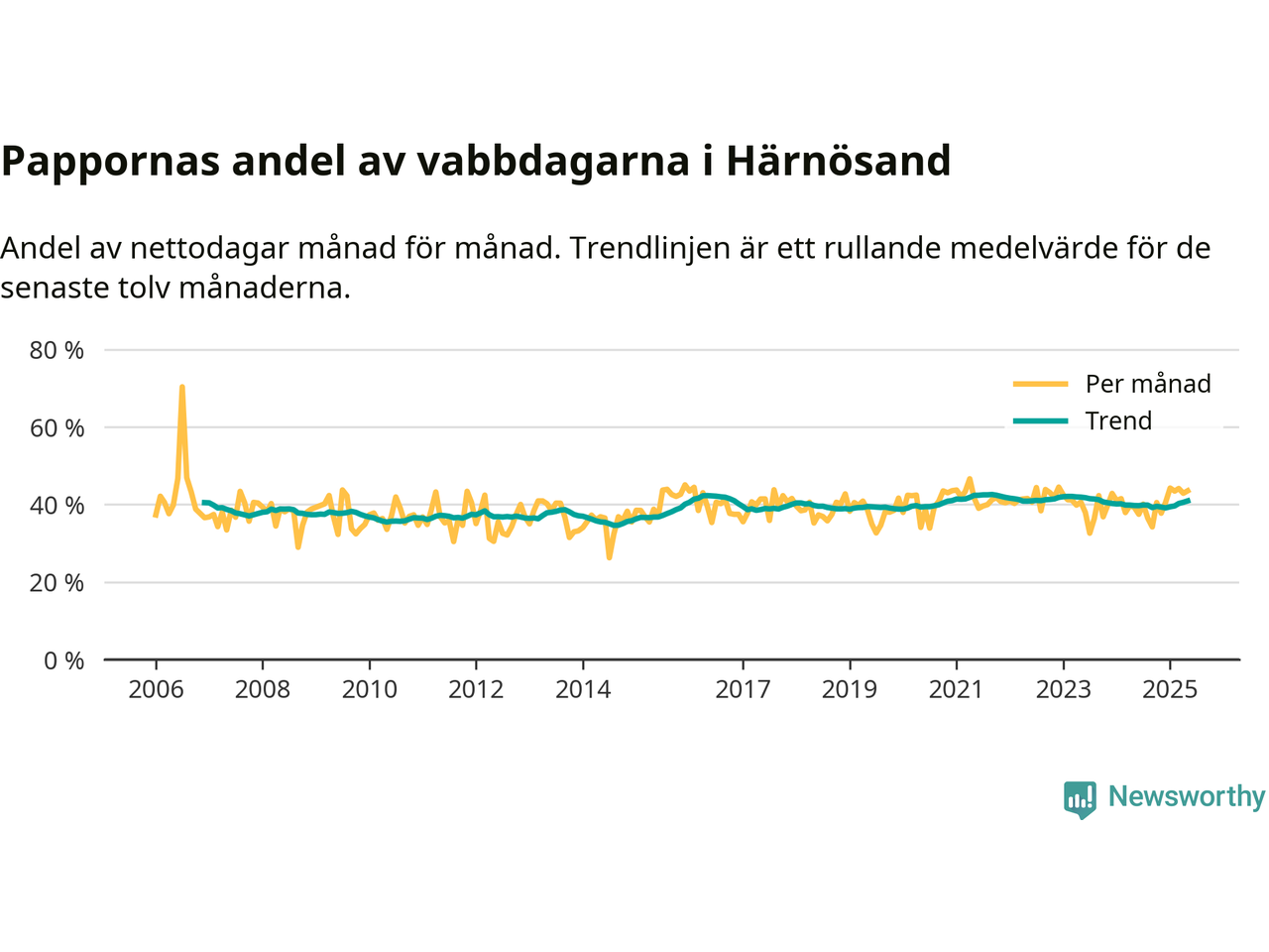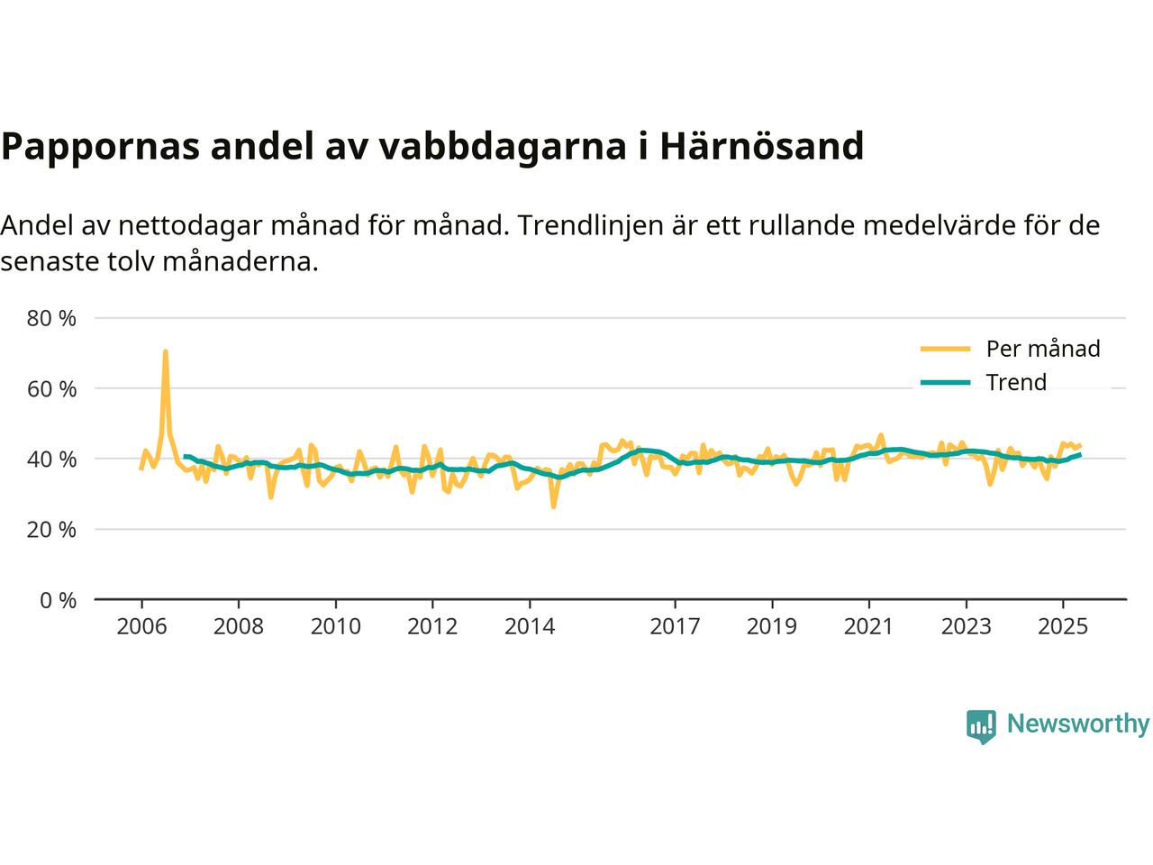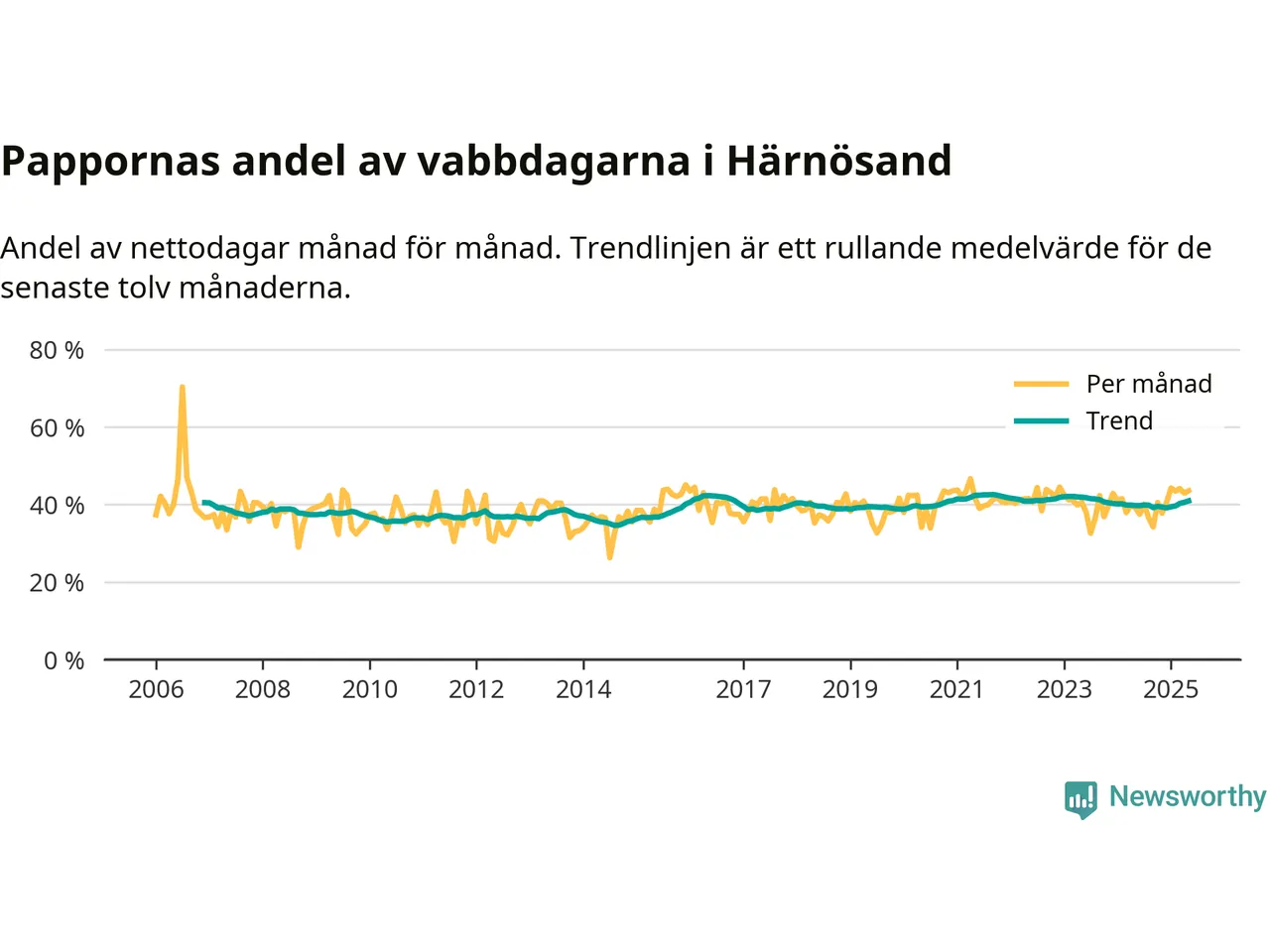 Pappor i Härnösand vabbar mer än rikssnittet (38 procent) och även mer än andra män i Västernorrlands län (38 procent). Andelen är högst i länet. Skillnaderna inom landet är stora. Dorotea är den enda kommun i landet som når 50–50-fördelning.