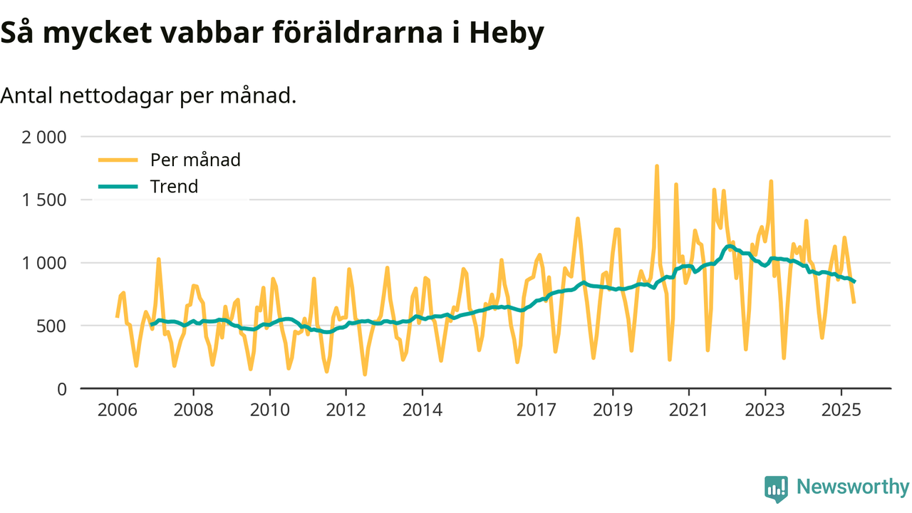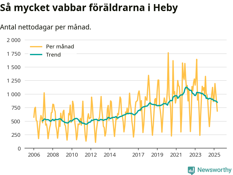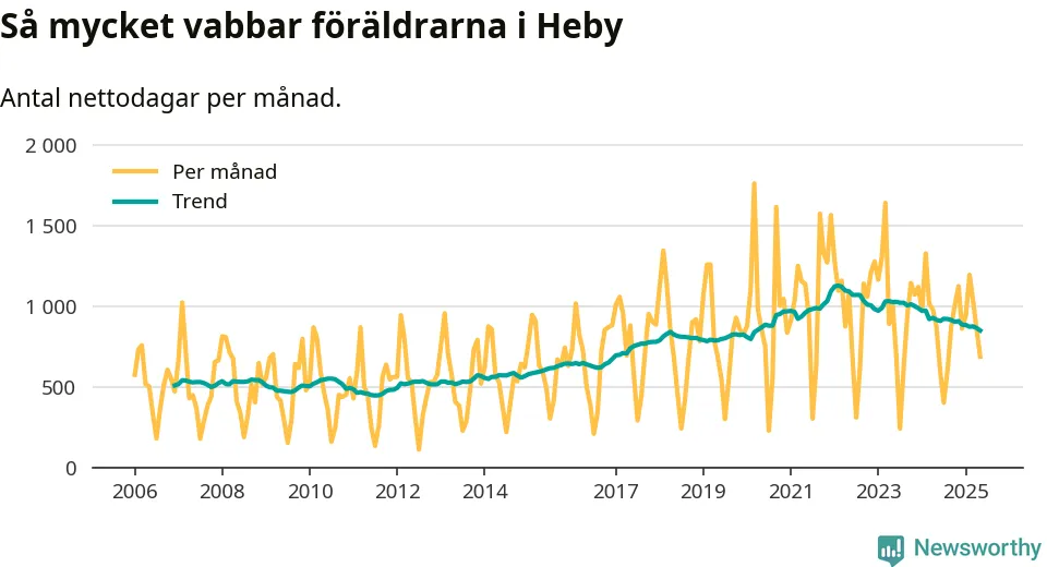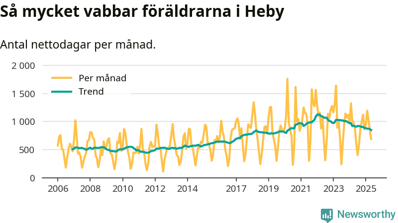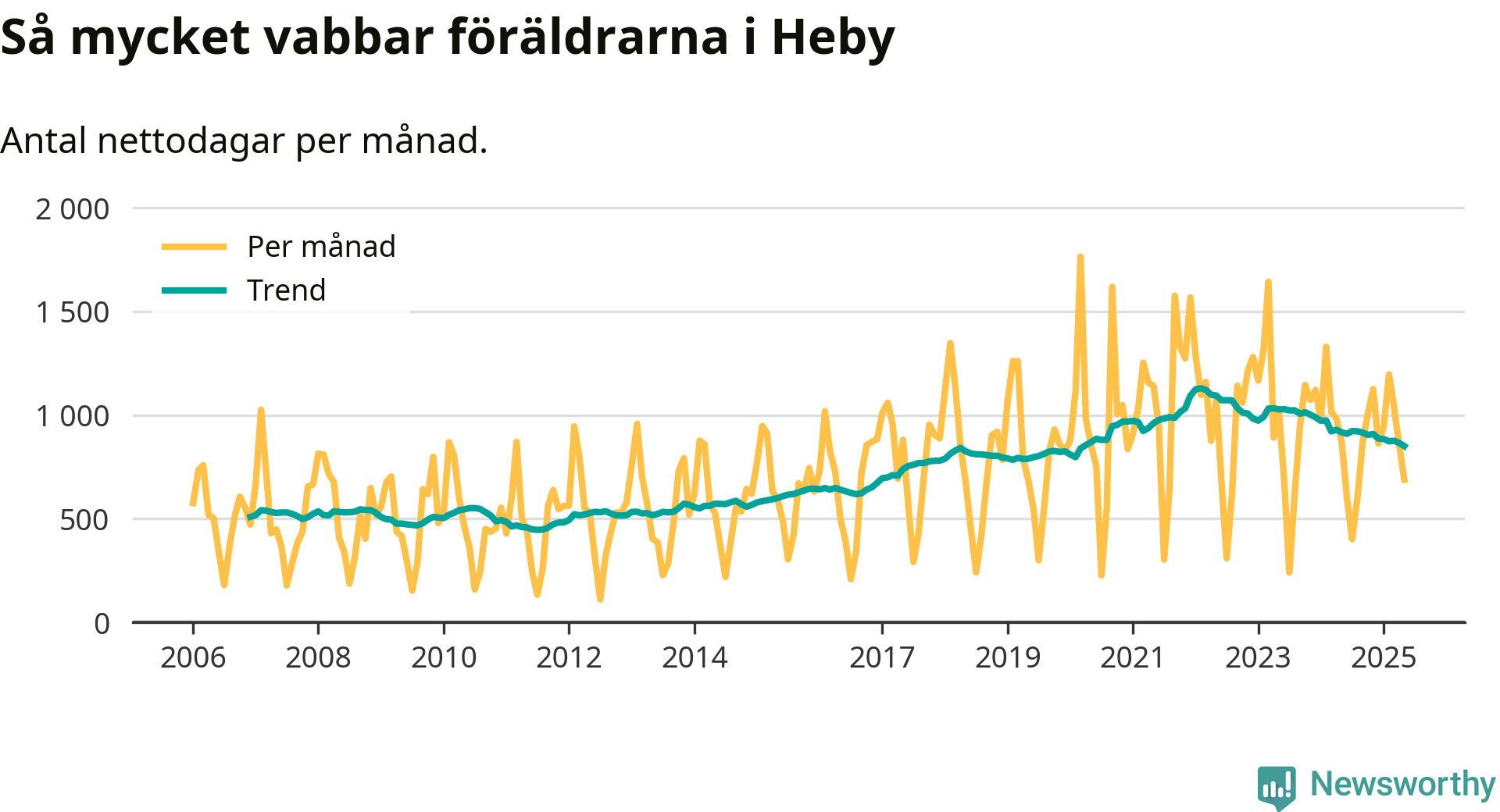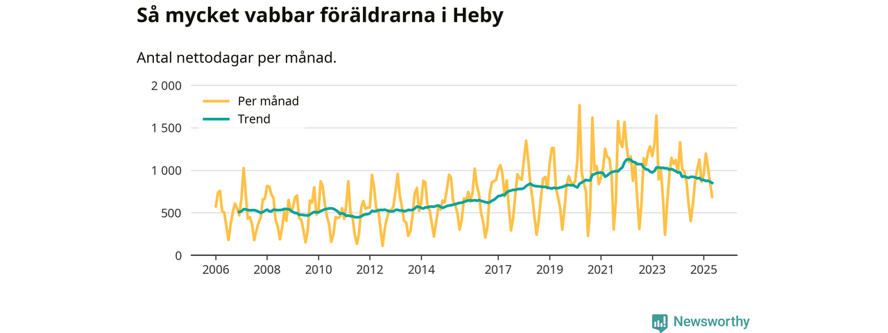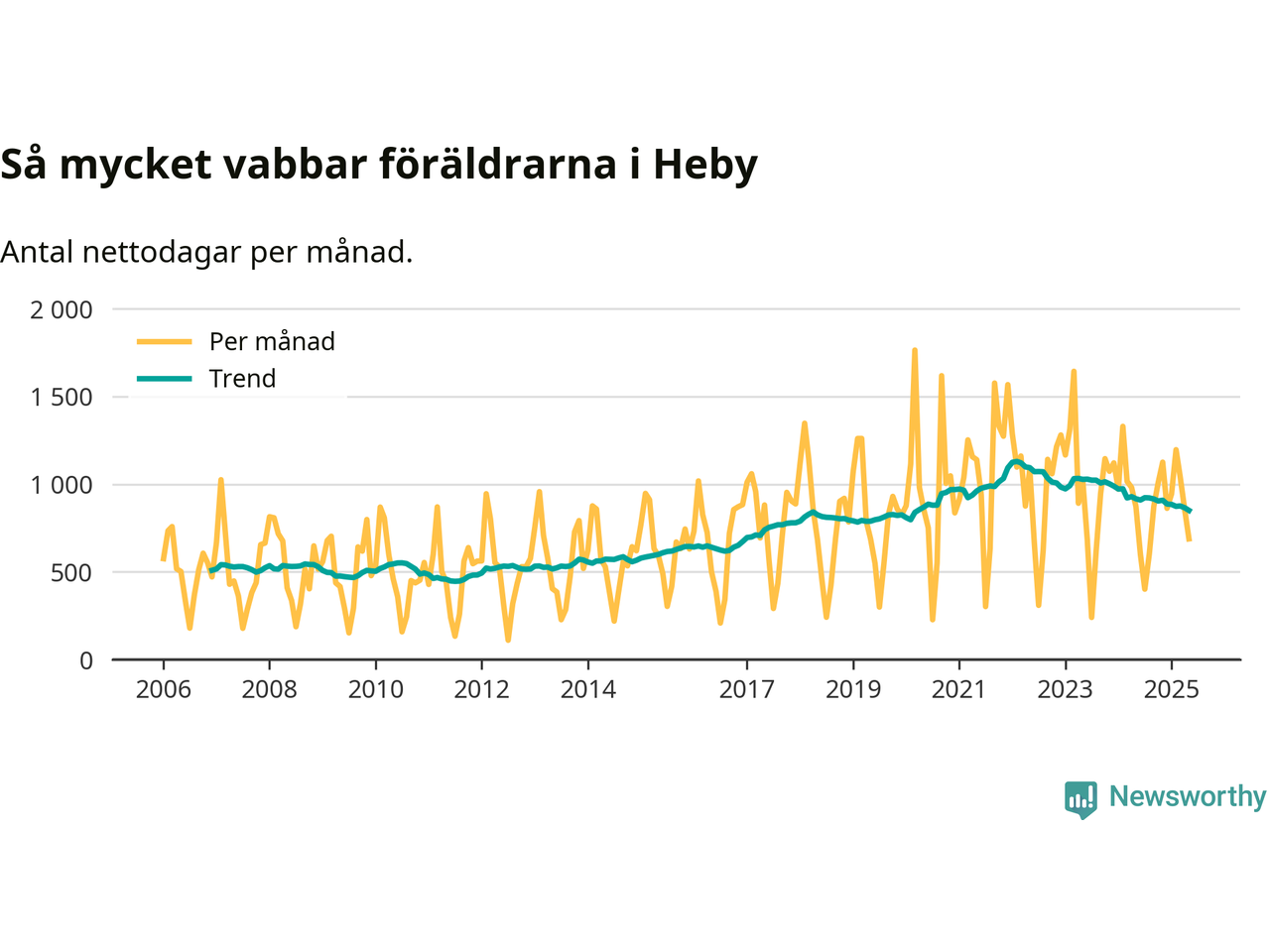 När coronapandemin drog in i mars 2020 peakade antalet vabbdagar både i Heby kommun och i riket som helhet. Under de senaste två åren har vabbuttaget börjat minska igen.