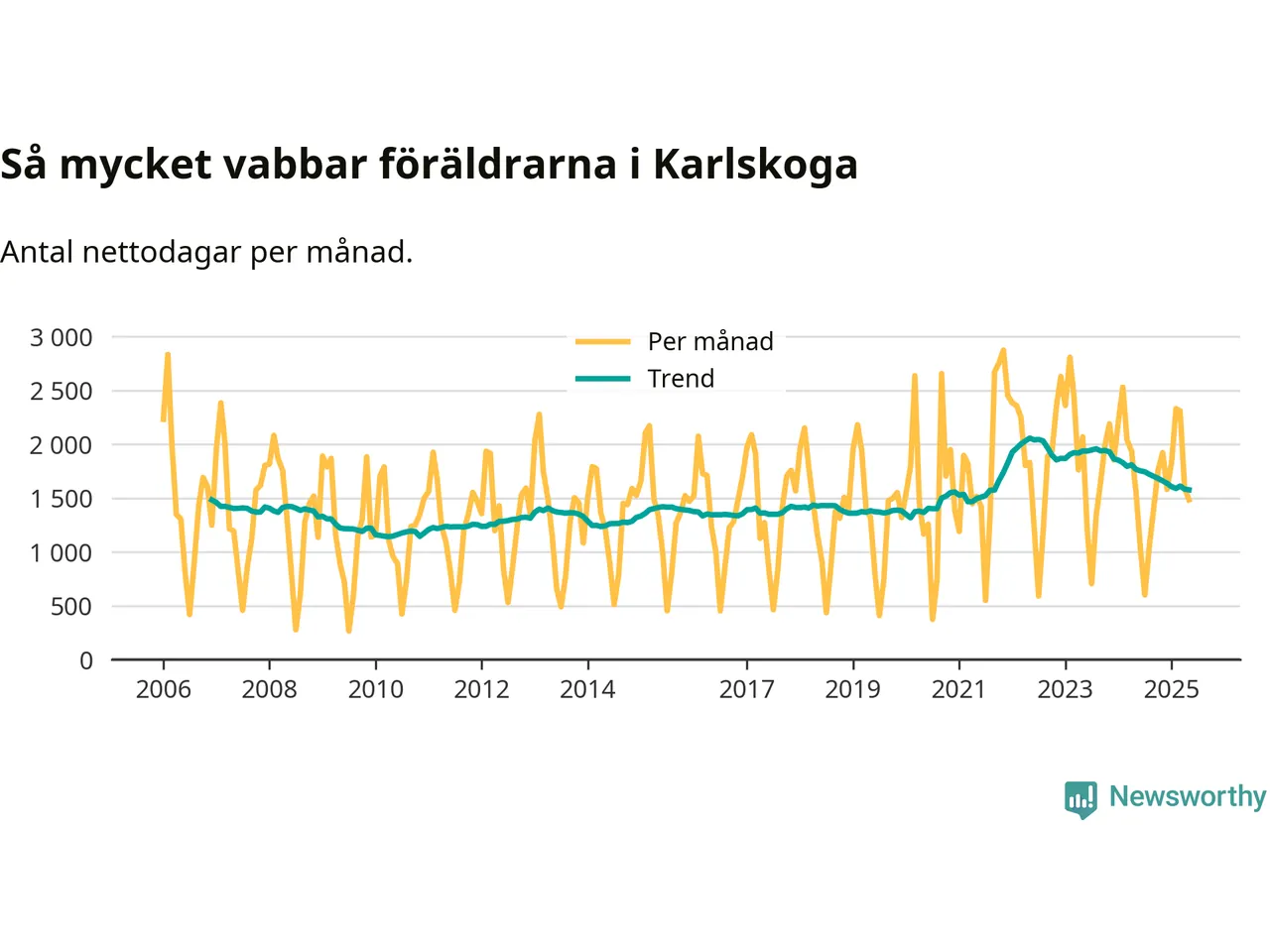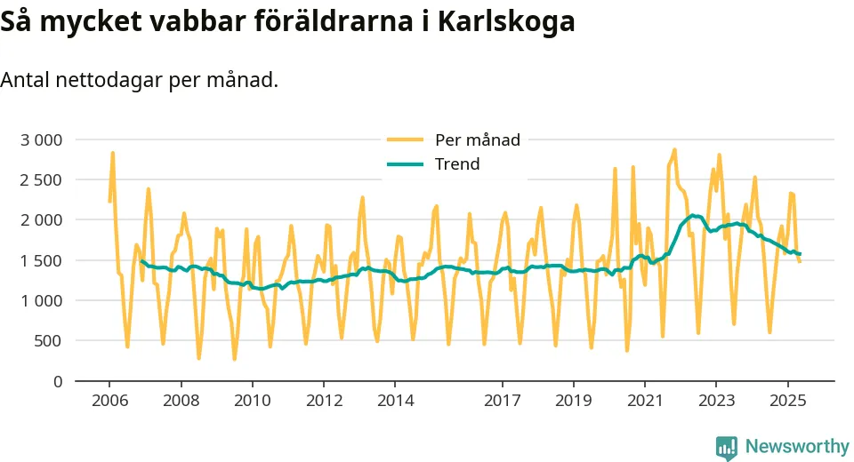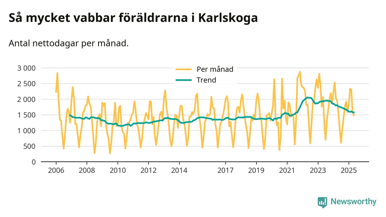 När coronapandemin drog in i mars 2020 peakade antalet vabbdagar i riket som helhet. Under de senaste två åren har vabbuttaget börjat minska igen.