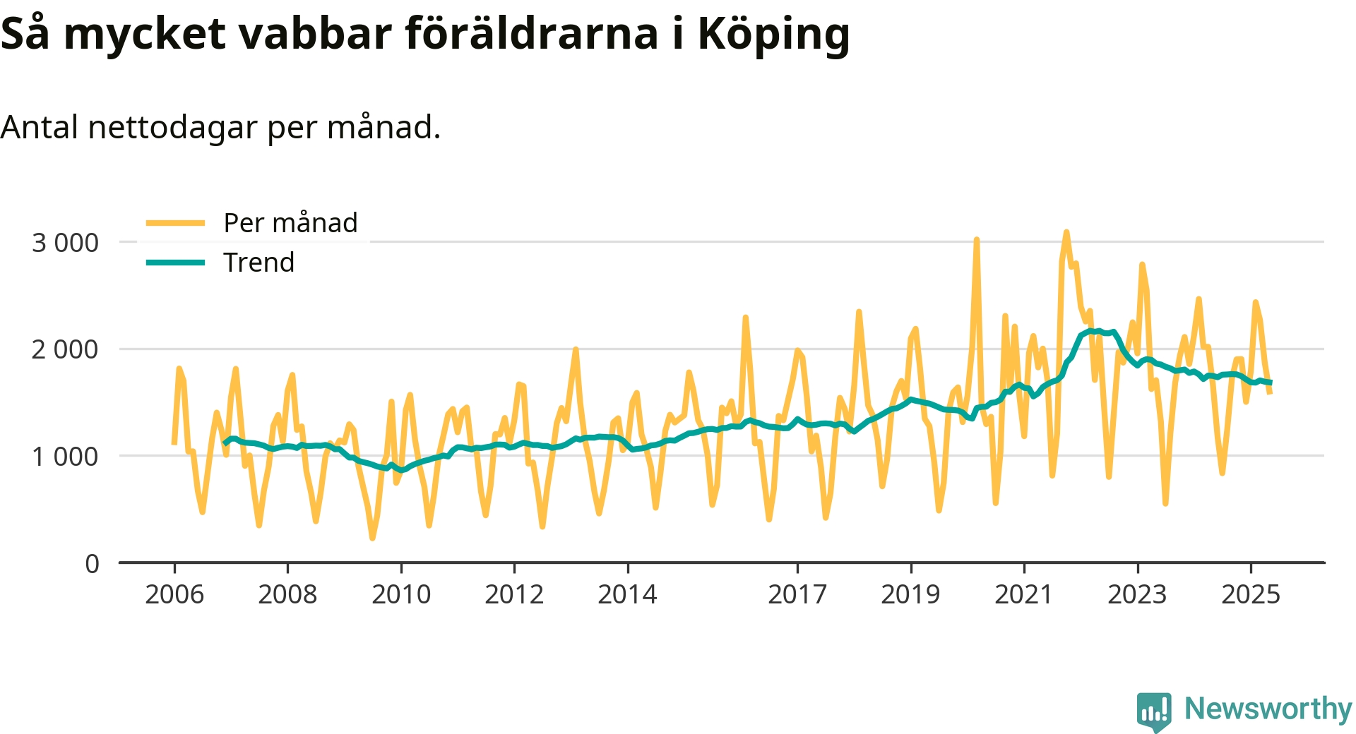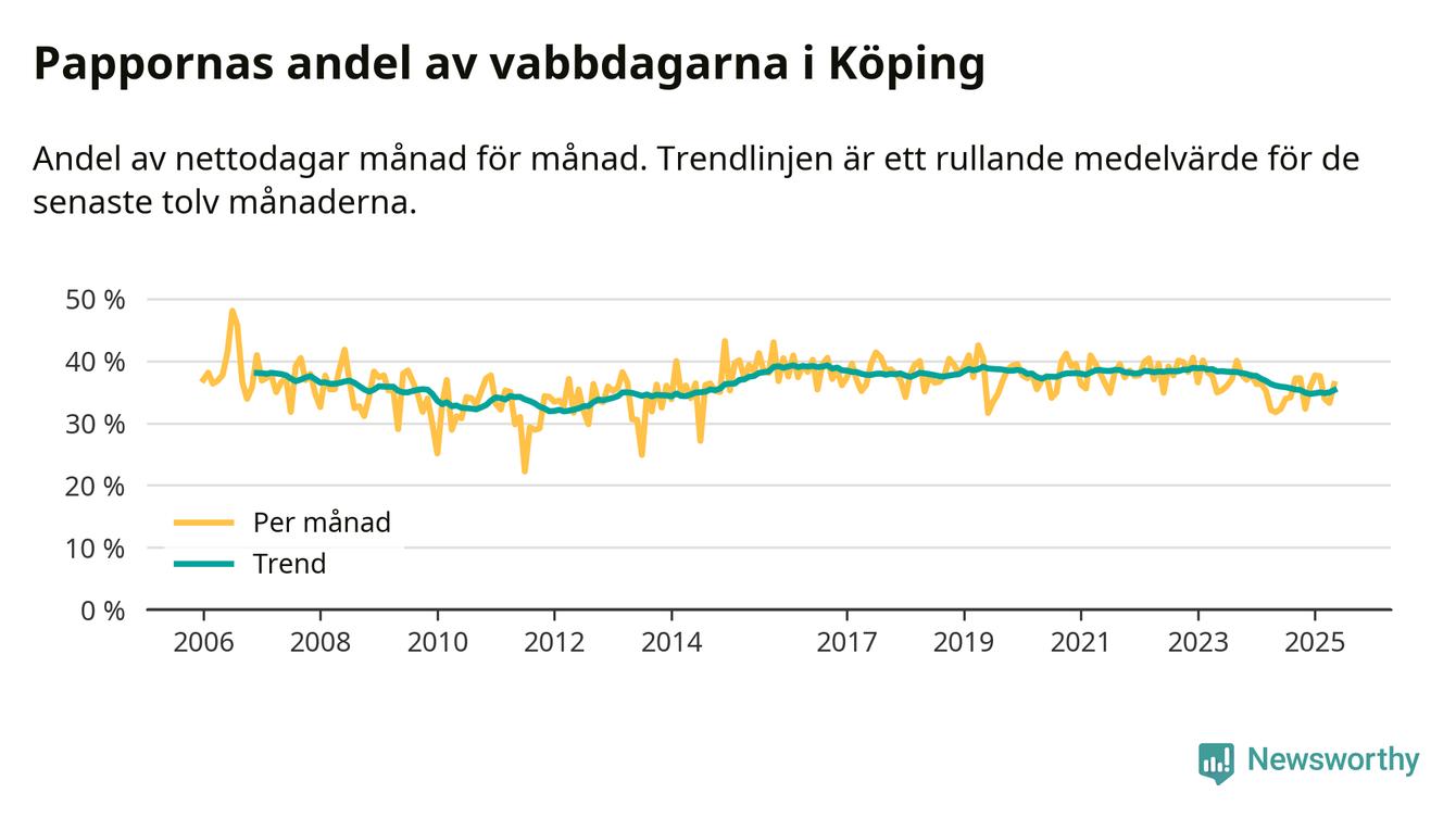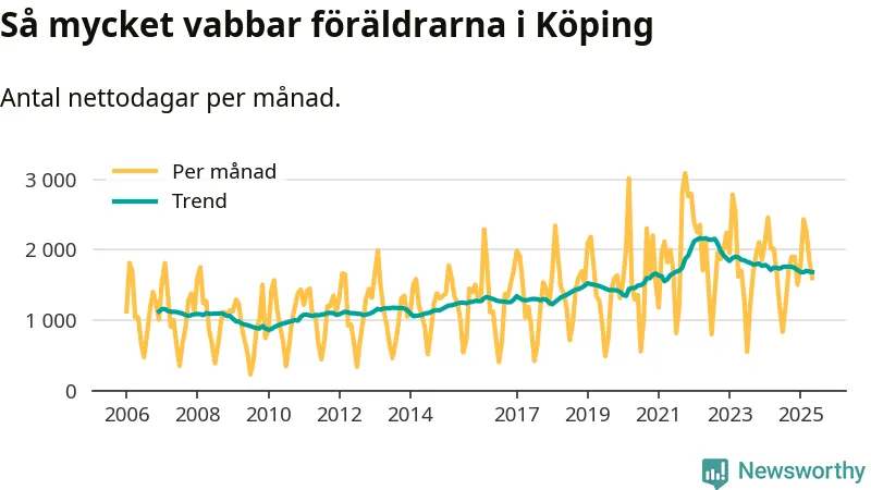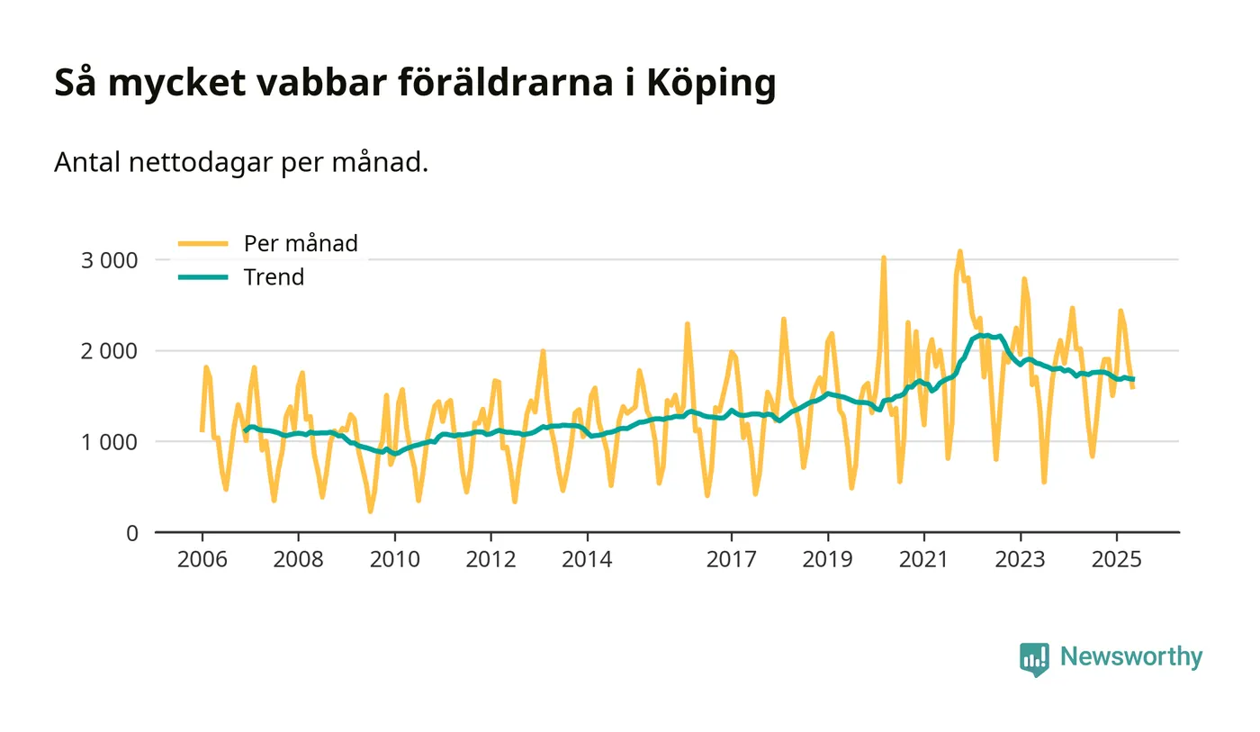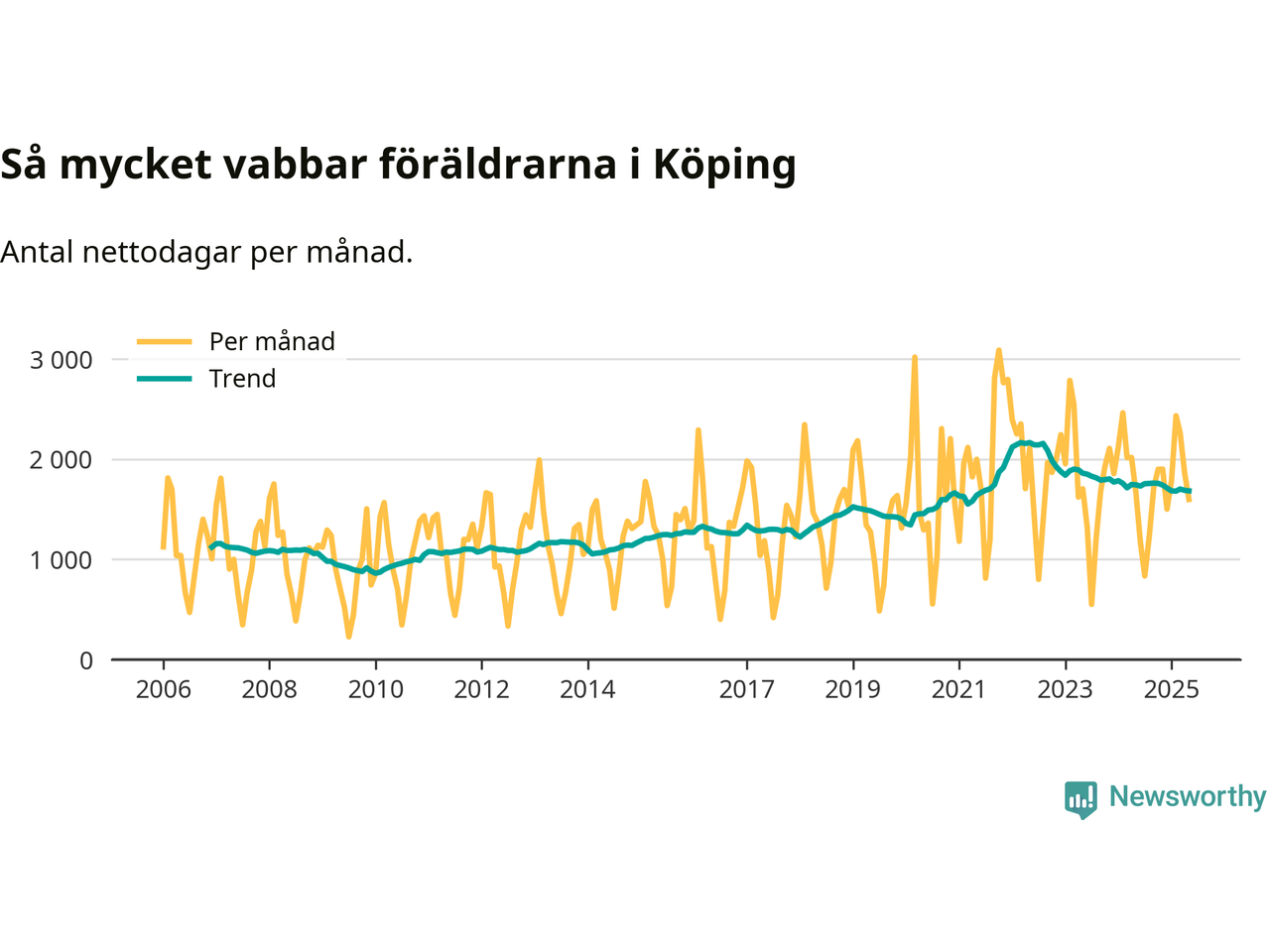 När coronapandemin drog in i mars 2020 peakade antalet vabbdagar i riket som helhet. Under de senaste två åren har vabbuttaget börjat minska igen.