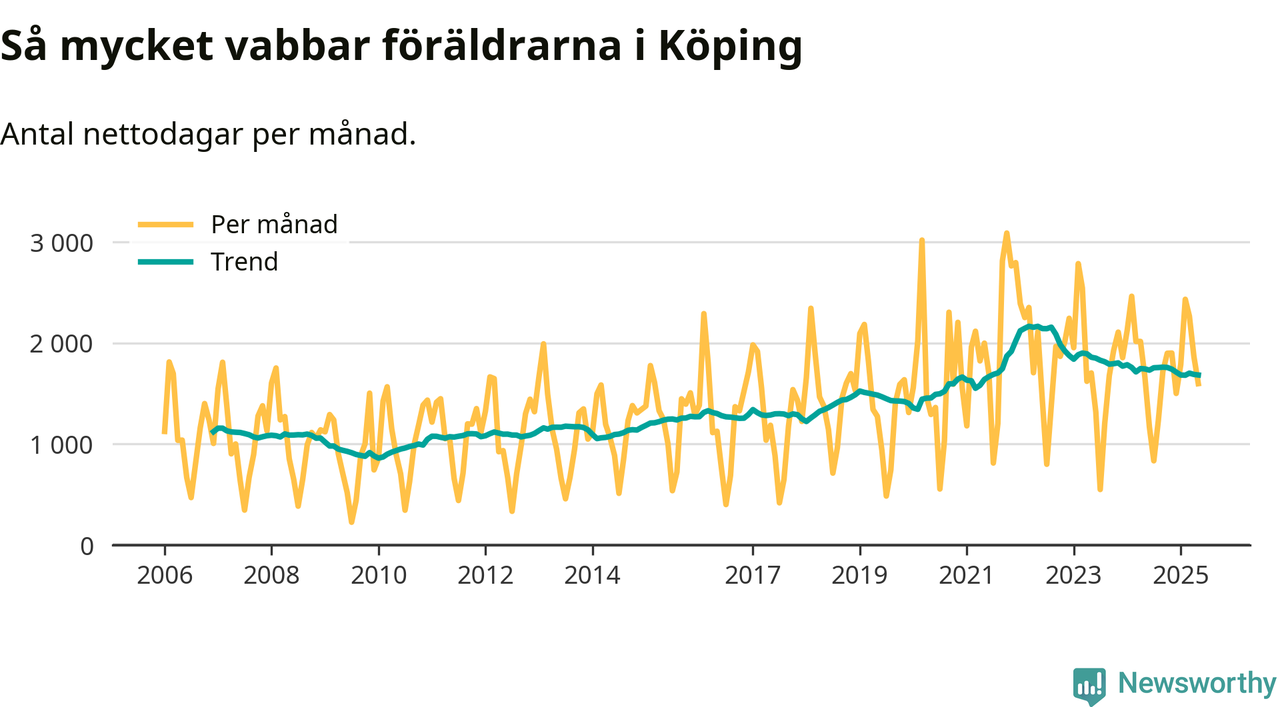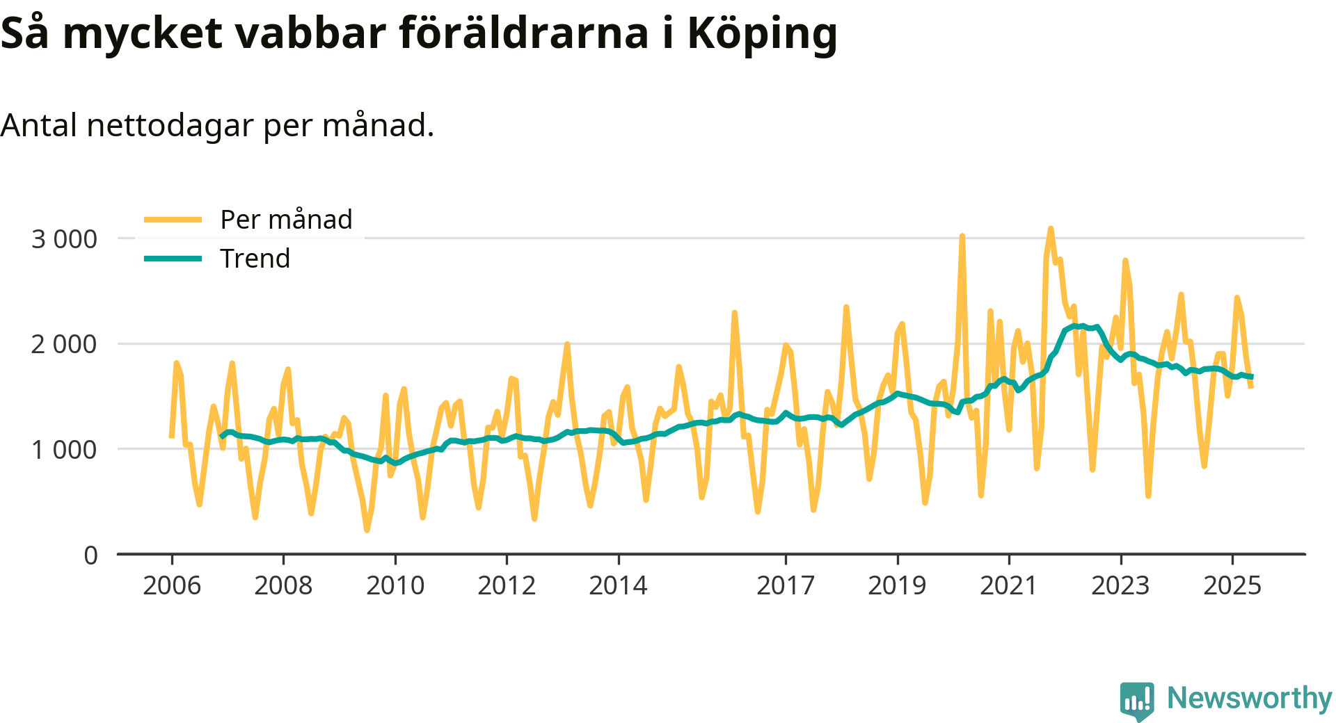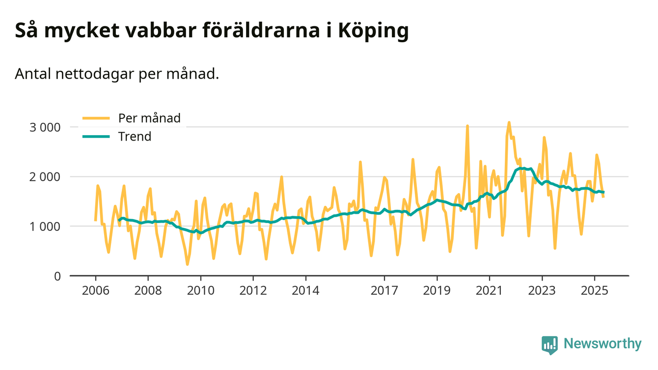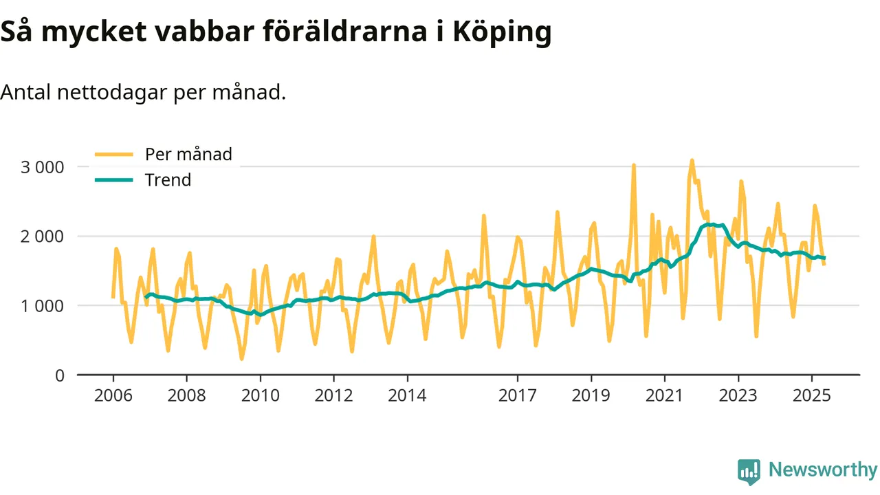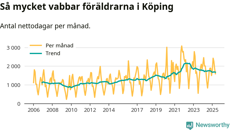 När coronapandemin drog in i mars 2020 peakade antalet vabbdagar i riket som helhet. Under de senaste två åren har vabbuttaget börjat minska igen.