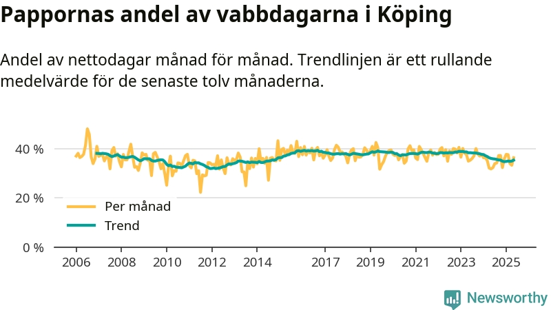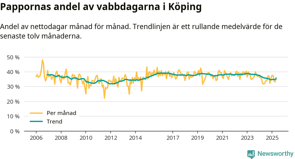 Kraftigt ökat vabbande över tid – men mindre än under pandemin
