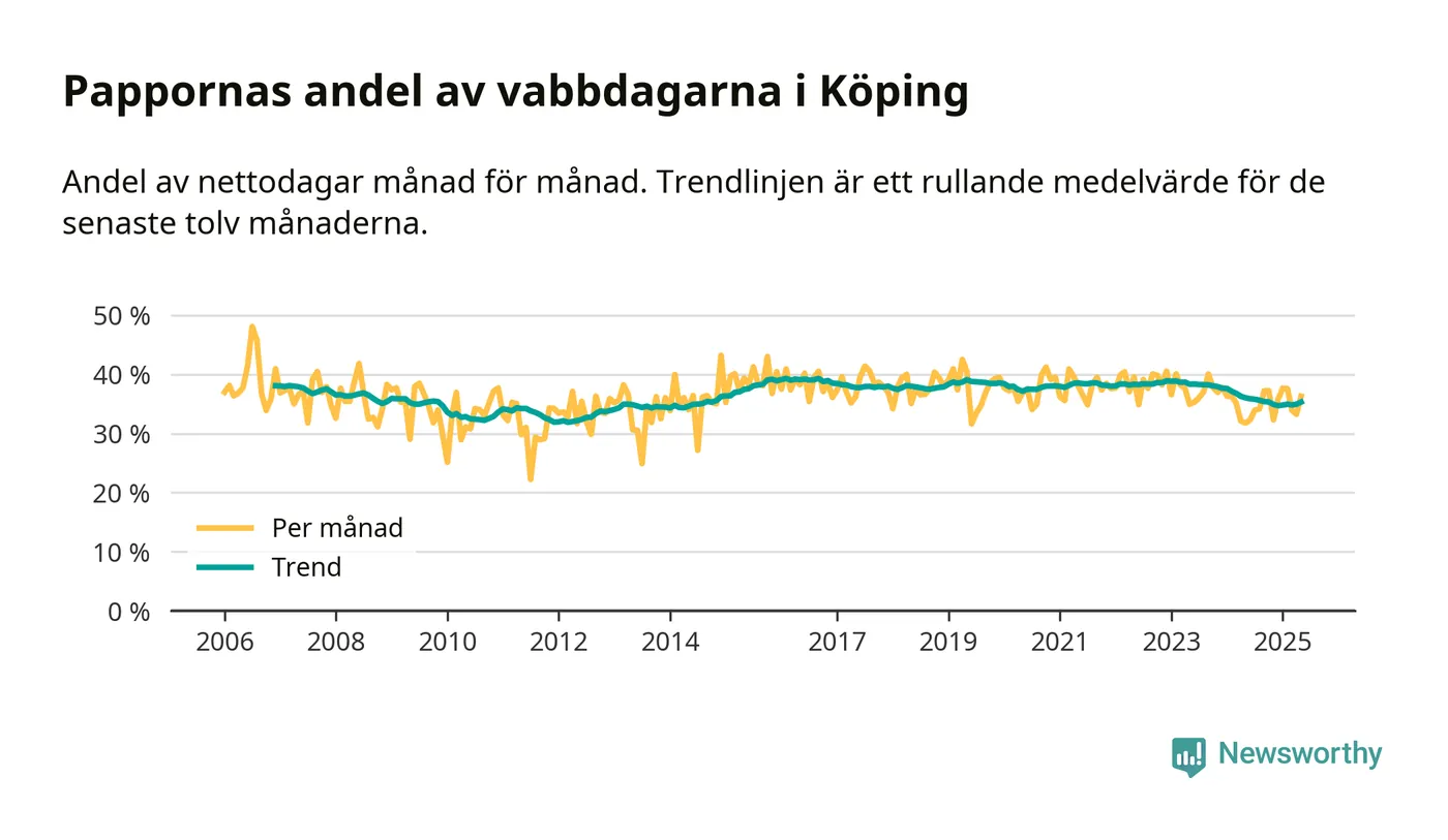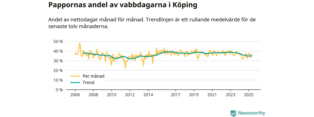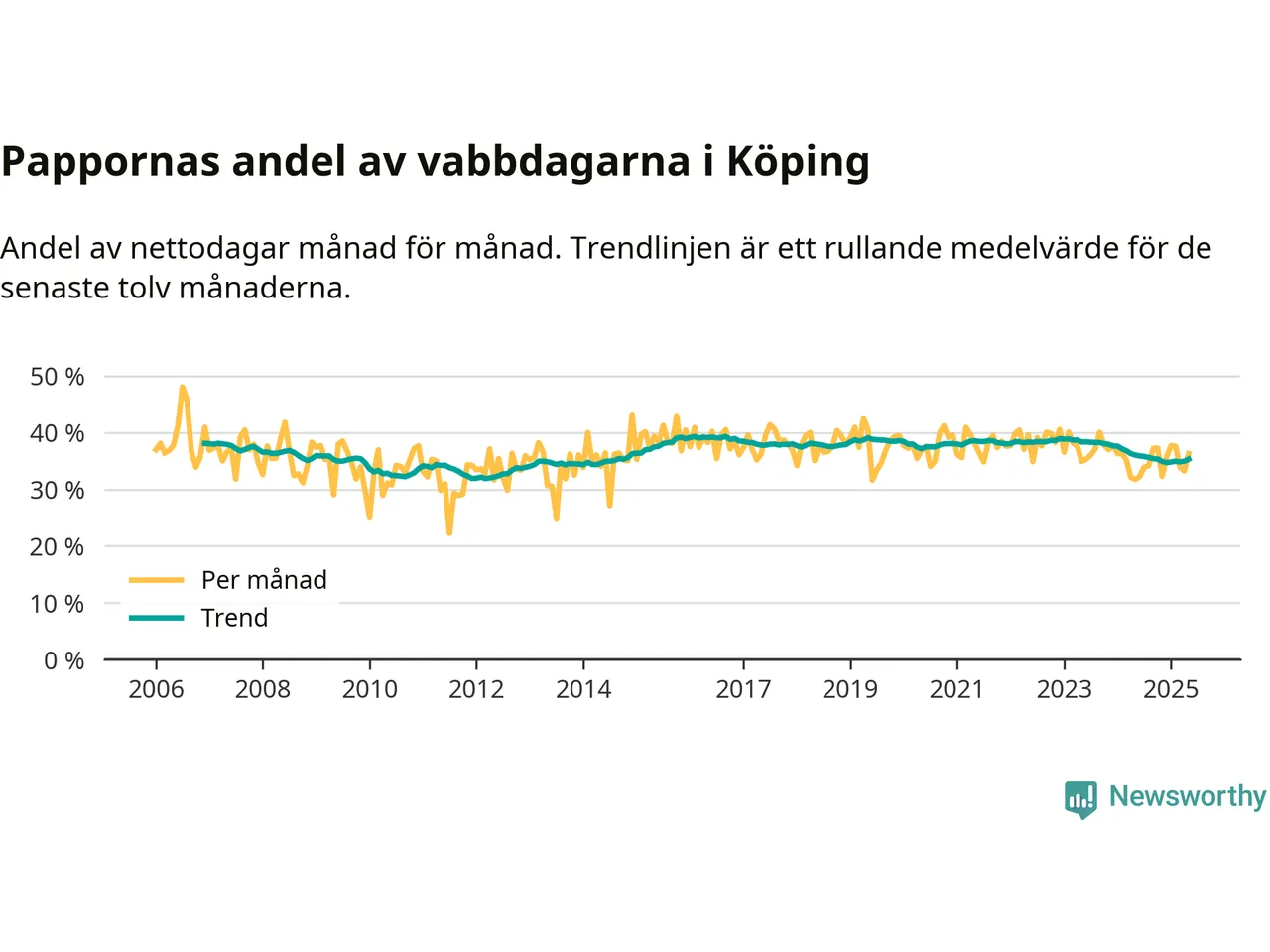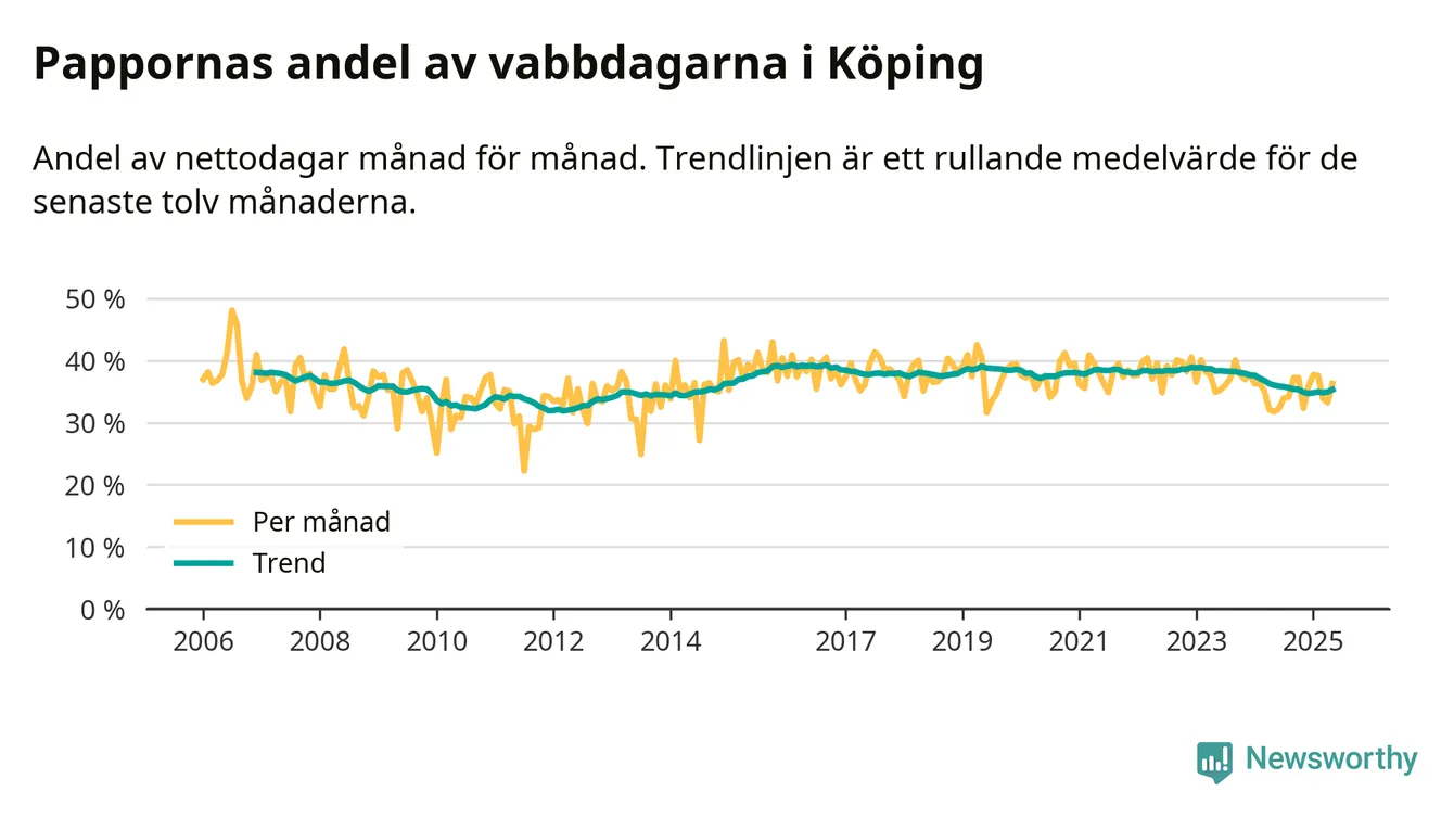 En pikant detalj är den enskilda månad då svenska män tagit ut störst andel av vabbdagarna var i juli 2006 – en månad då fotbolls-VM avgjordes i Tyskland. Även i Köping sticker juli 2006 ut som rekordmånad.