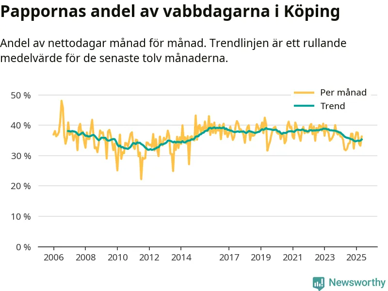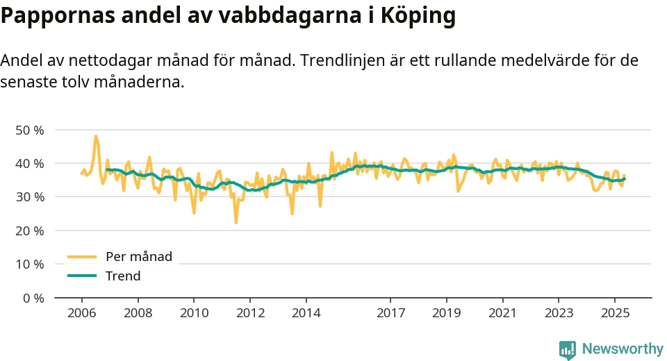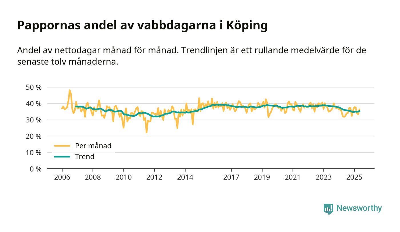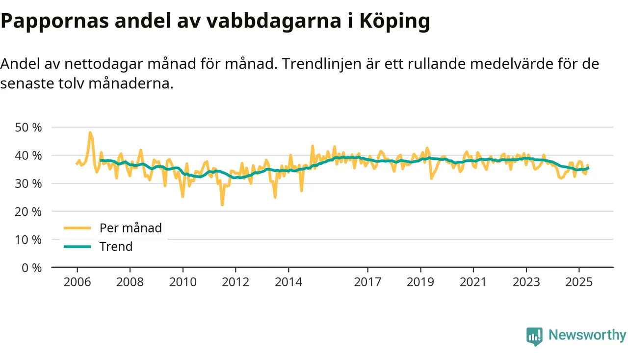 En pikant detalj är den enskilda månad då svenska män tagit ut störst andel av vabbdagarna var i juli 2006 – en månad då fotbolls-VM avgjordes i Tyskland. Även i Köping sticker juli 2006 ut som rekordmånad.