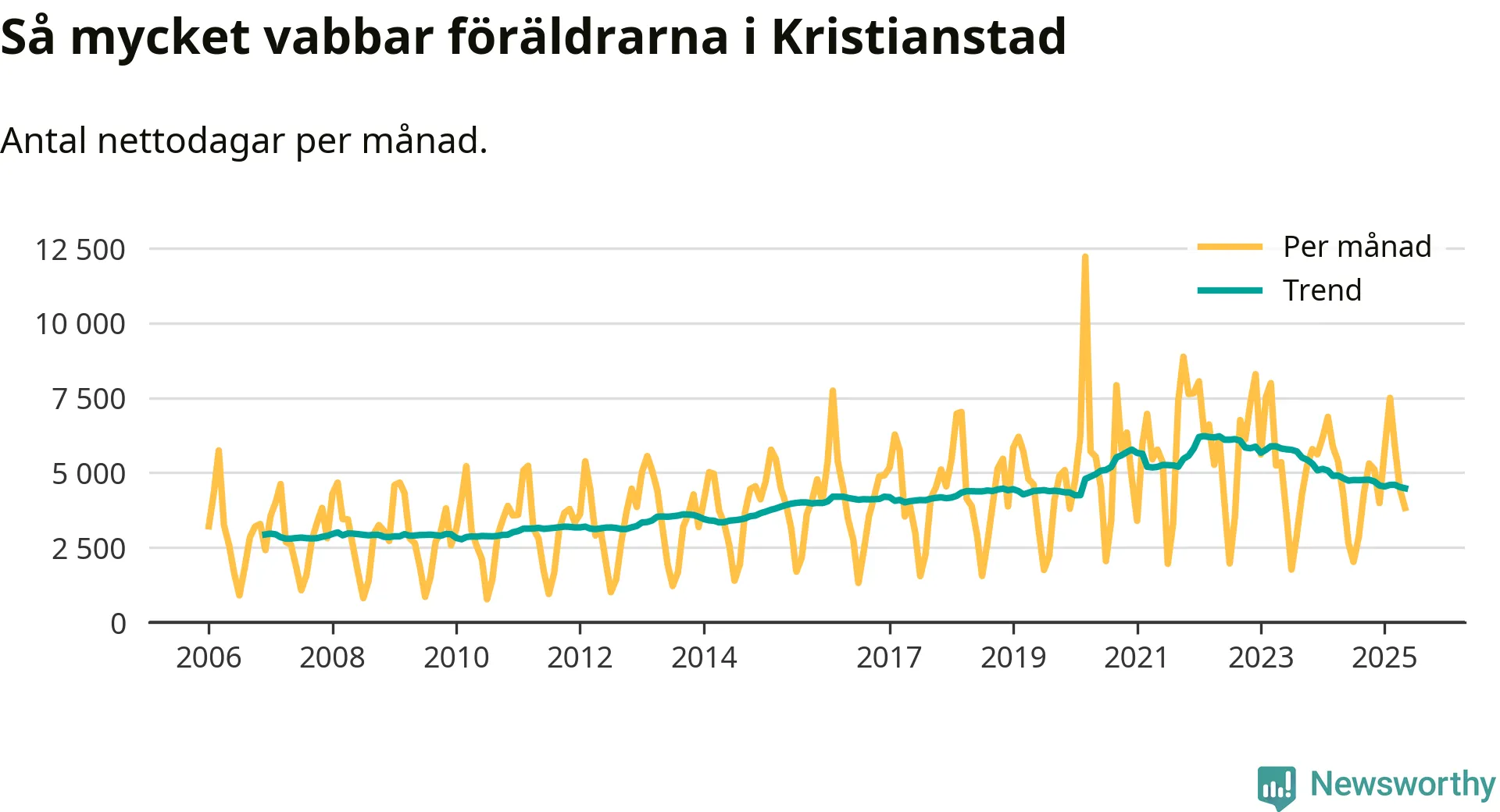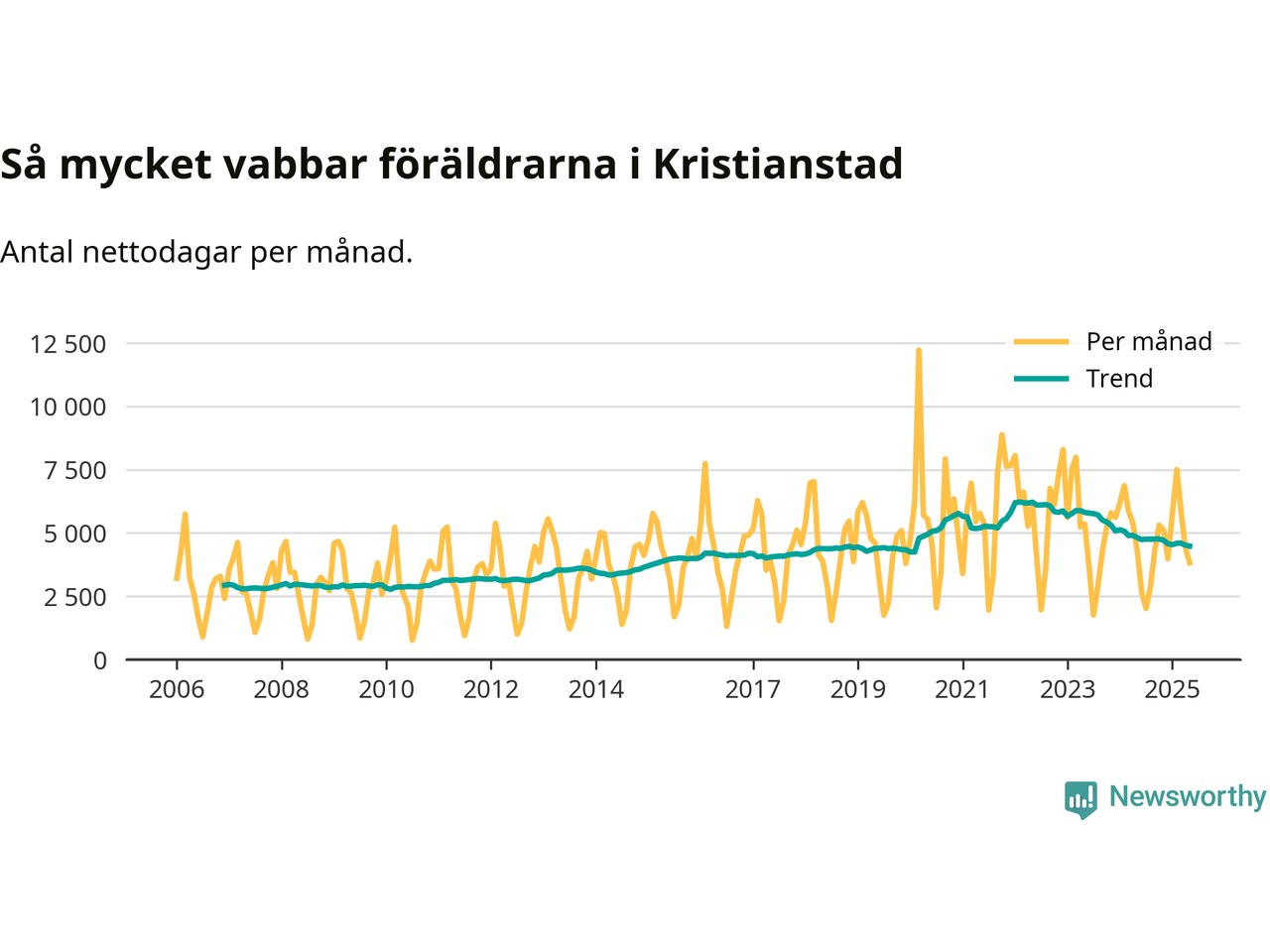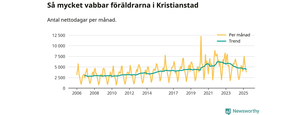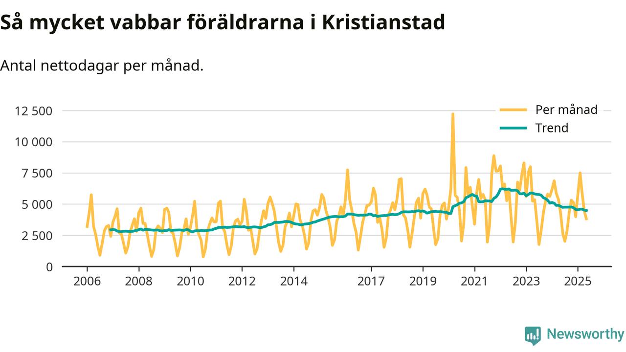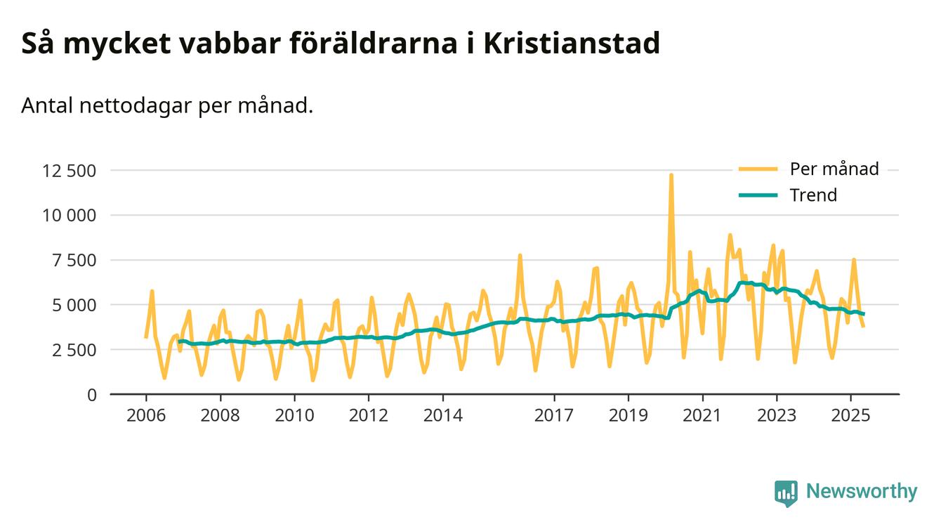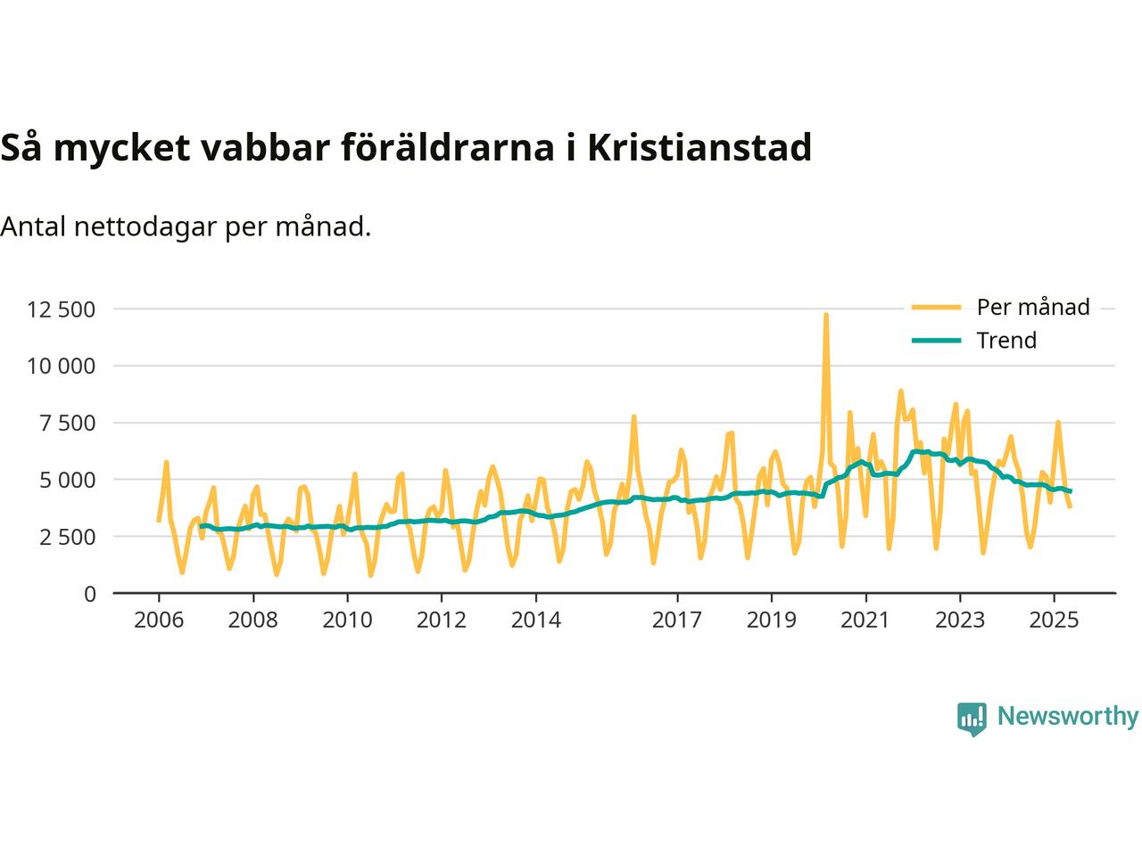När coronapandemin drog in i mars 2020 peakade antalet vabbdagar både i Kristianstads kommun och i riket som helhet. Under de senaste två åren har vabbuttaget börjat minska igen.