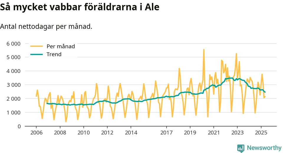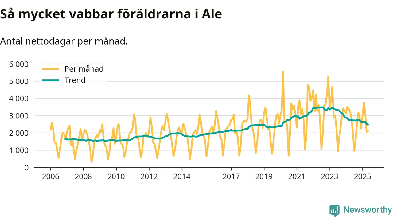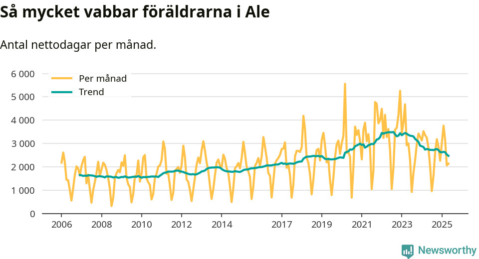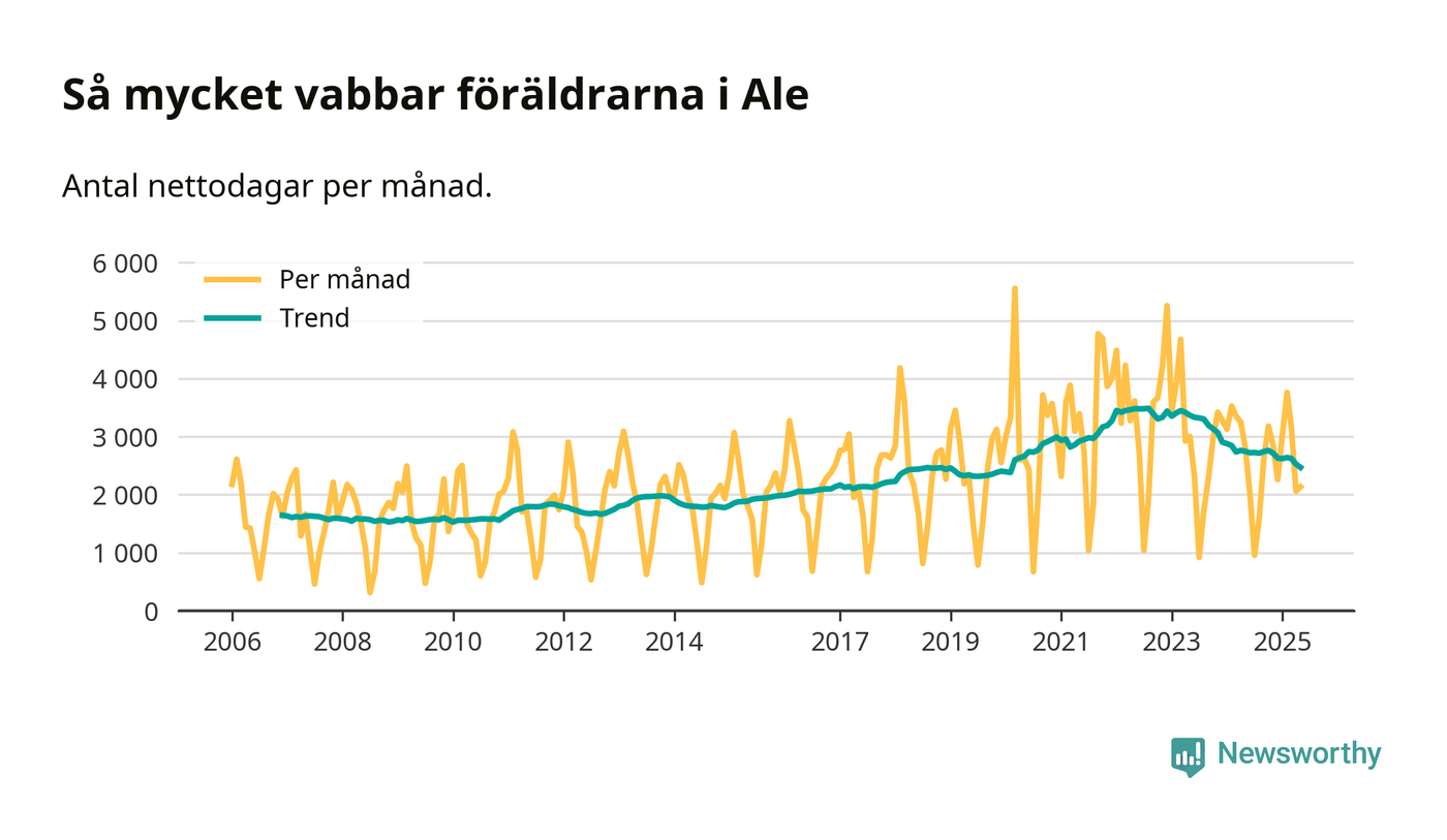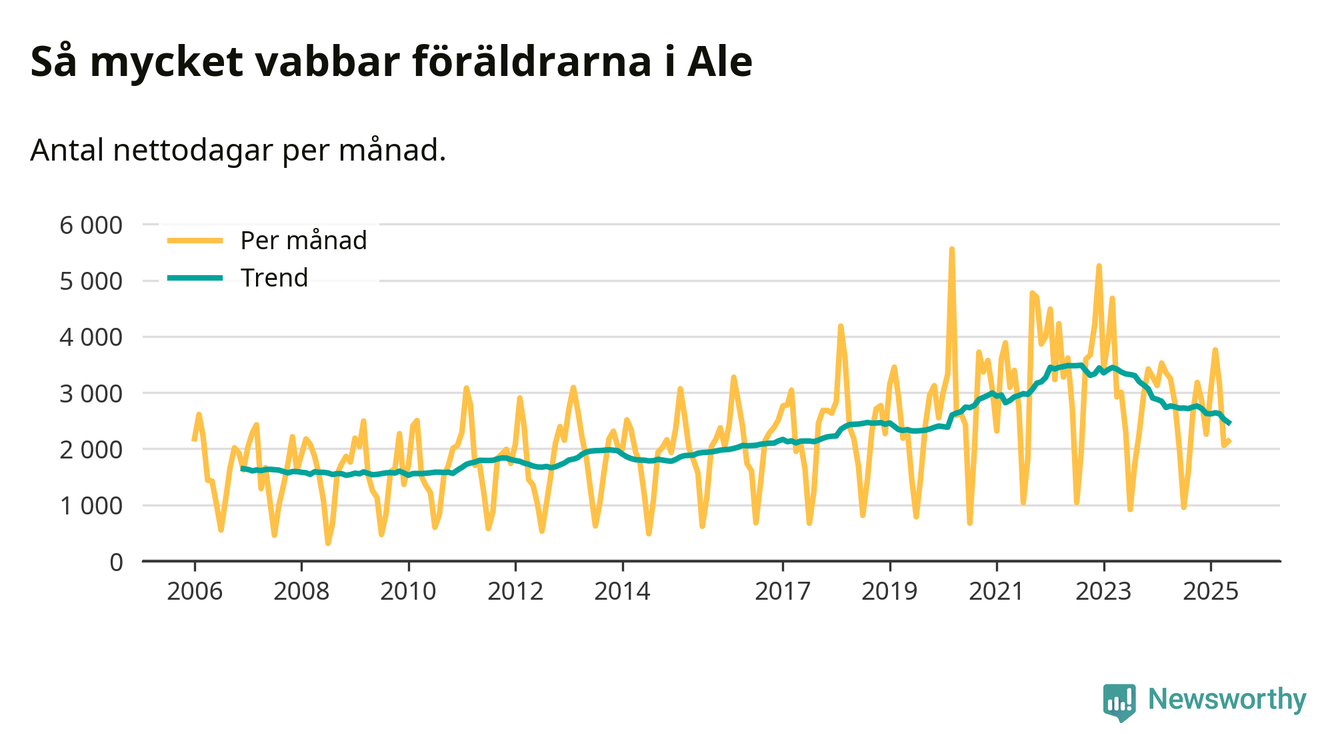 När coronapandemin drog in i mars 2020 peakade antalet vabbdagar både i Ale kommun och i riket som helhet. Under de senaste två åren har vabbuttaget börjat minska igen.