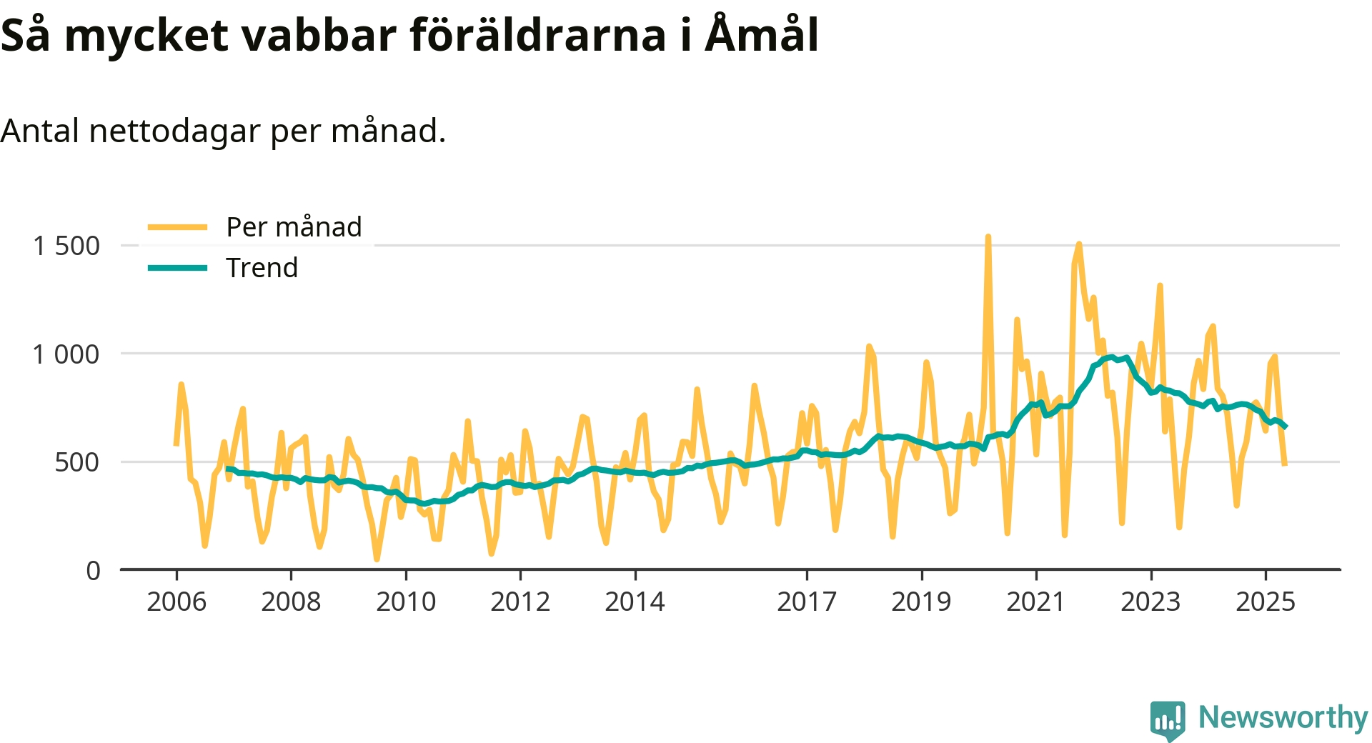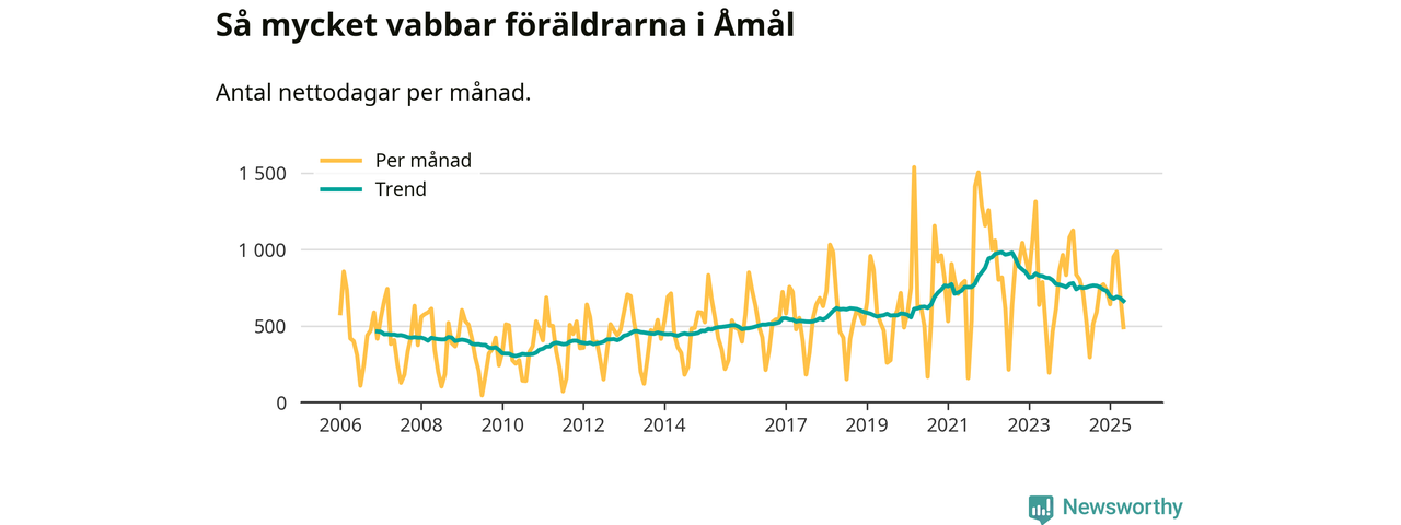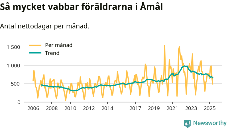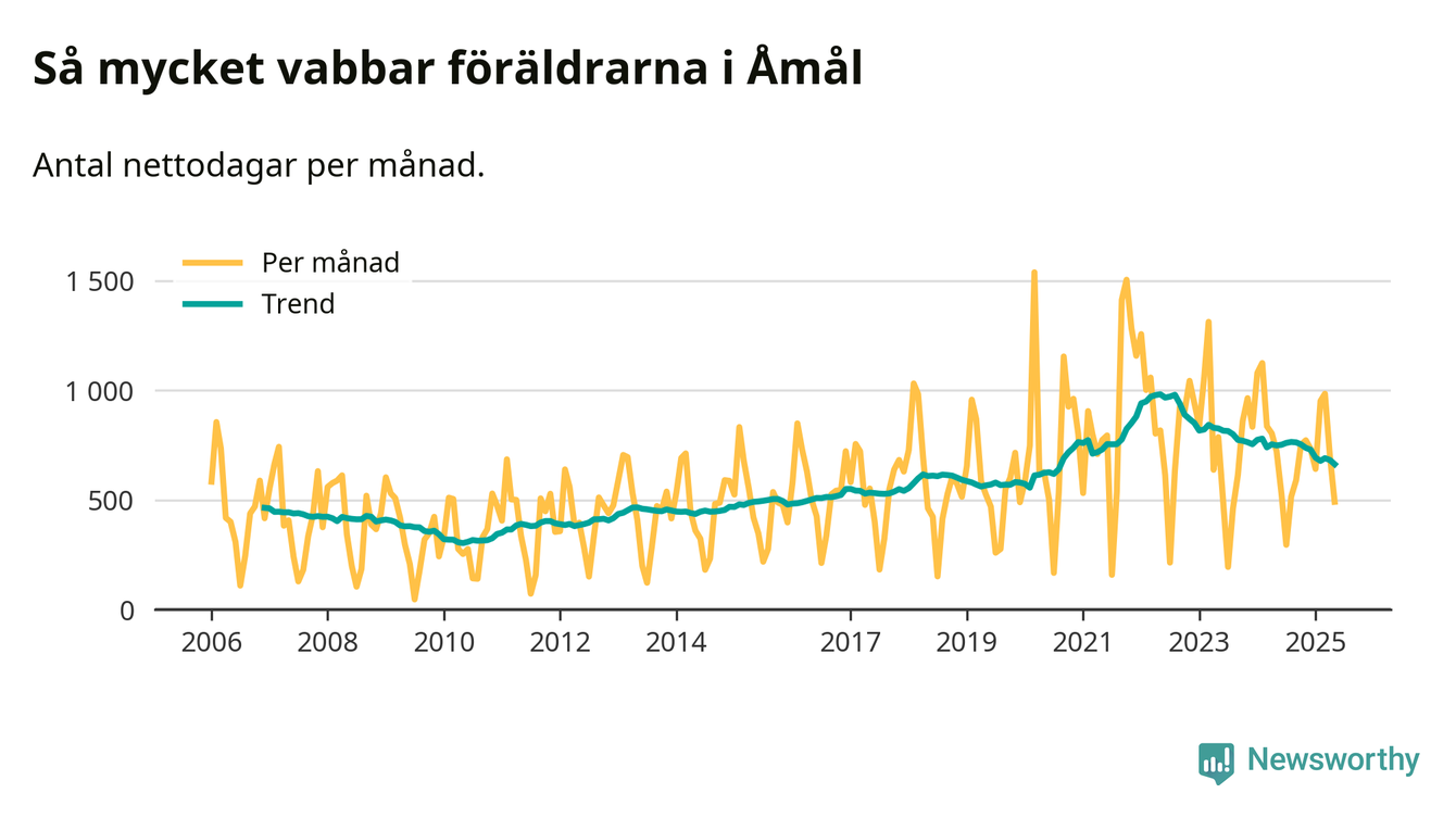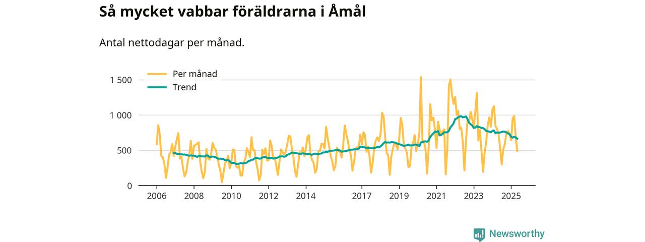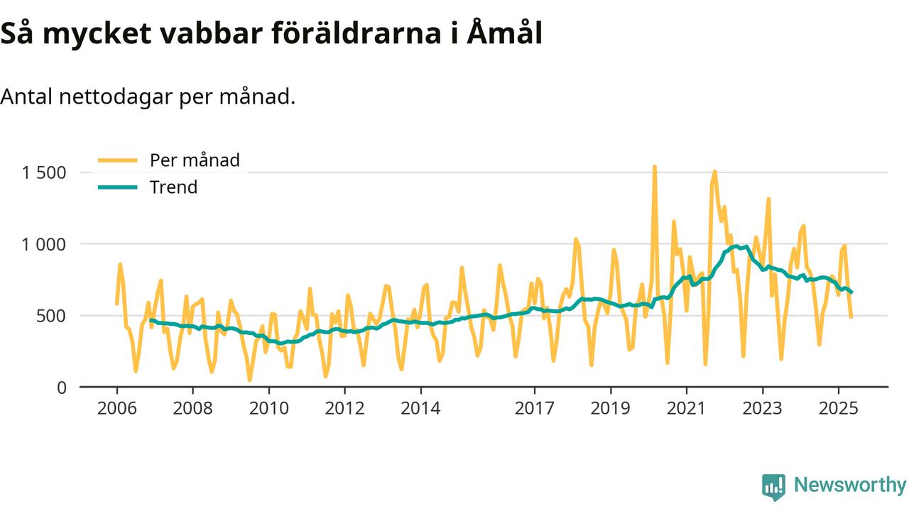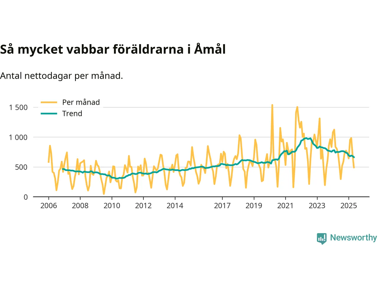 När coronapandemin drog in i mars 2020 peakade antalet vabbdagar både i Åmåls kommun och i riket som helhet. Under de senaste två åren har vabbuttaget börjat minska igen.