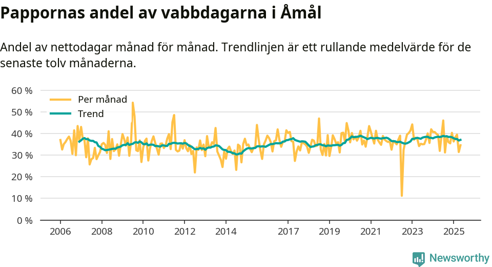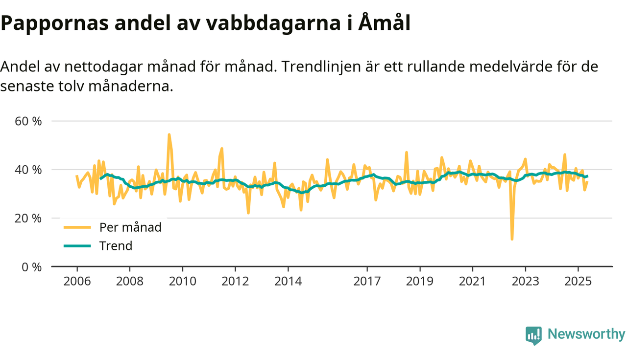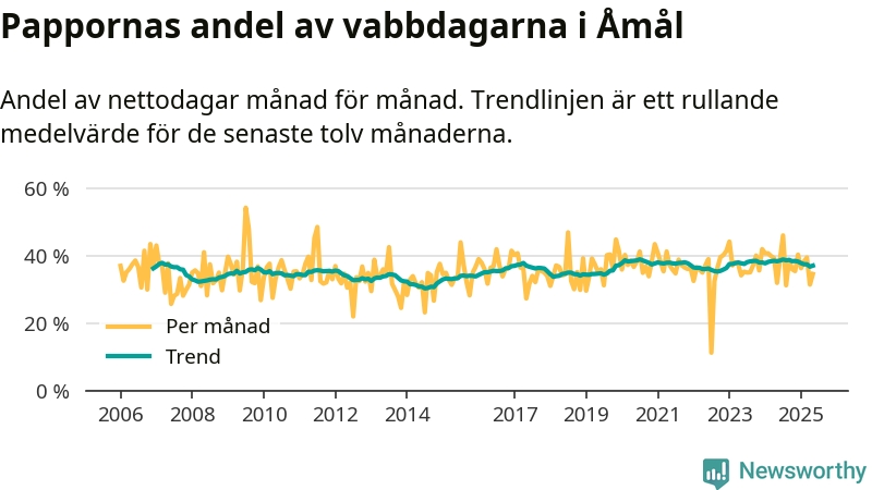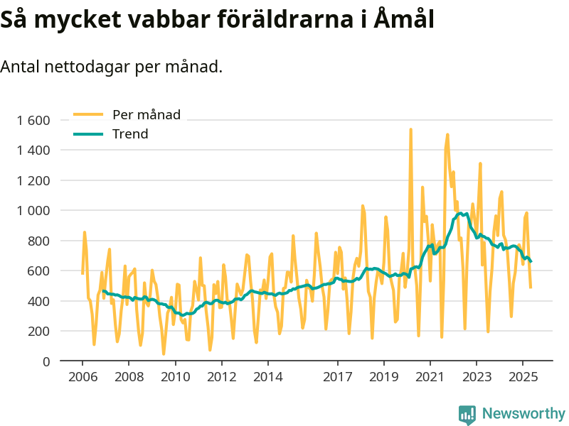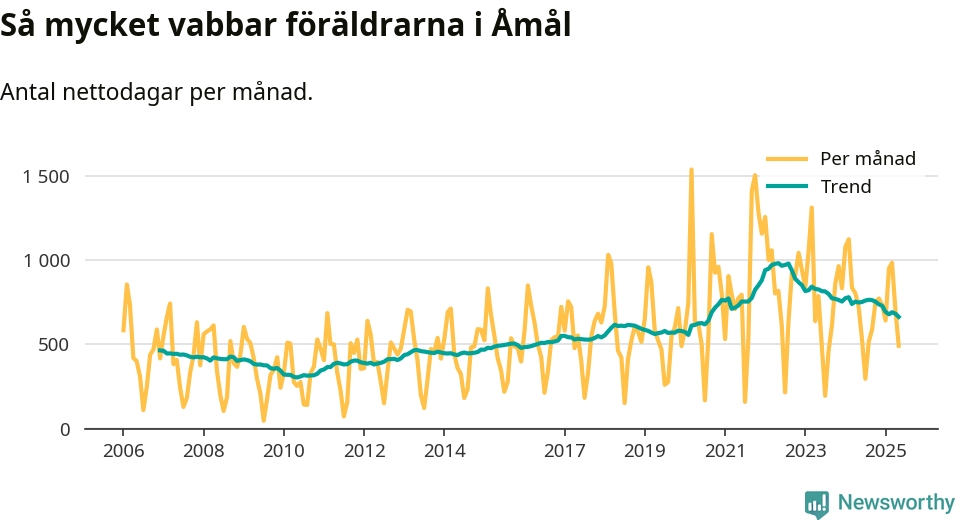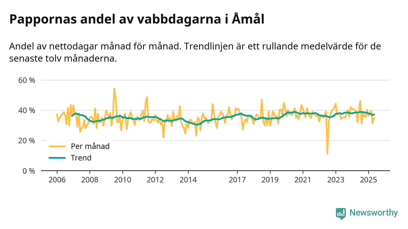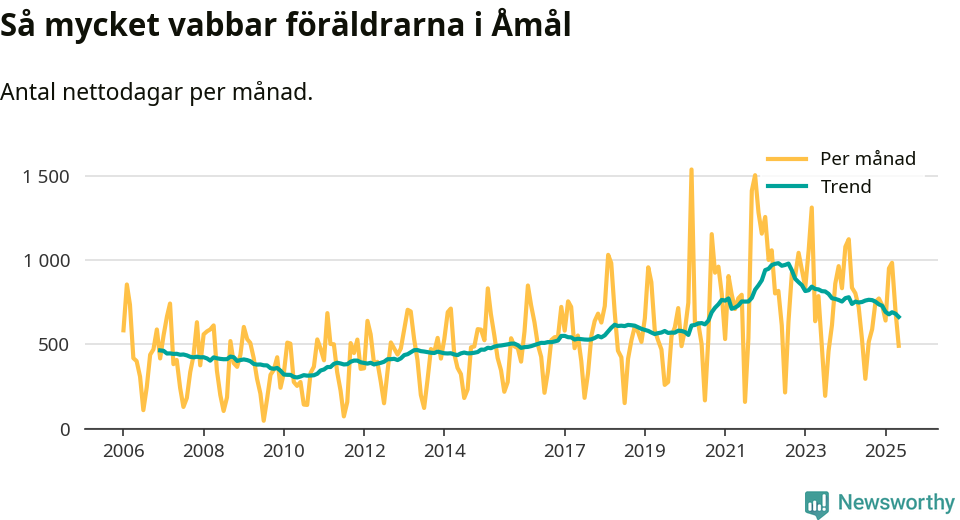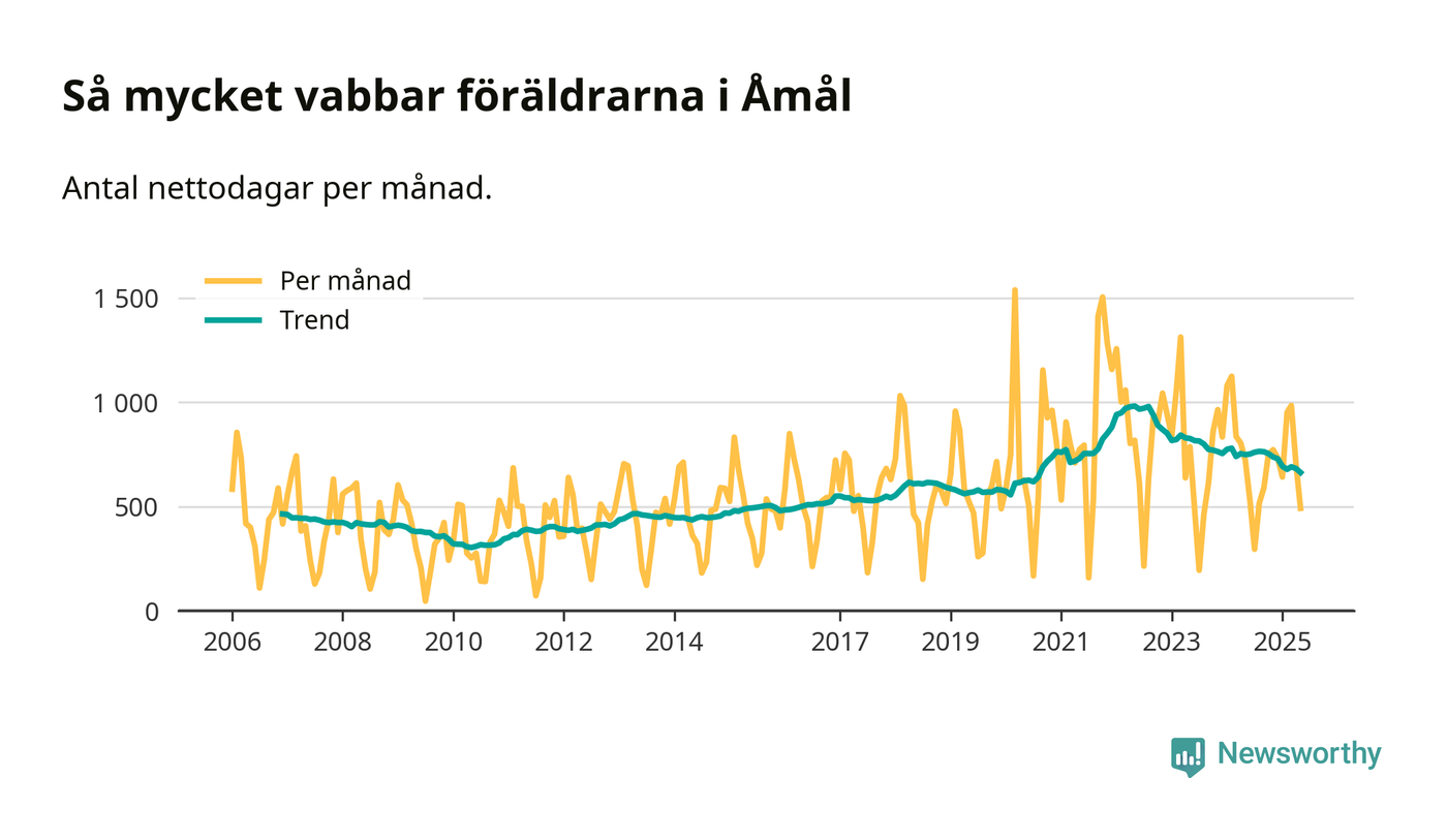 När coronapandemin drog in i mars 2020 peakade antalet vabbdagar både i Åmåls kommun och i riket som helhet. Under de senaste två åren har vabbuttaget börjat minska igen.