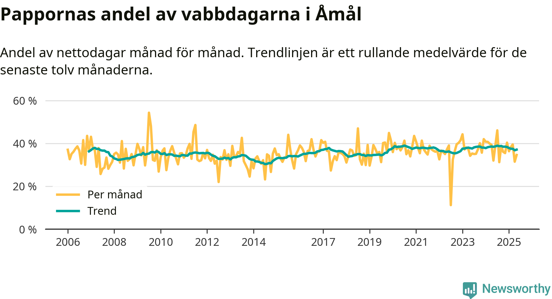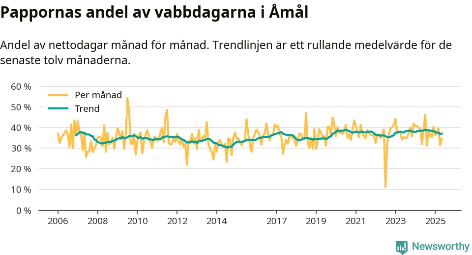 Kraftigt ökat vabbande över tid – men mindre än under pandemin
