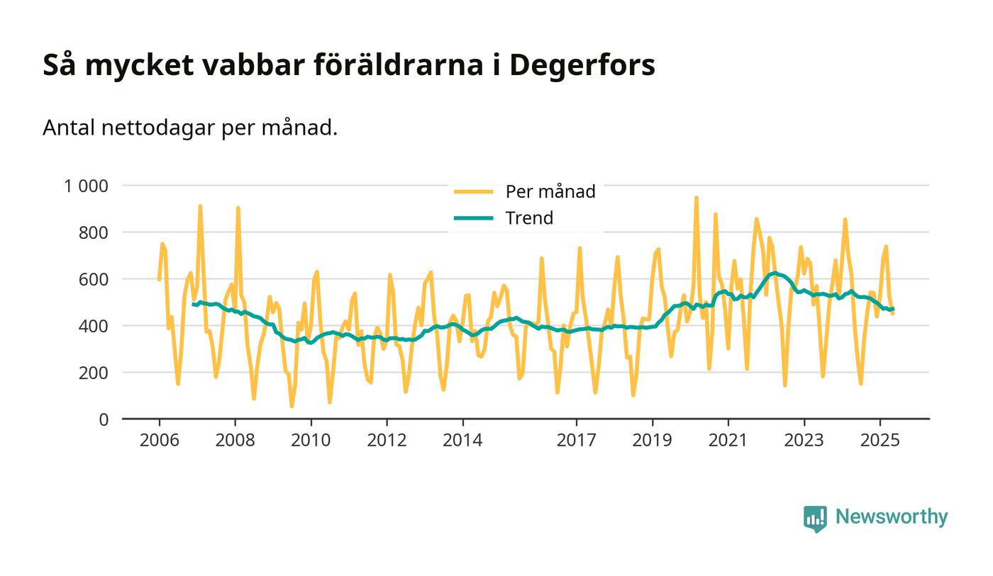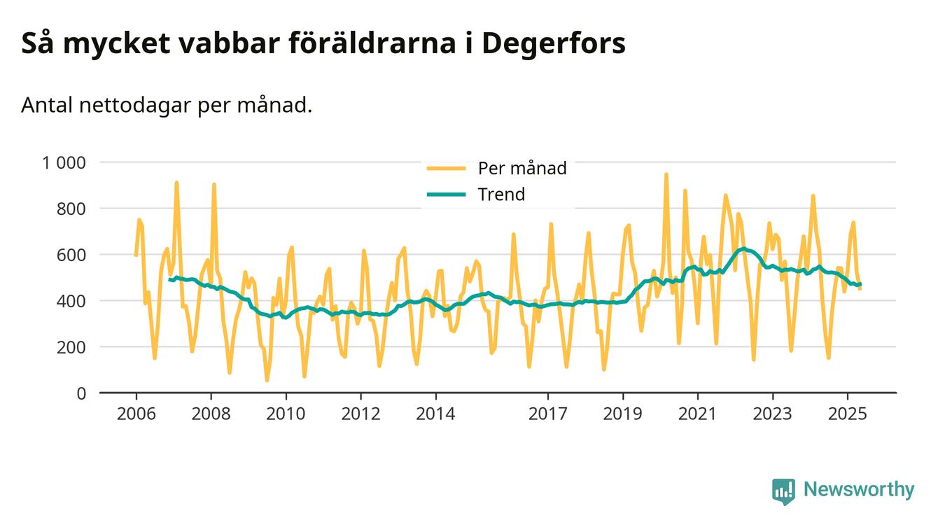 Trenden fortsätter – pappor jobbar, mammor stannar hemma när barnen är sjuka. I Degerfors kommun har föräldrarnas uttag det senaste året varit mer ojämställt än på flera år.