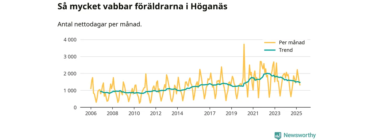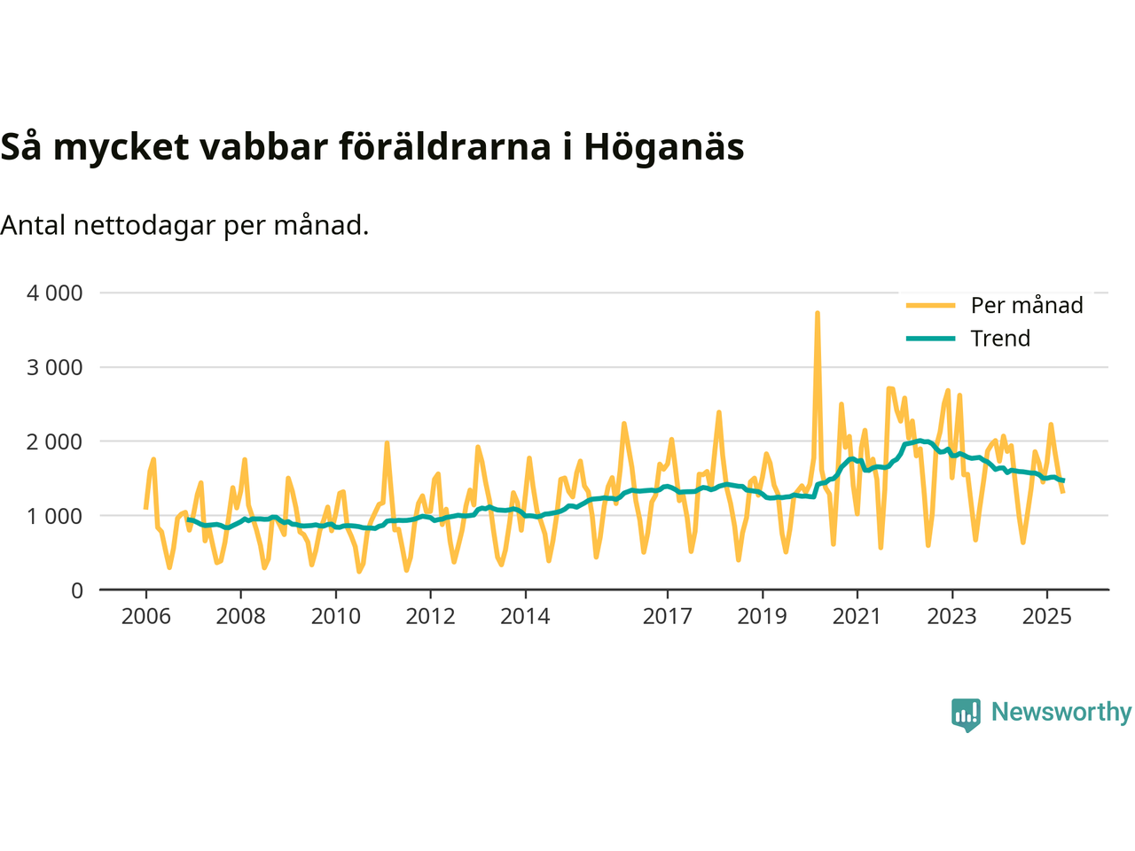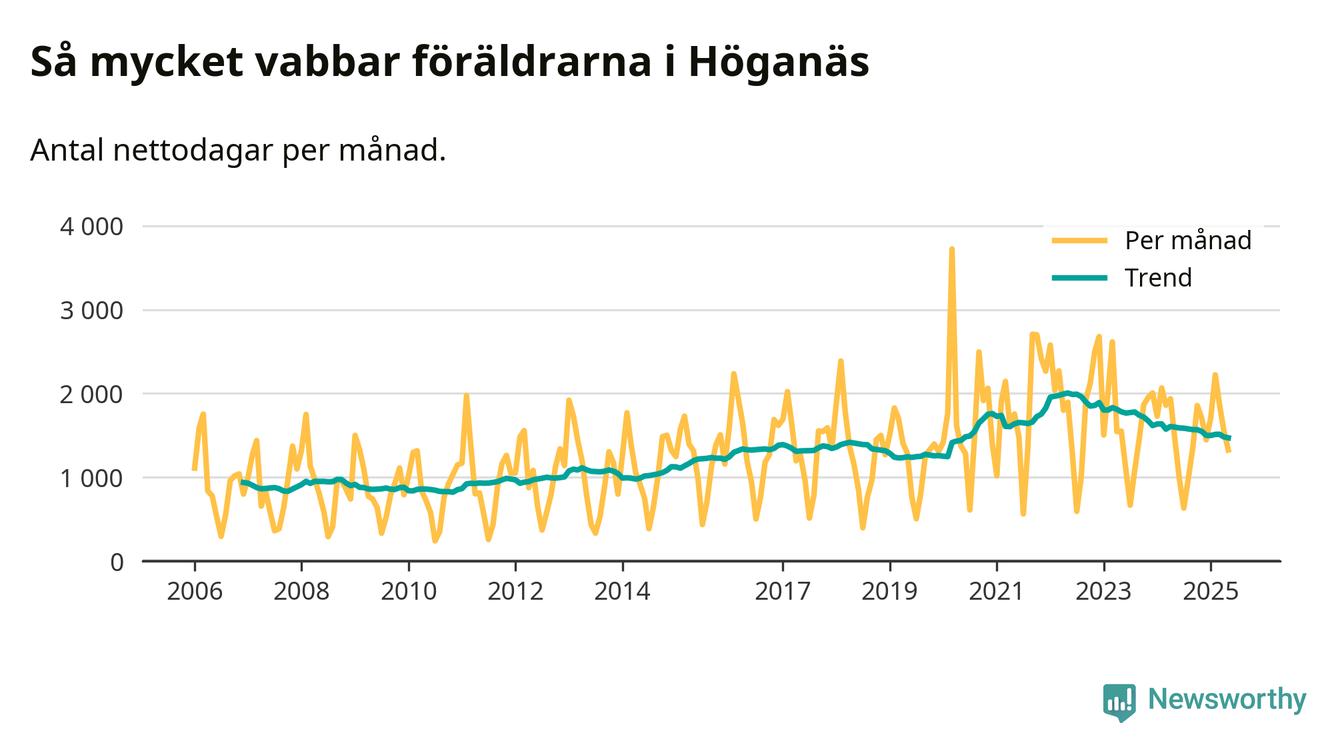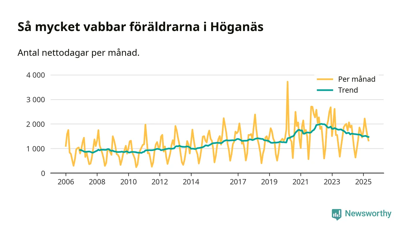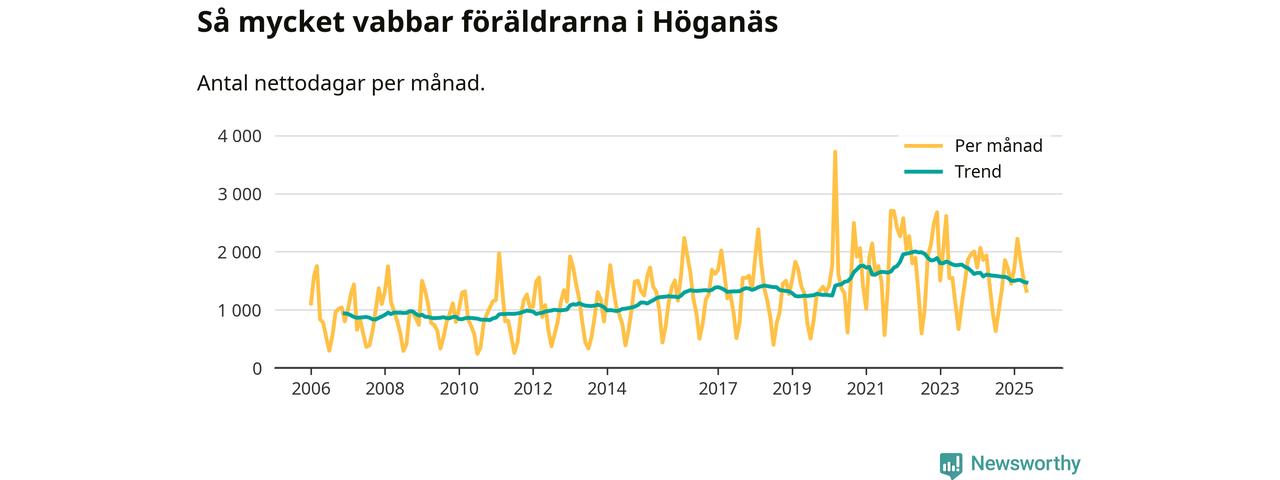 När coronapandemin drog in i mars 2020 peakade antalet vabbdagar både i Höganäs kommun och i riket som helhet. Under de senaste två åren har vabbuttaget börjat minska igen.