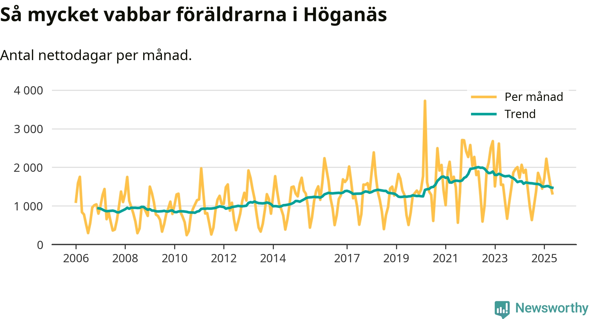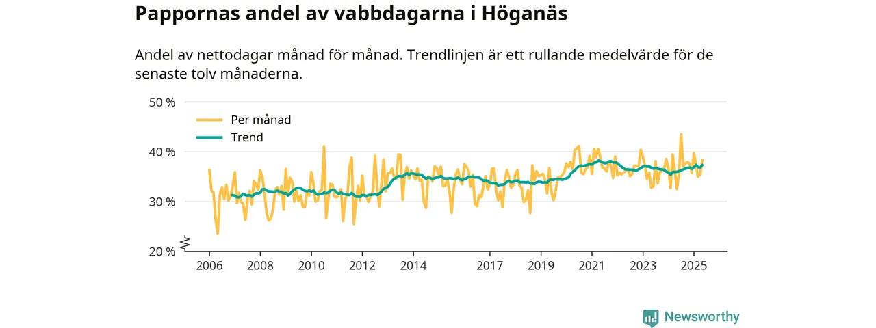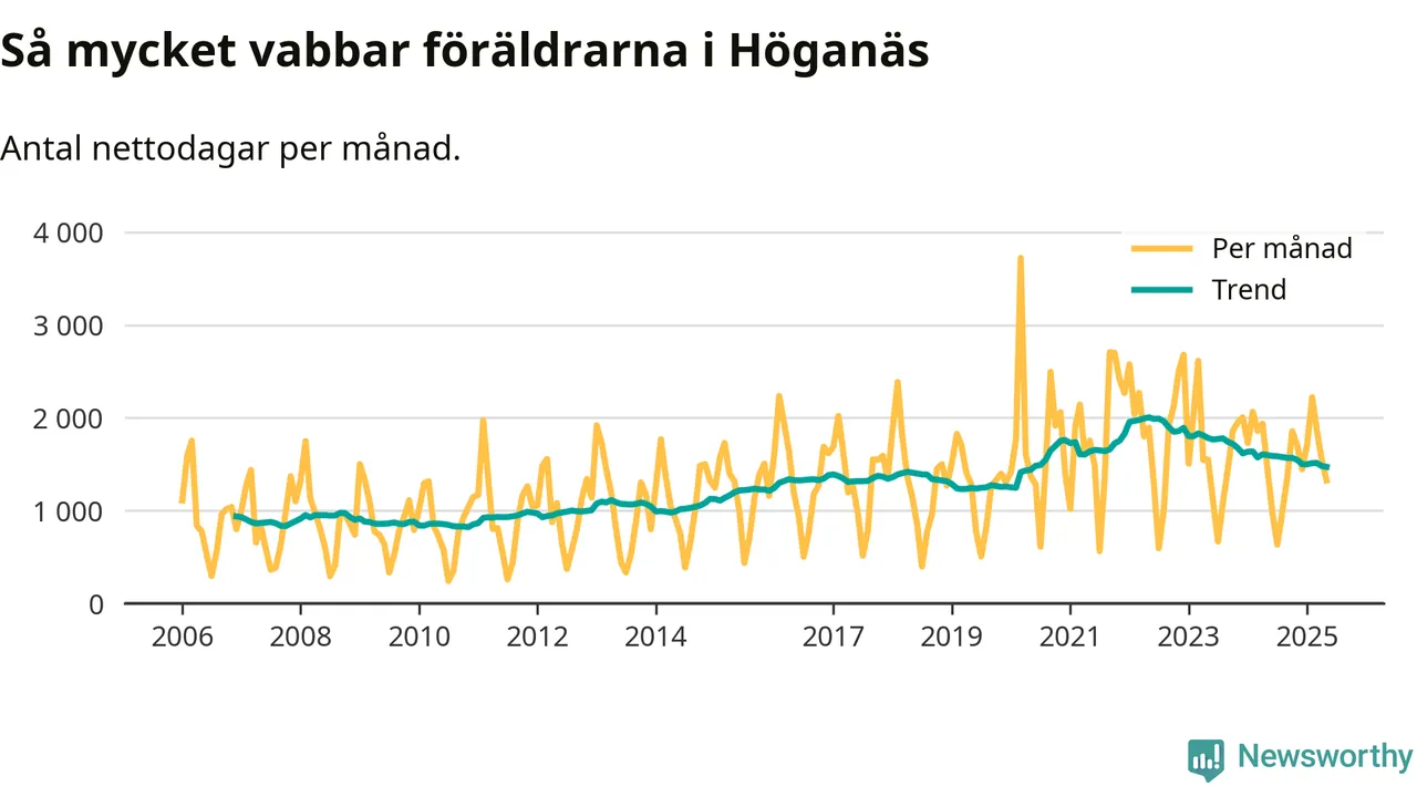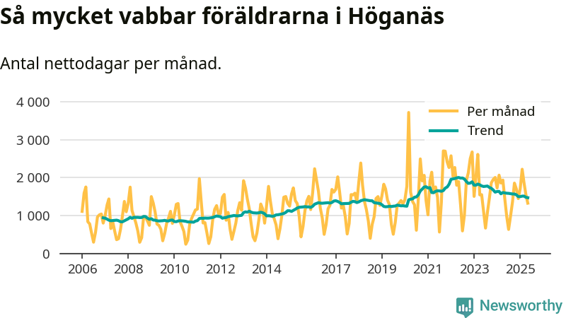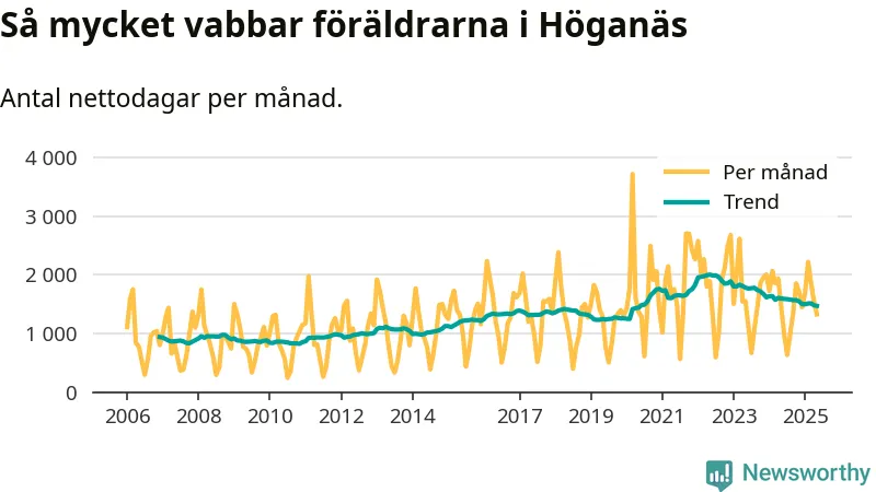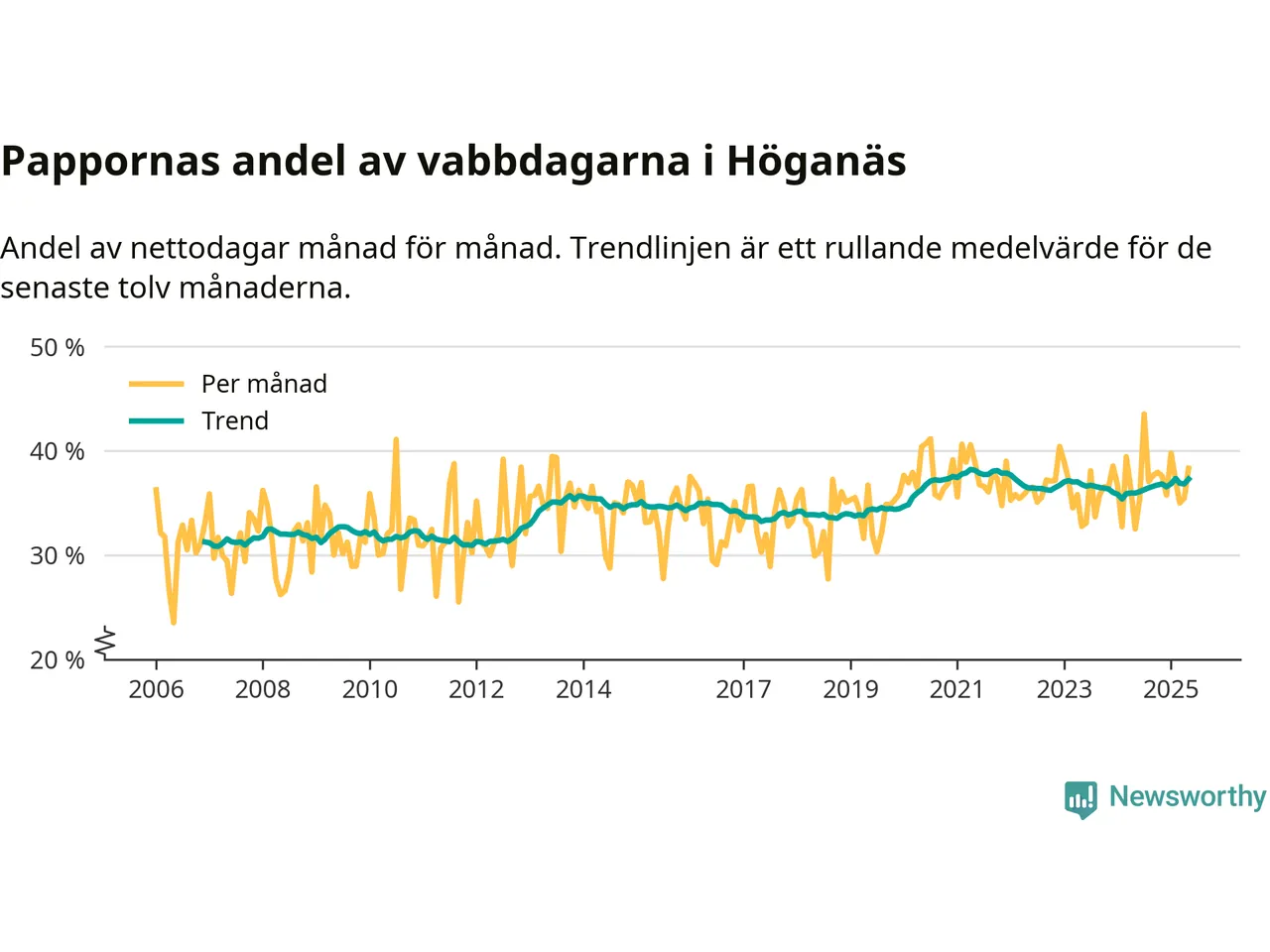 När coronapandemin drog in i mars 2020 peakade antalet vabbdagar både i Höganäs kommun och i riket som helhet. Under de senaste två åren har vabbuttaget börjat minska igen.